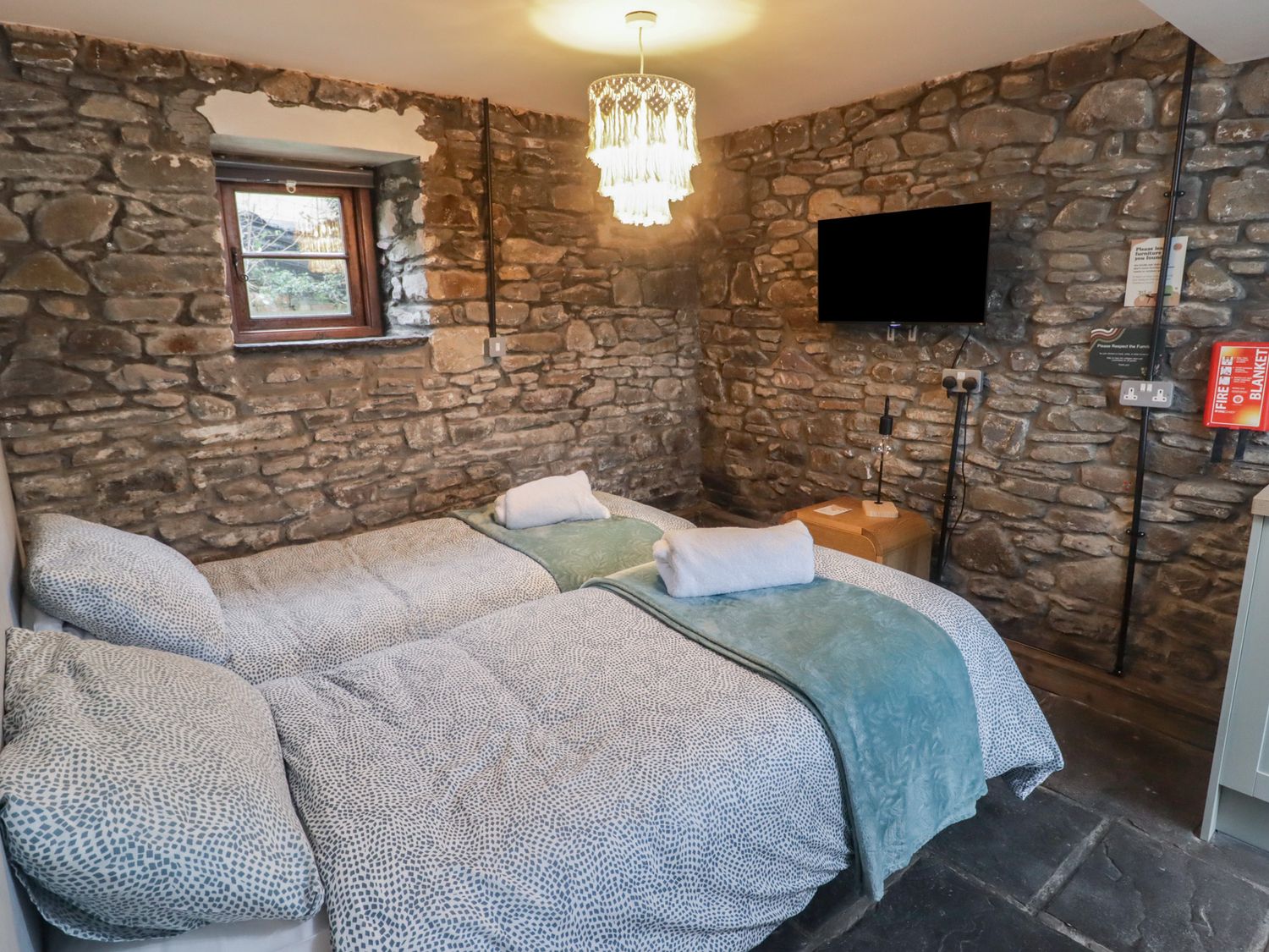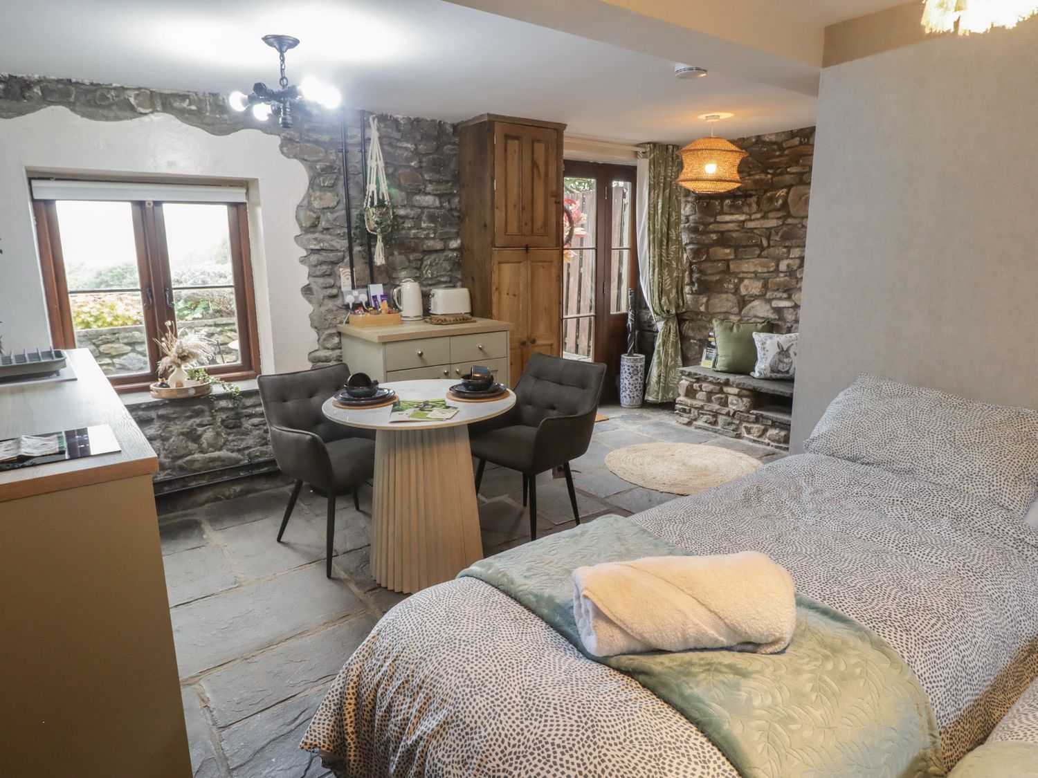 "Gwyn Studio consists of a kitchen with an induction hob, microwave, fridge/freezer box, air fryer, toaster and kettle, a dining area with seating for two, and a sitting area with Sky TV including movies and sport. The bedroom offers twin beds, serviced by a shower room with walk-in shower, basin and WC. Outside, there is a communal area with garden furniture, a small gym, and off-road parking for one car. Well-behaved pets welcome, but sorry, no smoking. You'll find a shop in 0.5 miles and a pub in 0.7 miles. WiFi, fuel, power, bed linen and towels are all included in the price. Gwyn Studio is a welcoming base for exploring Rhondda Cynon Taf. Note: There is a Good Housekeeping Bond of 75 GBP. Note: Check-in up until 9pm. Note: Livery available. Note: Dogs must be kept on a lead and under control at all times as there are farm dogs on-site."