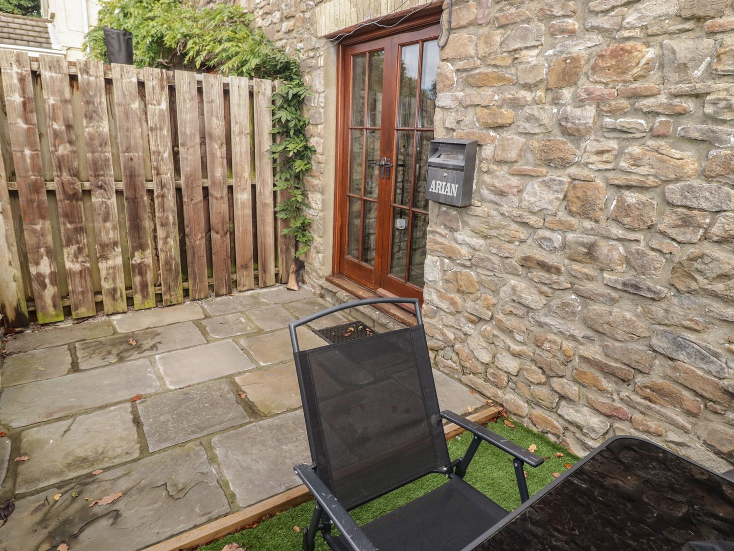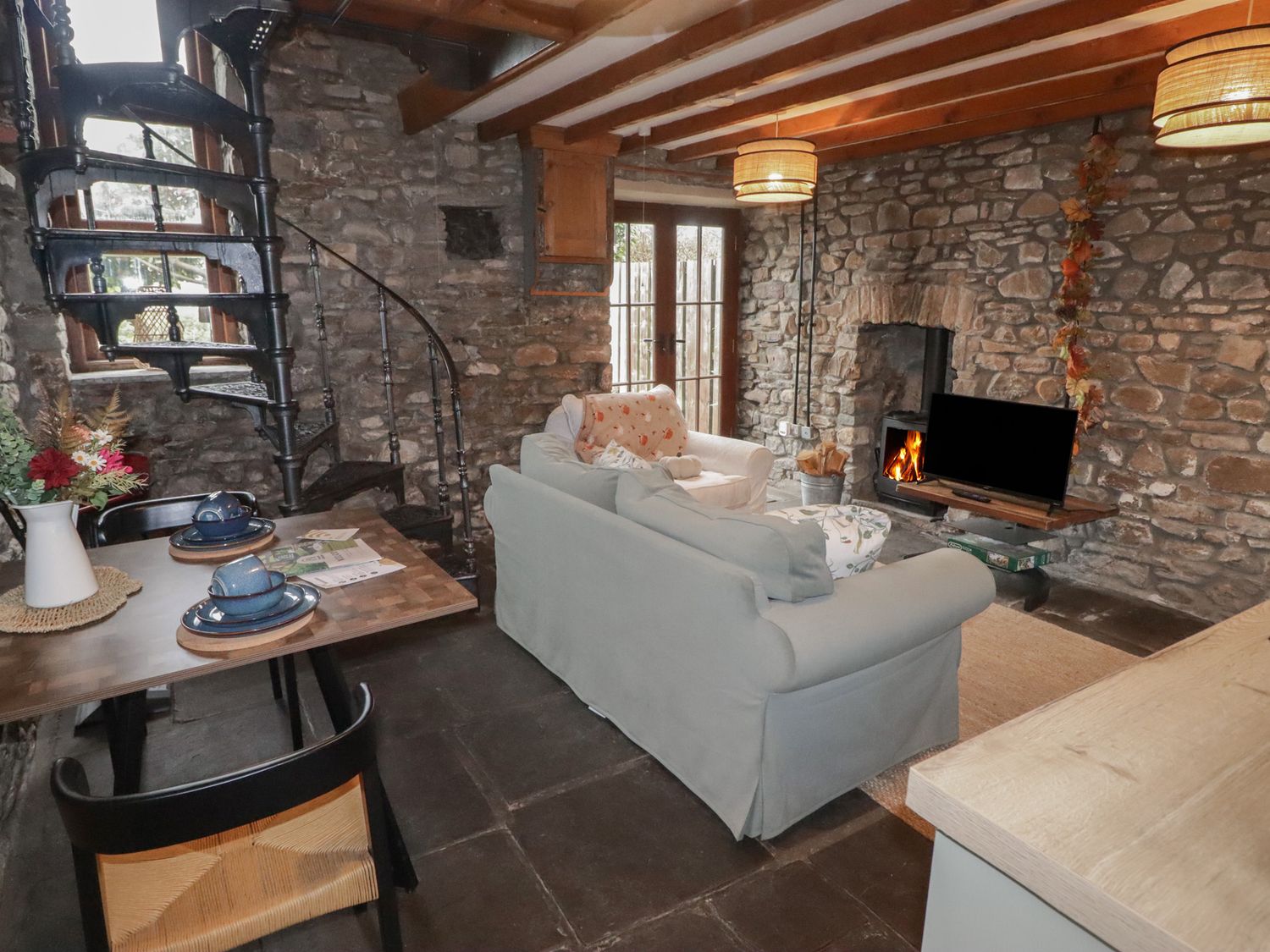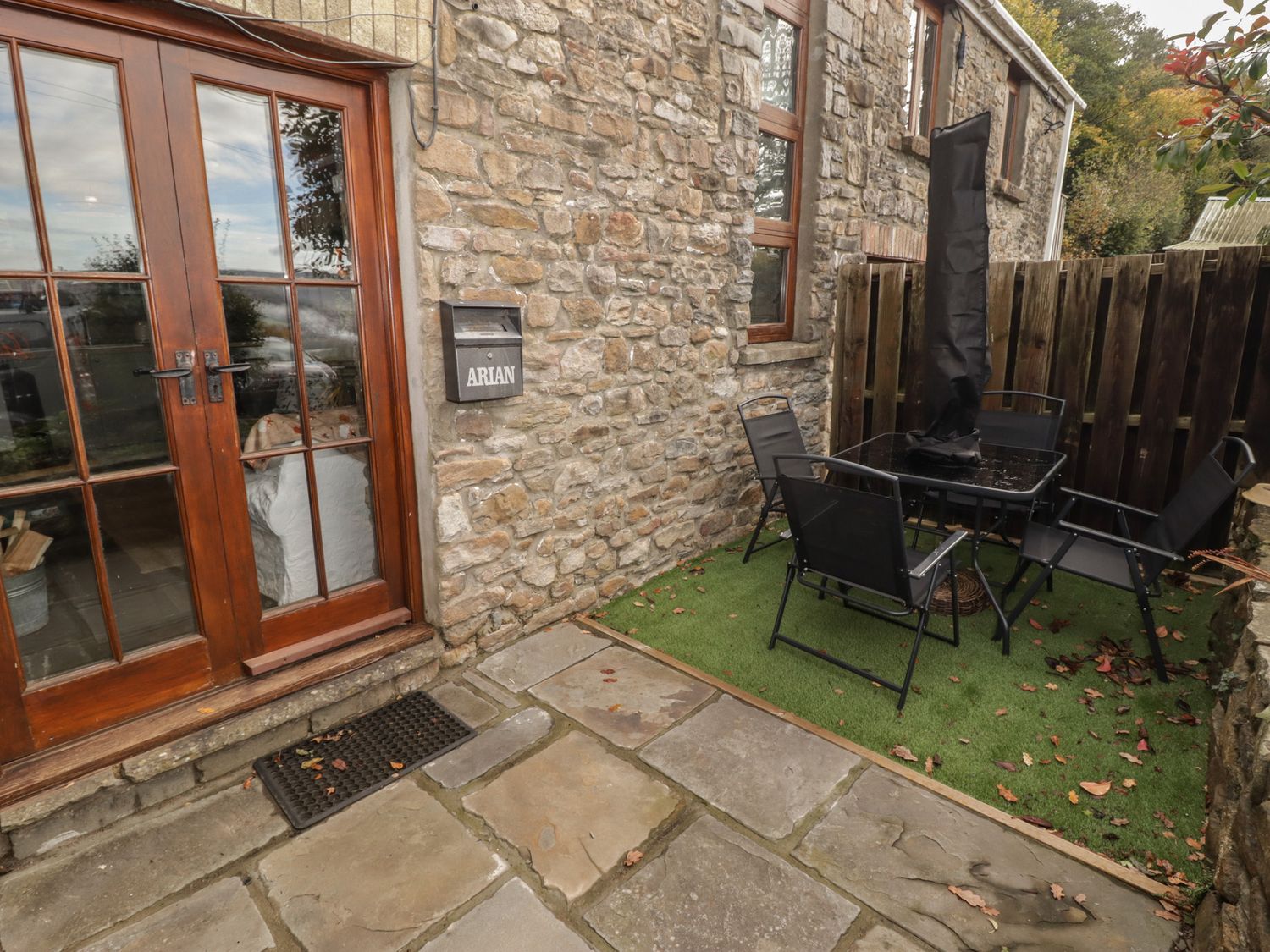 "Arian consists of a kitchen with an electric oven, induction hob, microwave, fridge/freezer box, dishwasher, toaster and kettle, a dining area, and a sitting area with a woodburning stove and Sky TV. The bedroom includes a double bed, serviced by a shower room with walk-in shower, basin and WC. Outside, there is an enclosed communal area with garden furniture, and off-road parking for 1 car. Guests have access to a small gym and shared laundry room on request. One well-behaved pet welcome, but sorry, no smoking. You'll find a shop in 0.5 miles, a pub in 0.7 miles, and a river in 0.1 miles. WiFi, fuel, power, bed linen and towels are all included in the price. Arian makes a lovely base for exploring Rhondda Cynon Taf. Note: There are spiral steps up to the bedroom. Note: Good Housekeeping Bond of -ú75. Note: Check-in up until 9pm. Note: Livery available. Note: Dogs must be kept on a lead and under control at all times as there are farm dogs on-site."