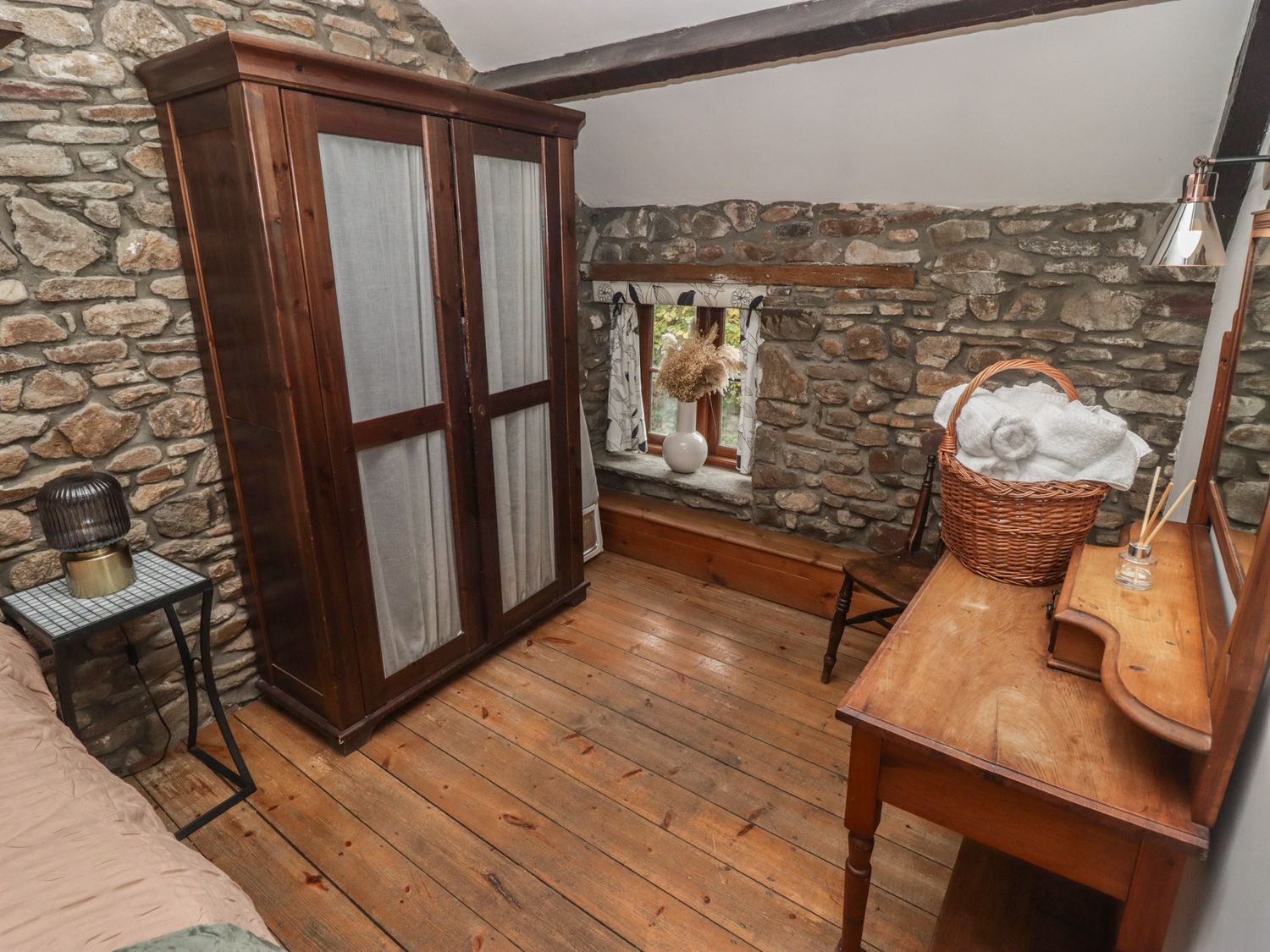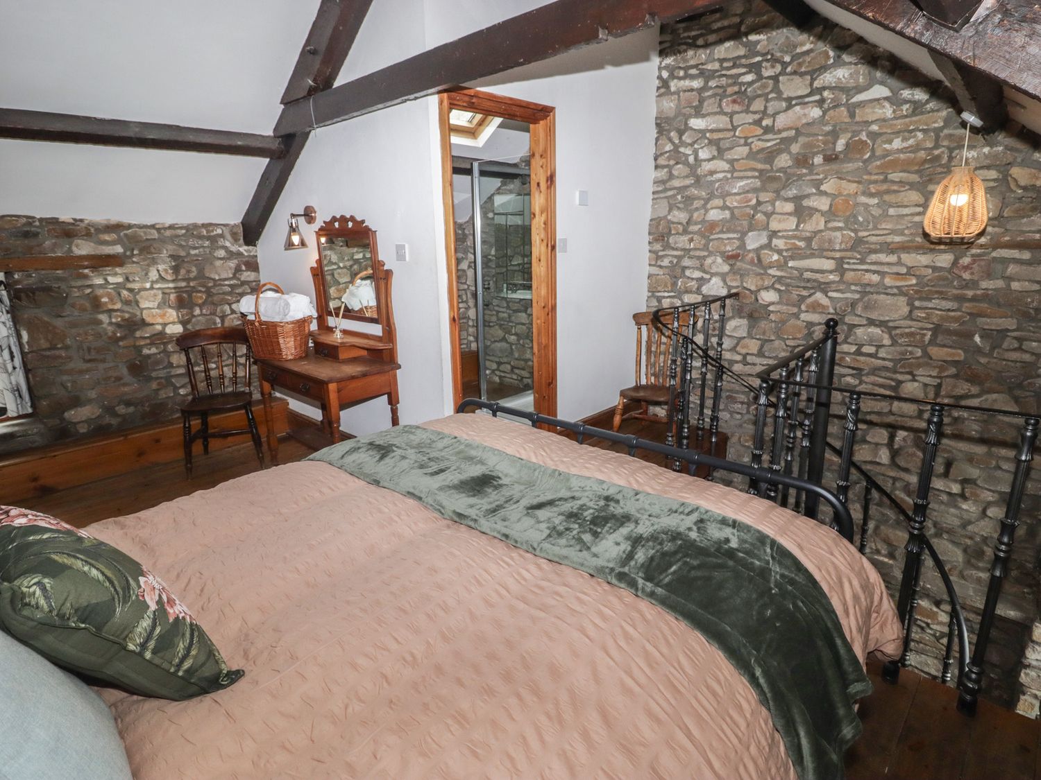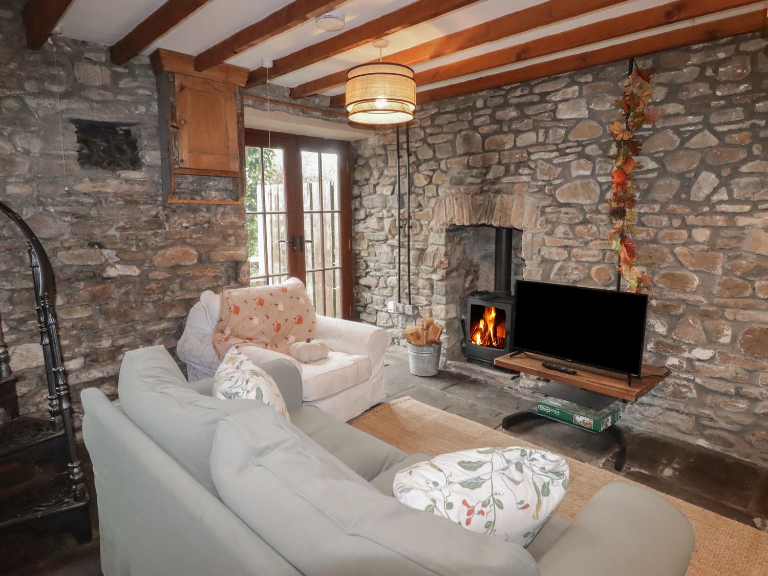 "Arian consists of a kitchen with an electric oven, induction hob, microwave, fridge/freezer box, dishwasher, toaster and kettle, a dining area, and a sitting area with a woodburning stove and Sky TV. The bedroom includes a double bed, serviced by a shower room with walk-in shower, basin and WC. Outside, there is an enclosed communal area with garden furniture, and off-road parking for 1 car. Guests have access to a small gym and shared laundry room on request. One well-behaved pet welcome, but sorry, no smoking. You'll find a shop in 0.5 miles, a pub in 0.7 miles, and a river in 0.1 miles. WiFi, fuel, power, bed linen and towels are all included in the price. Arian makes a lovely base for exploring Rhondda Cynon Taf. Note: There are spiral steps up to the bedroom. Note: Good Housekeeping Bond of -ú75. Note: Check-in up until 9pm. Note: Livery available. Note: Dogs must be kept on a lead and under control at all times as there are farm dogs on-site."