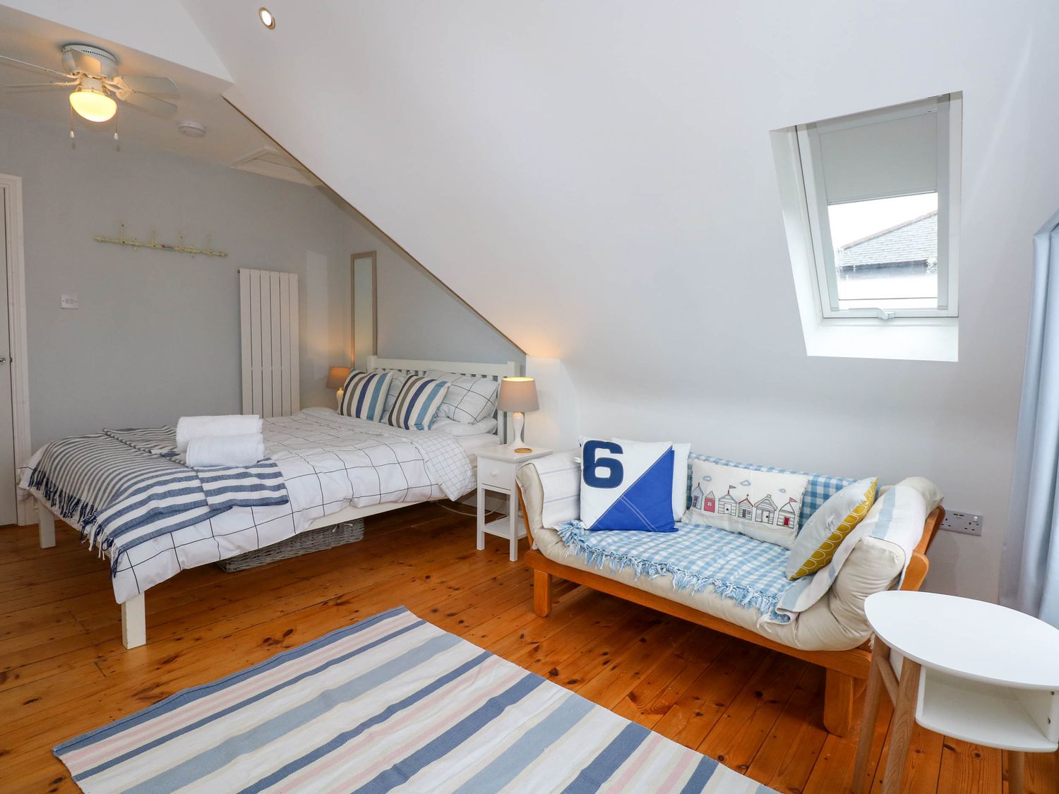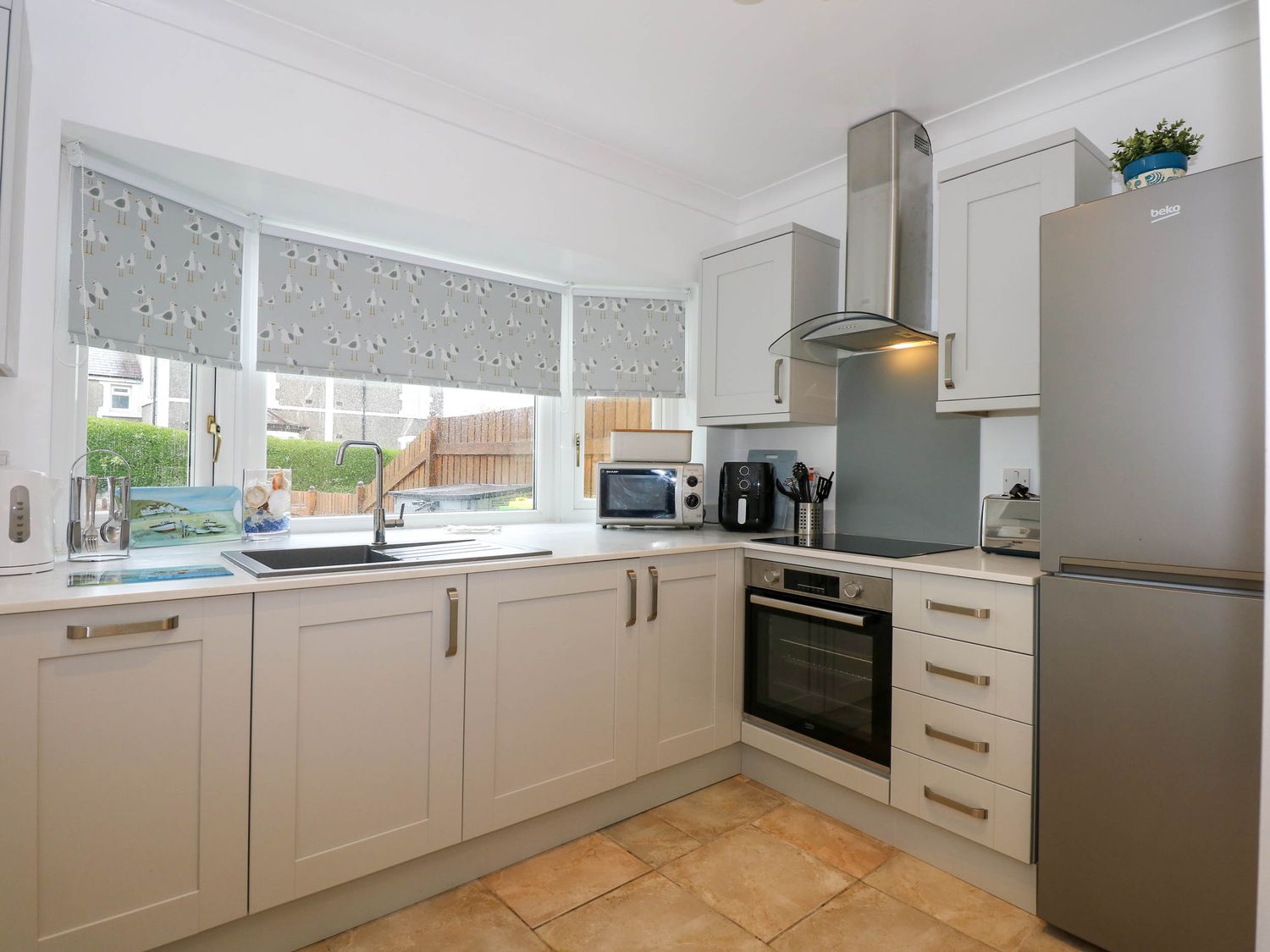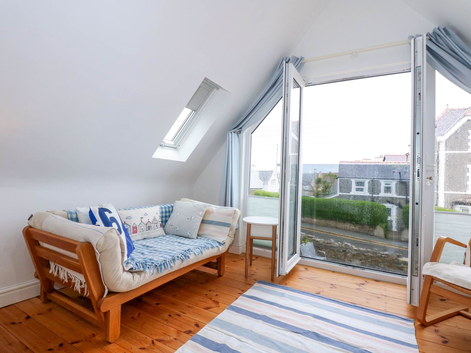 "Angorfa Bach consists of a kitchen with an electric oven, electric hob, microwave, fridge, washing machine, and dishwasher, a living/dining room with a Smart TV with Freeview, an electric fire and dining seating for four people. The bedrooms include a double with a TV, sofa, and Juliet balcony, and a twin with a TV and basin. There is a shower room with a walk-in shower, basin and WC, and a ground-floor bathroom with a bath, shower over, basin and WC. Outside, there is private driveway parking for two cars and an enclosed front garden with a patio, furniture, and storage. Within 0.2 miles is a shop and pub, and 0.3 miles, a beach. WiFi, fuel, power, bed linen and towels are all included in the price. One well-behaved pet is welcome. Sorry, no smoking. Have a wonderful retreat at Angorfa Bach. Note: This property accepts families only. Note: Beach items available in garden storage. Note: This property has a Good Housekeeping Bond of 250GBP a charge may apply if the bins are not sorted correctly for collection there are instructions at the house"
