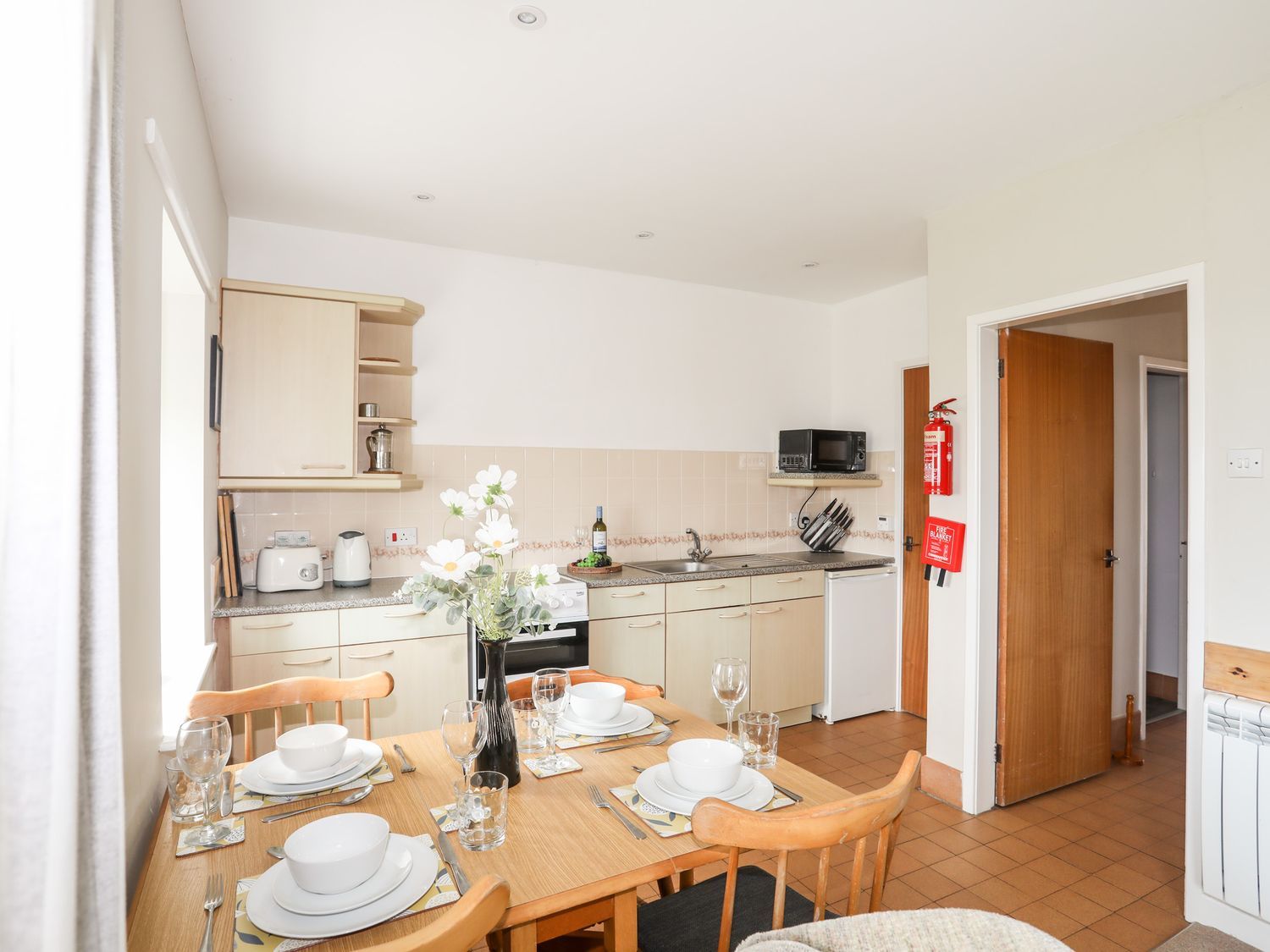 "Set across one level and hosting two bedrooms, comprising of a double and a family room with three singles, along with a shower room and a separate WC, this property can sleep up to five people. There is also an open-plan living space with a kitchen, dining area and sitting area with electric stove, equipped with an electric oven and hob, a microwave, kettle, toaster and fridge. For heating purposes, the property is equipped with electric storage heaters, the use of which are included in the rental price, along with fuel and power. For entertainment purposes, there is a TV with Freeview and WiFi. Outside, there is off-road parking for 2 cars in a shared car park and a communal lawned area with furniture. This property welcomes two well-behaved pets at an additional charge of -ú25 pet pet. Sorry, smoking is not permitted. For your local conveniences, there is a shop within 1.8 miles, a pub within 0.7 miles and a beach within 0.4 miles. Guests have access to on-site facilities, including: a laundrette with a washing machine and tumble dryer that take -ú1 coins and cost -ú3 per wash, an outdoor hosepipe and tap, along with a play barn area, games room, badminton and table tennis. Whisk your loved ones away on a memorable escape with a stay at 9 Ty'n Don. "