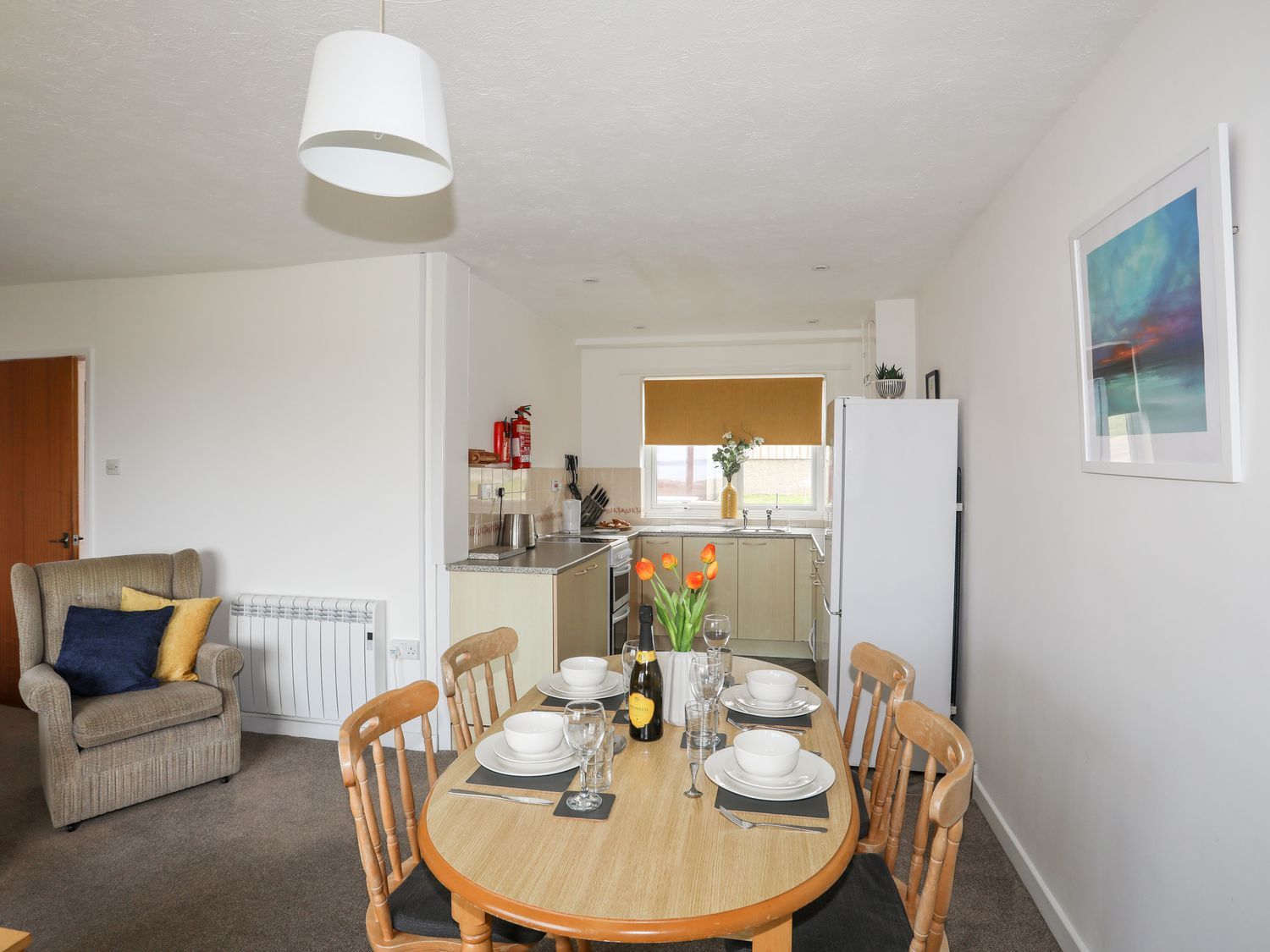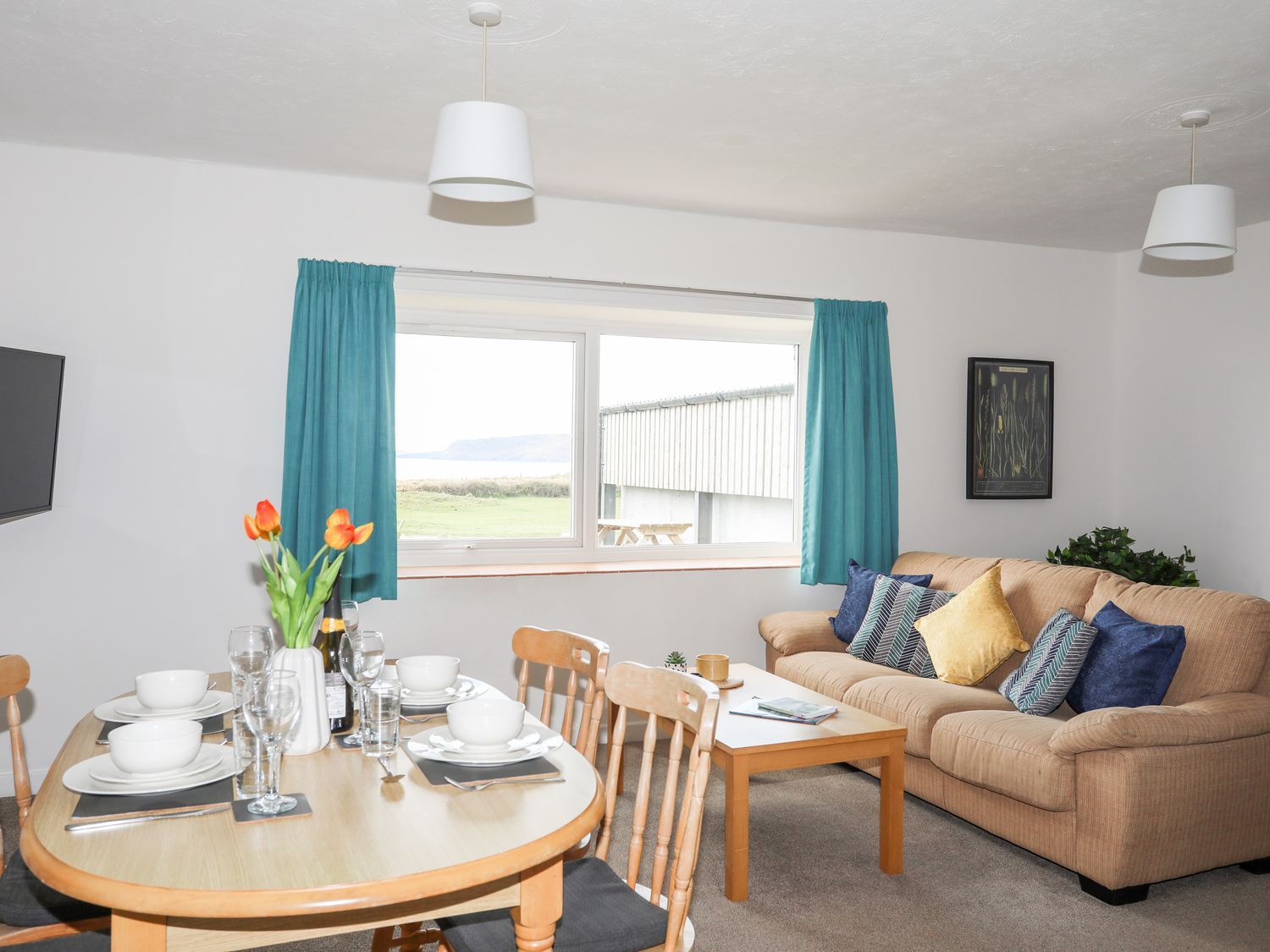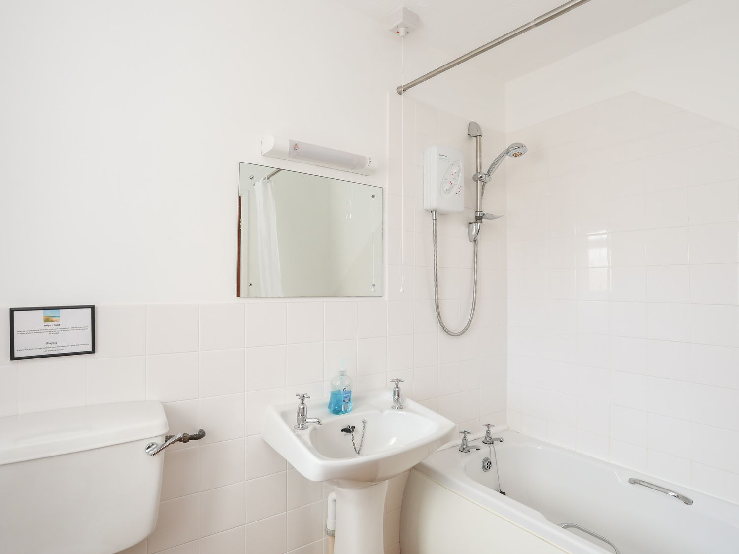 "Two bedrooms including a double with basin and a bunk, served by a bathroom with bath and shower over. The living area is open-plan and comprises of a kitchen, dining and sitting area with electric stove. The heating is electric storage heaters and the kitchen houses an electric oven and hob, microwave, fridge/freezer. For entertainment there is a TV with Freeview and WiFi. Fuel and power are included. To the outside is a shared garden with lawn, gravelled area and furniture, along with shared parking for two cars. Two pets are welcome at a -ú25 fee however smoking is not permitted. 1.4 miles to a shop, 0.4 miles to a pub and beach. Note: Guests have access to on-site facilities, including a laundrette with a washing machine and tumble dryer that take -ú1 coins and cost -ú3 per wash, a hosepipe and tap in a neighbouring field to rinse off wetsuits and dogs, along with a Play Barn area, games room, badminton and table tennis. 8 Ty'n Don is a lovely escape to a scenic corner of Wales. "