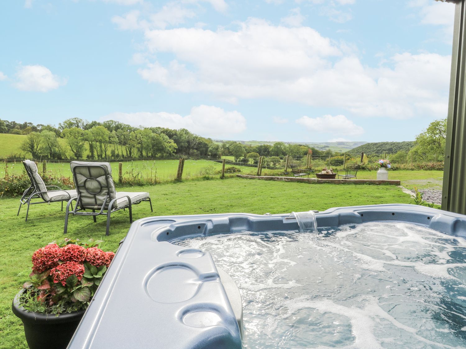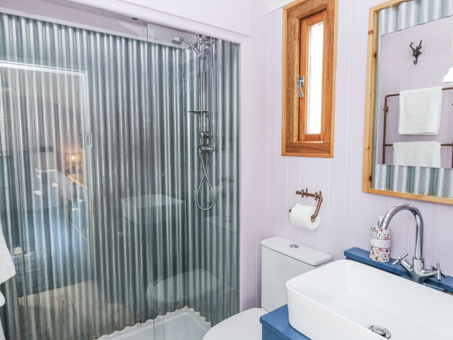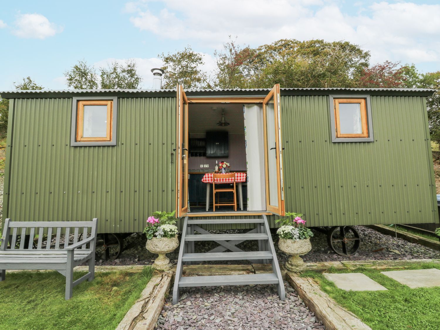 "Brondel Luxury Shepherd's Hut, a single-storey studio-style shepherd's hut, consists of a kitchen with combi microwave/oven, hob, fridge with icebox, and kettle, a dining area dining seating, and a sitting area with woodburning stove. The bedroom consist of a king-size bed and bunk bed serviced by a en-suite shower room with walk-in shower, basin and WC. WiFi, fuel, power, bed linen, and towels are included in the rent. Outside, there is a garden with lawn, furniture, hammock, fire pit, hot tub, and off-road parking for three cars. One well-behaved dog welcome. Sorry, no smoking. Within 6.8 miles you will find a shop, 3.4 miles a pub and within 1.1 miles a river. Uncover the best of Ceredigion and its surrounding areas with a holiday at Brondel Luxury Shepherd's Hut. Note: There are steps up to the property. Good Housekeeping Bond of 100 GBP on this property "
