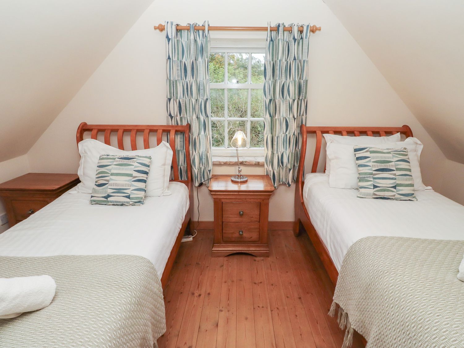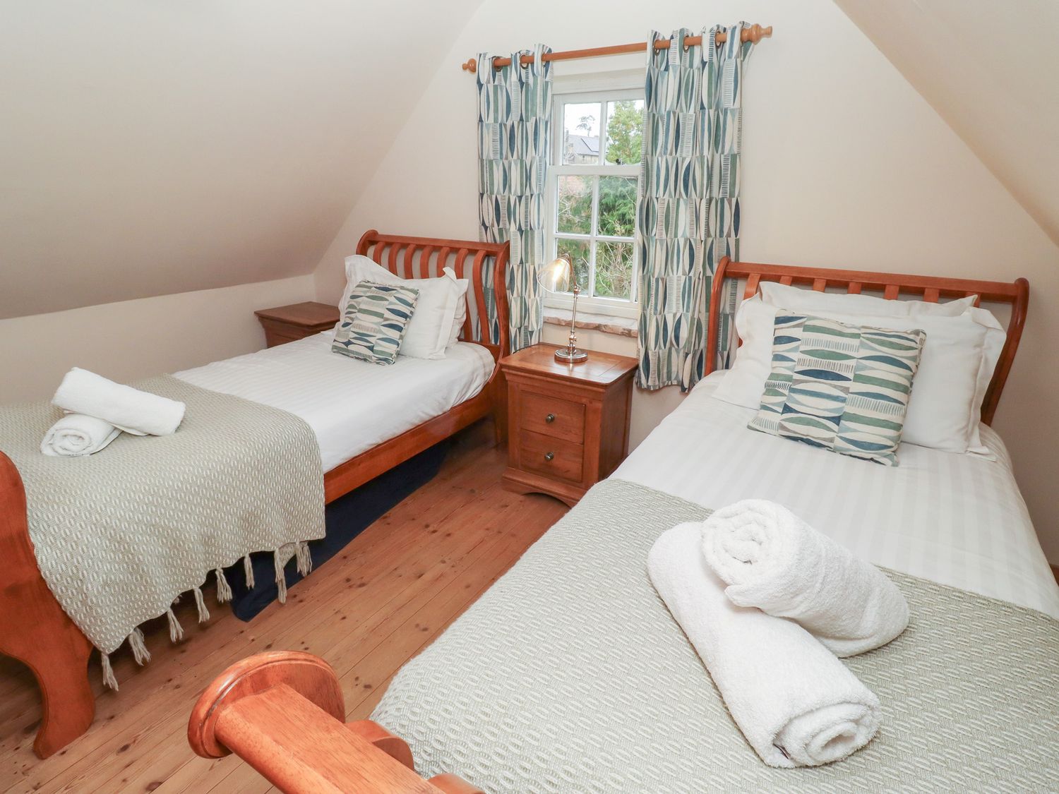1 x First floor super-king-size. 1 x First floor Twin room. 1 x Ground-floor super-king-size (zip/link, can be twin on request). Family Bathroom with freestanding bath, walk-in shower, handheld shower, basin, heated towel rail, WC. First floor WC only.