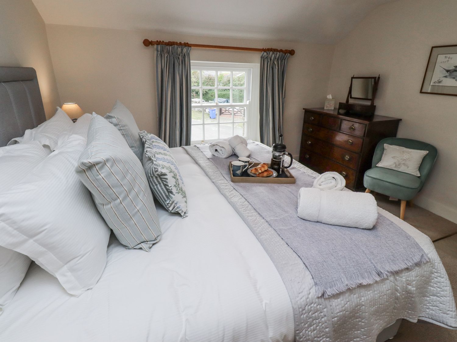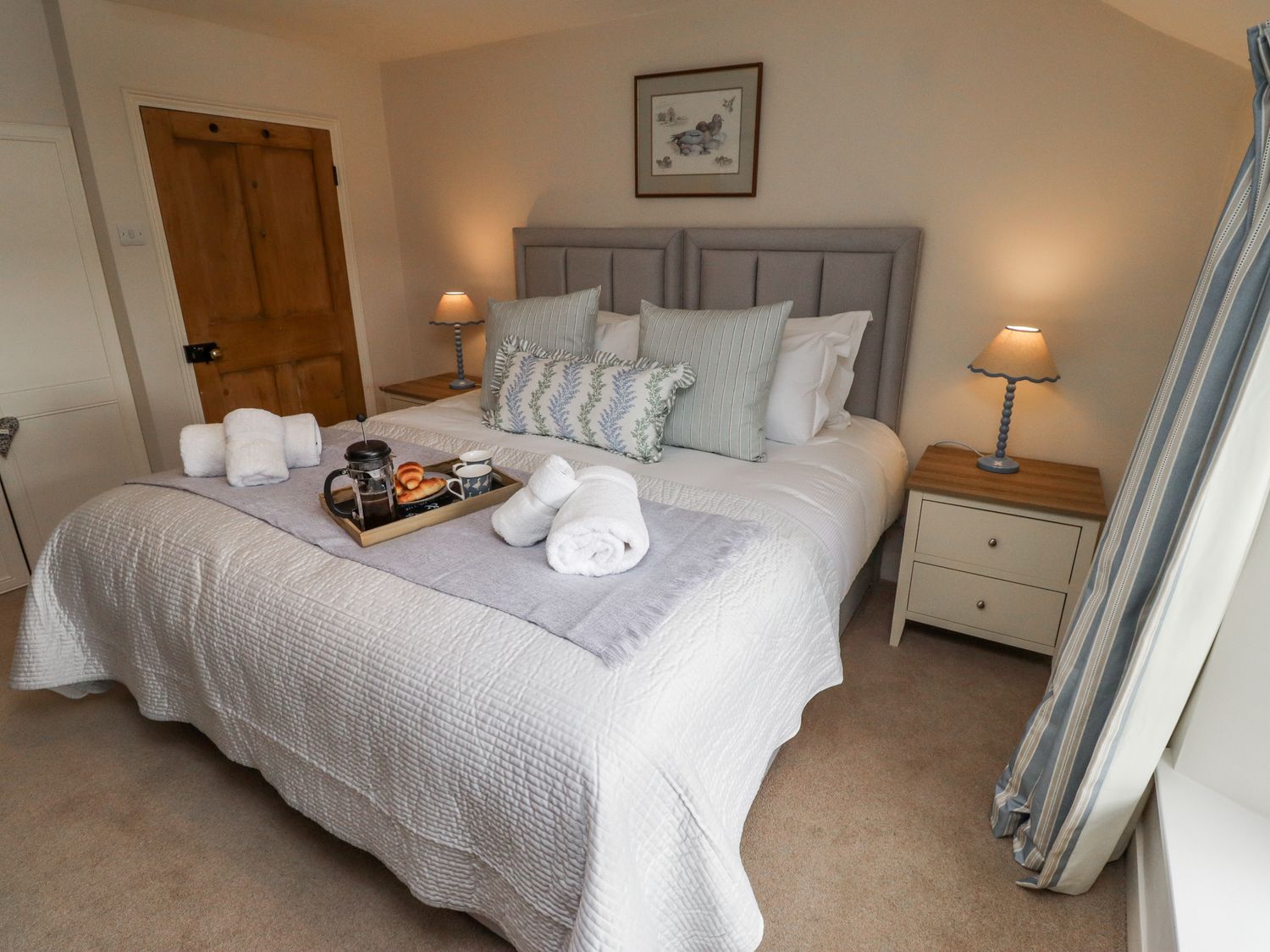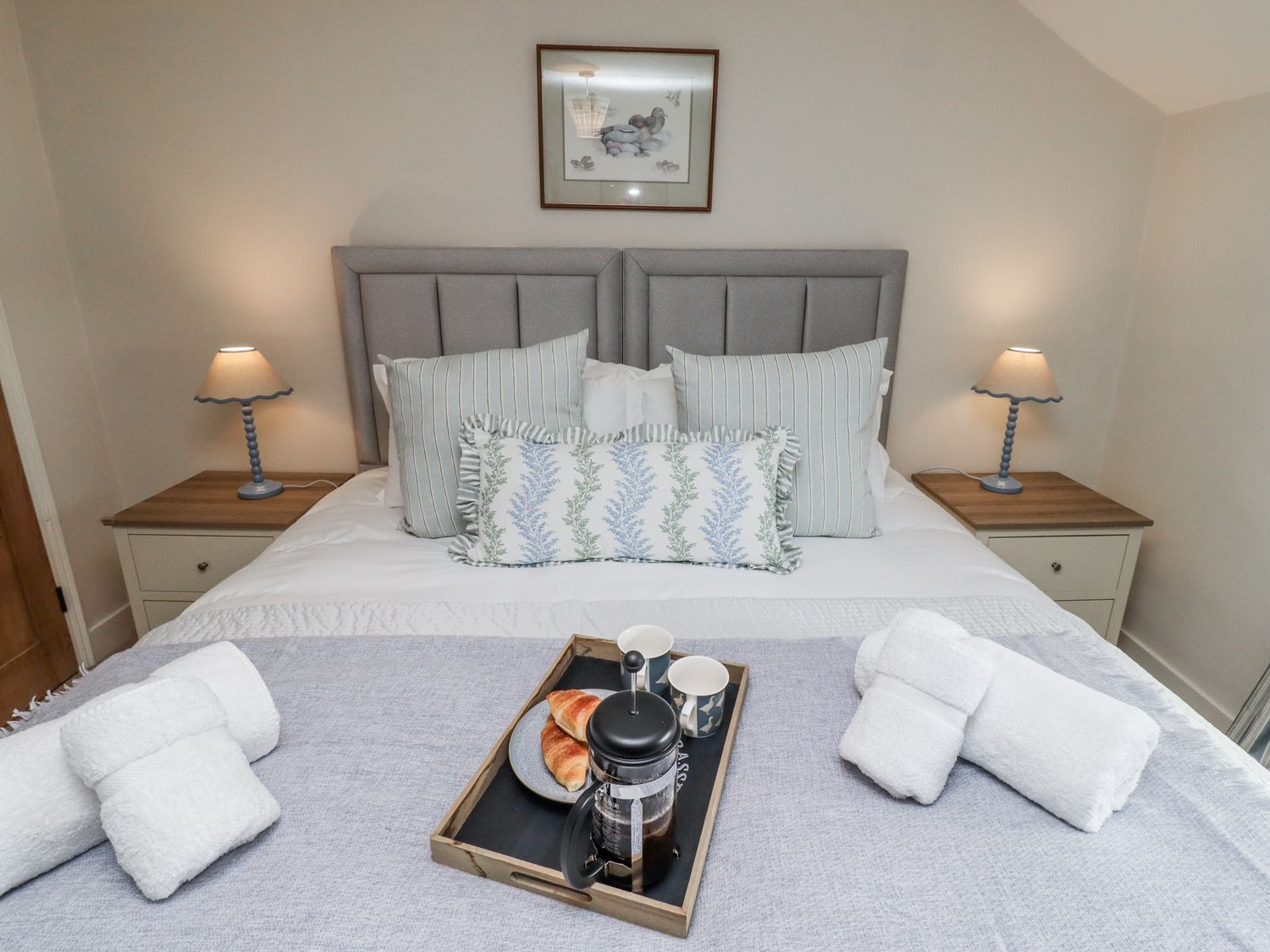 "Four bedrooms: 1 x super-king size with dressing room and en-suite walk-in shower, basin, heated towel rail and WC. 2 x super-king size (zip/link can be twin on request), 1 x double. Bathroom with bath, shower over, basin, heated towel rail and WC. Cloakroom. Kitchen/diner. Utility. External utility room. Living/dining room. Snug with woodburning stove"