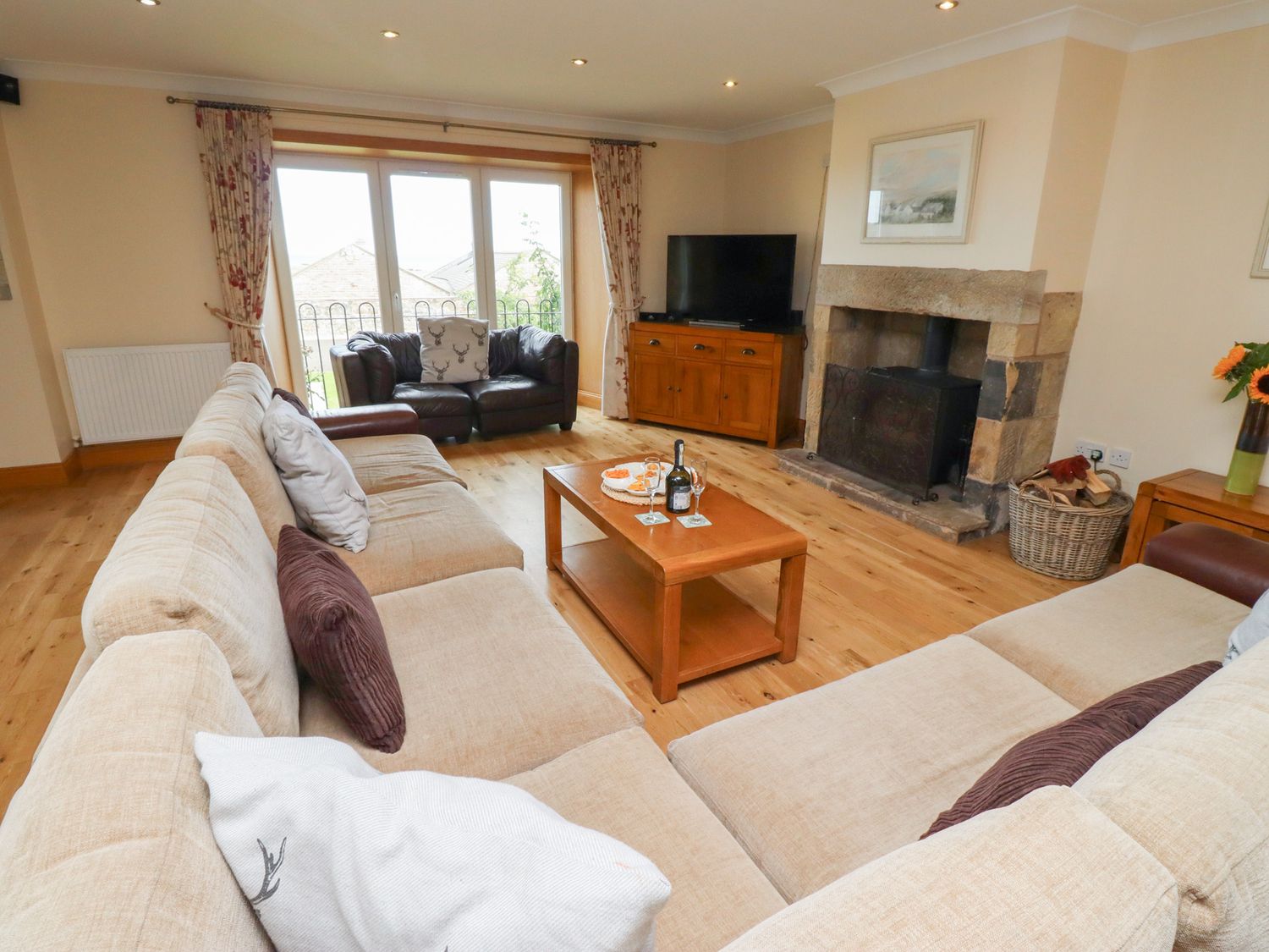 "Granary Stone House is a luxury, semi-detached barn conversion on the edge of the popular coastal village of Embleton and can sleep 12 people. There is a super king-size double bedroom with a sofa and an en-suite bathroom with access to a twin bedroom, which can only be accessed through this double room. There is also a super king-size double bedroom (zip/link, can be twin on request), a ground floor super king-size double bedroom, a ground floor twin bedroom, a twin bedroom on the first floor, a shower room, a ground floor bathroom, a kitchen with a dining area, a utility room, a sitting room with a woodburning stove and a snooker table. Note: The swimming pool is available for all guests staying in our 13 cottages and 4 apartments. Guests must go to the pool entrance area to sign up for the swimming slots they would like to use, using their property name. Each stay is allocated a number of slots, 7 night stay - 5 slots, 5 night stay - 3 slots,3 night stay - 2 slots. The same time slot is not available to each property each day. Outside there is off road parking for two cars, a front patio with furniture and a shared children-Æs play area on the cottage complex. Granary Stone House is a lovely base for your break away."
