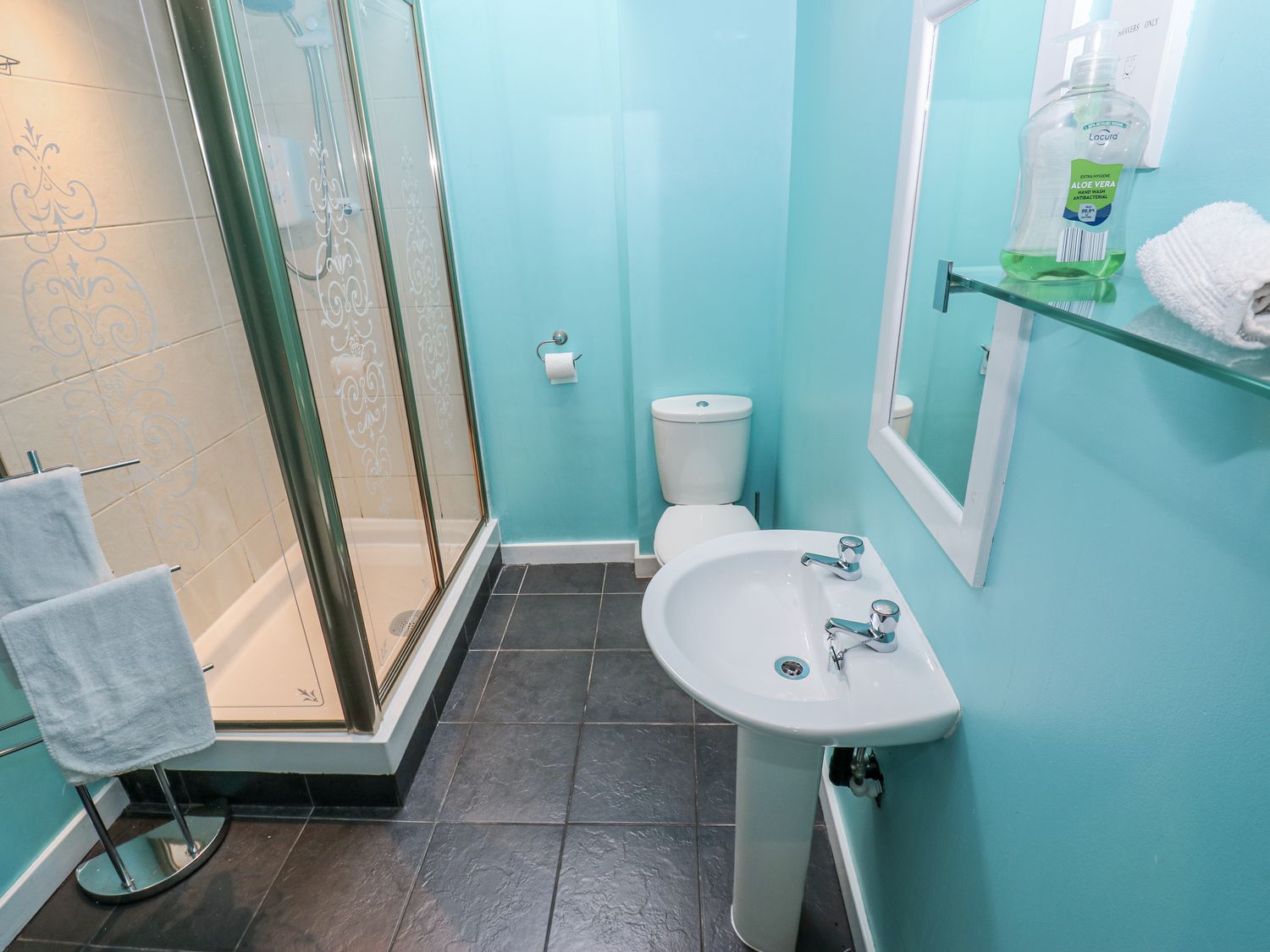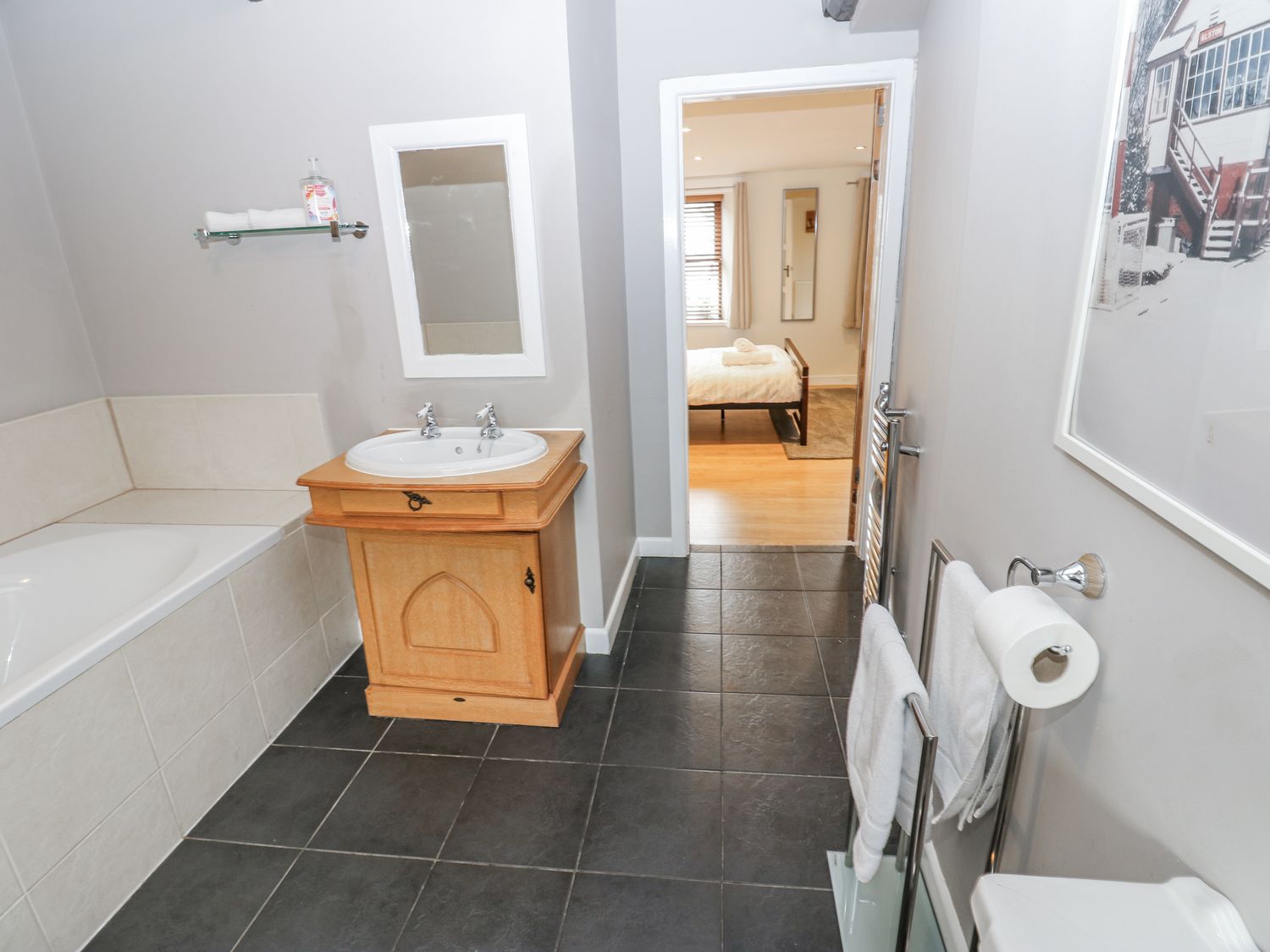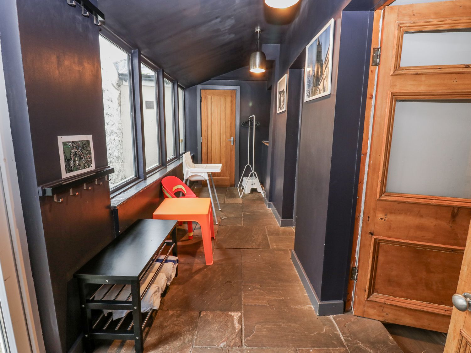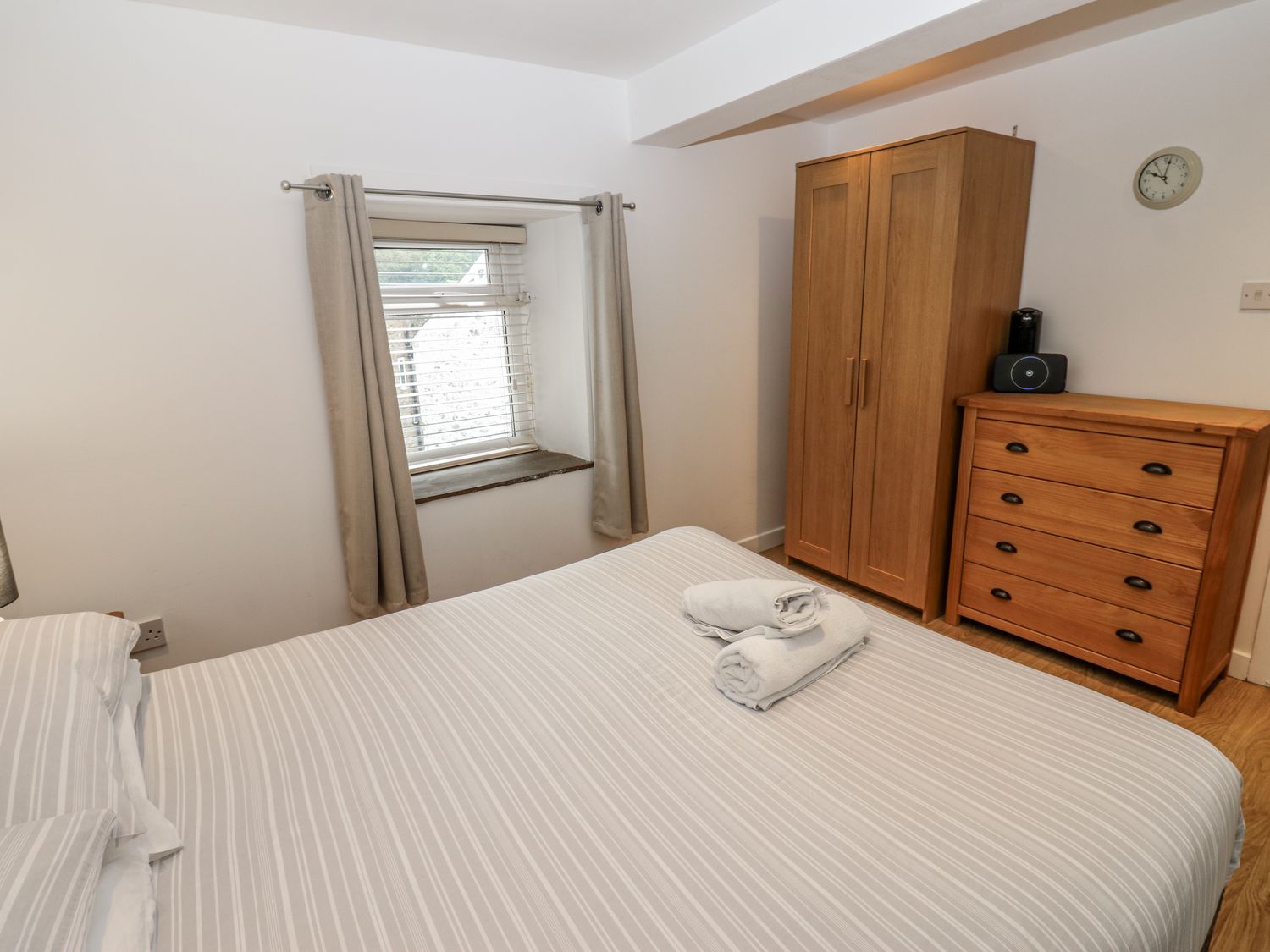 "Over three floors. Five bedrooms: 1 x double with en-suite bath, hand-held shower, basin and WC, 2 x double, 1 x second-floor family room with double and 2 singles, 1 x second-floor twin. Family bathroom with bath, walk-in shower, basin and WC. Ground-floor shower room with walk-in shower, basin and WC. Kitchen. Utility. Living/dining room with woodburning stove. Games room"