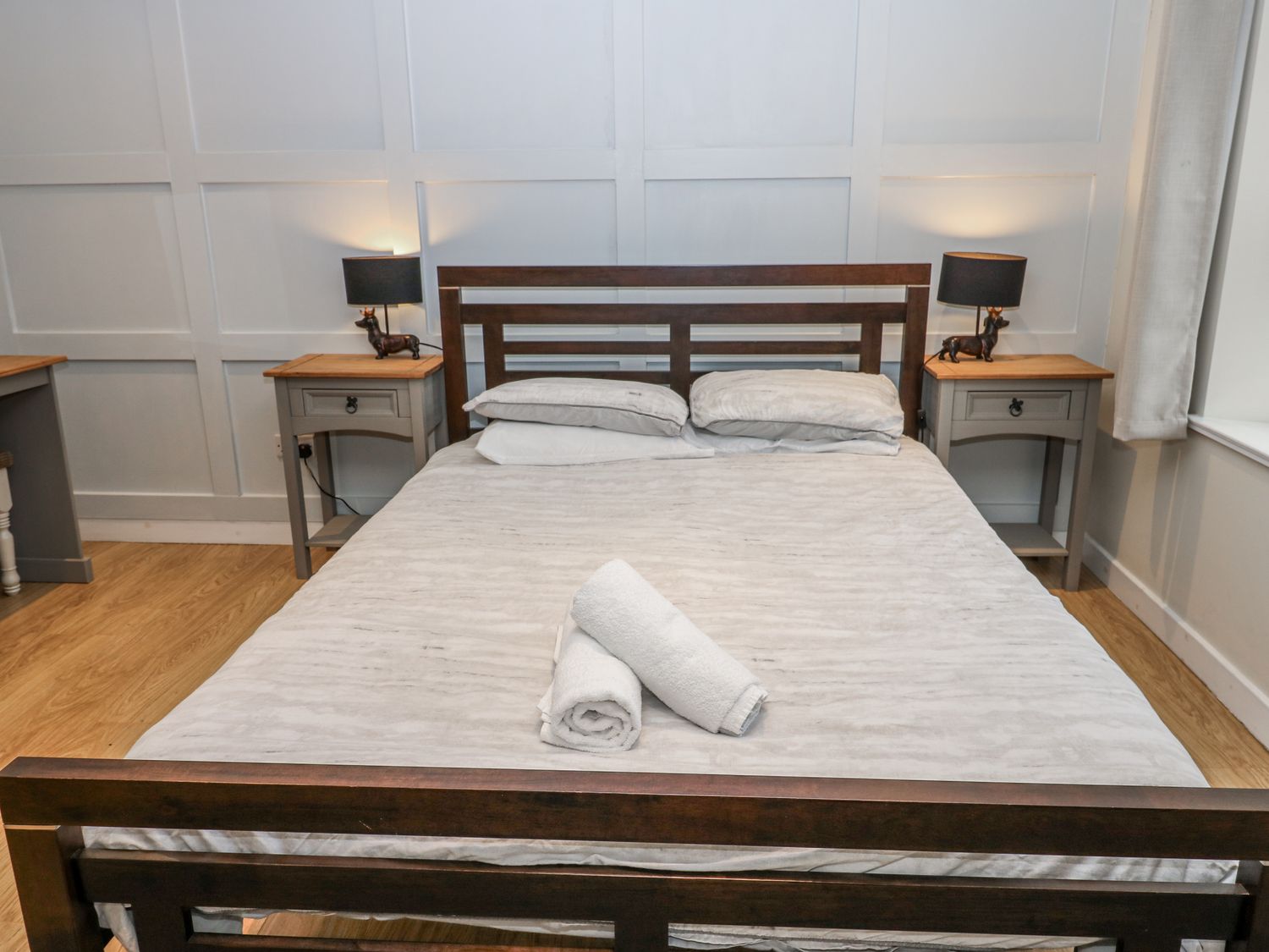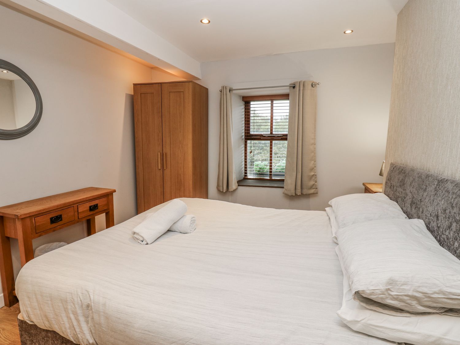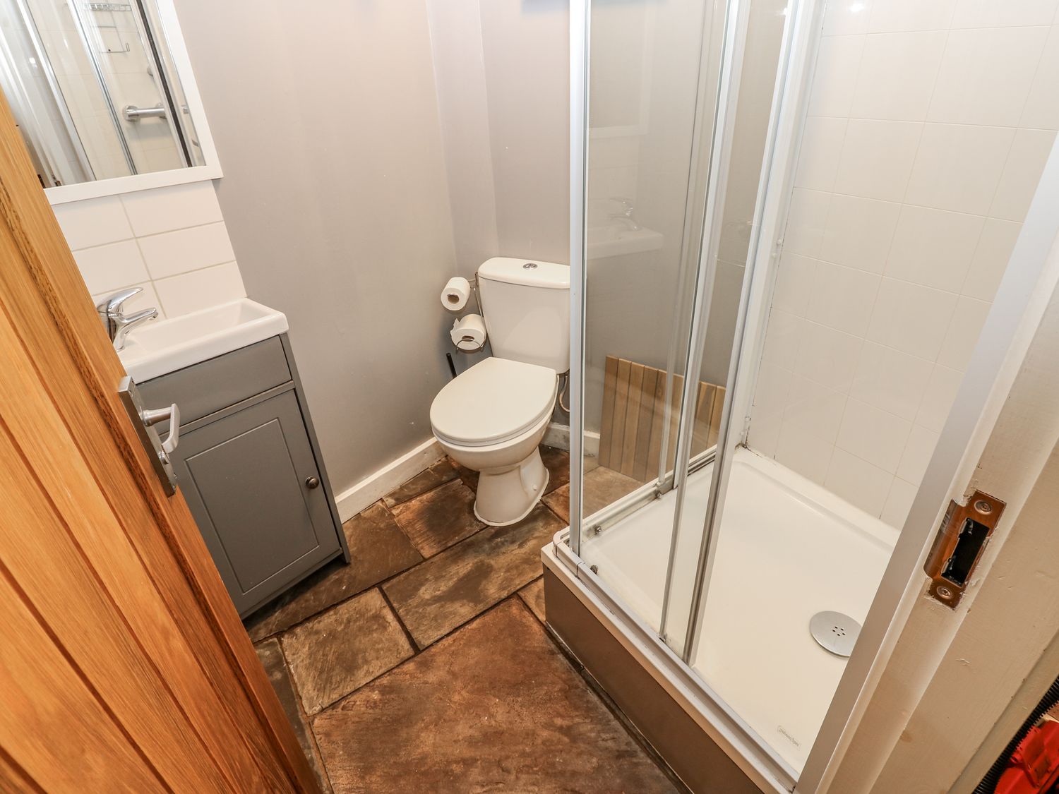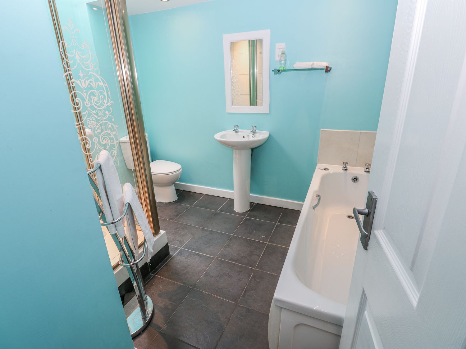 "Over three floors. Five bedrooms: 1 x double with en-suite bath, hand-held shower, basin and WC, 2 x double, 1 x second-floor family room with double and 2 singles, 1 x second-floor twin. Family bathroom with bath, walk-in shower, basin and WC. Ground-floor shower room with walk-in shower, basin and WC. Kitchen. Utility. Living/dining room with woodburning stove. Games room"