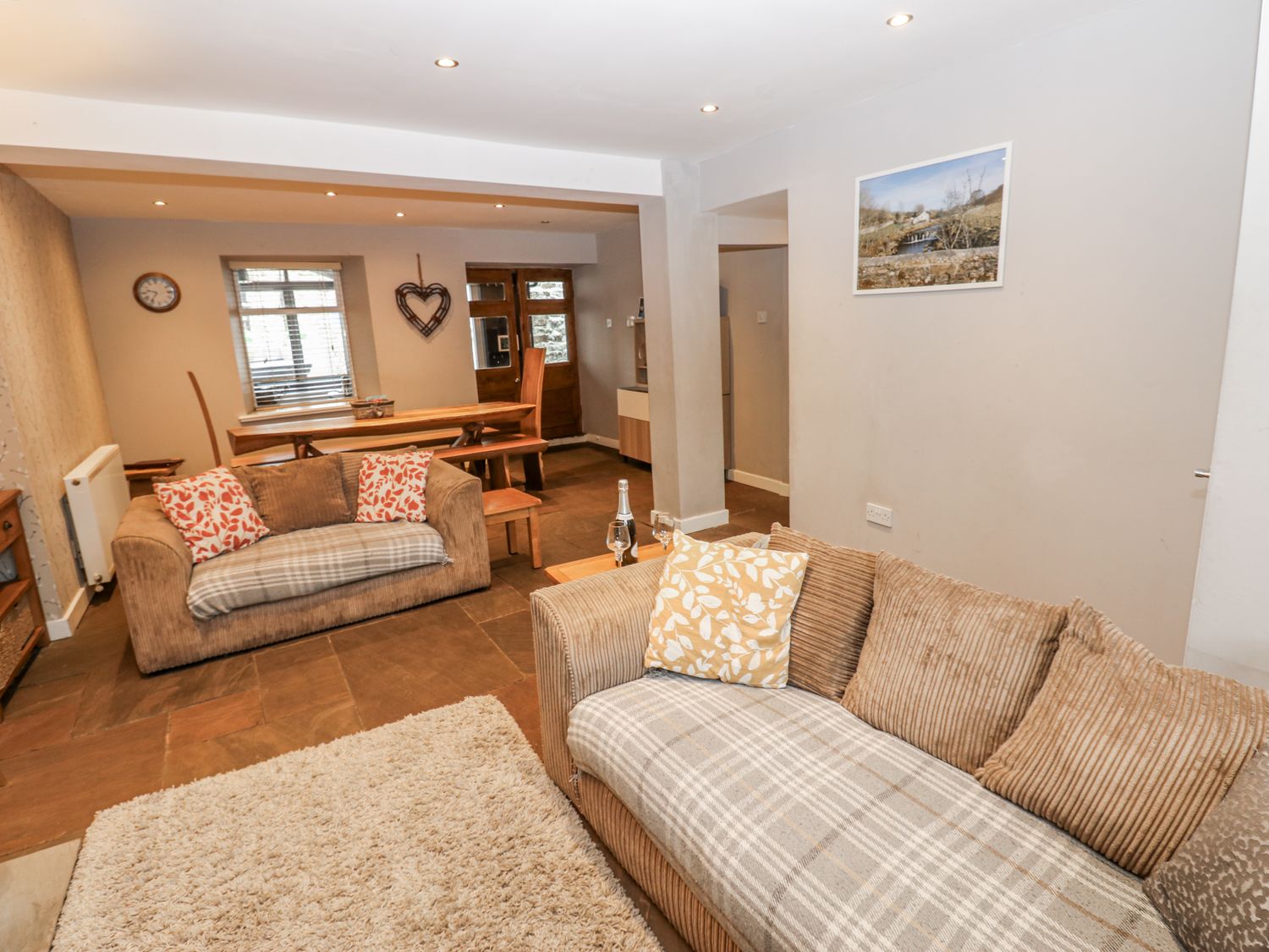 "Mill Race House is a spacious, stone-built cottage situated in the heart of Alston in Cumbria. Hosting five bedrooms and three bathrooms, this cottage can sleep up to fourteen guests. On the first floor are three doubles, one with en-suite bathroom, whilst on the second floor is a family room with double and two singles, plus a twin bedded. There is also a sitting/ dining area with a woodburning stove, a sun room, kitchen and a utility. To the outside is a decked area with a private hot tub. Parking on the road is available on a first come, first served basis, Mill Race House is a superb cottage for those memorable family escapes. Note: Good Housekeeping Bond 500 GBP"