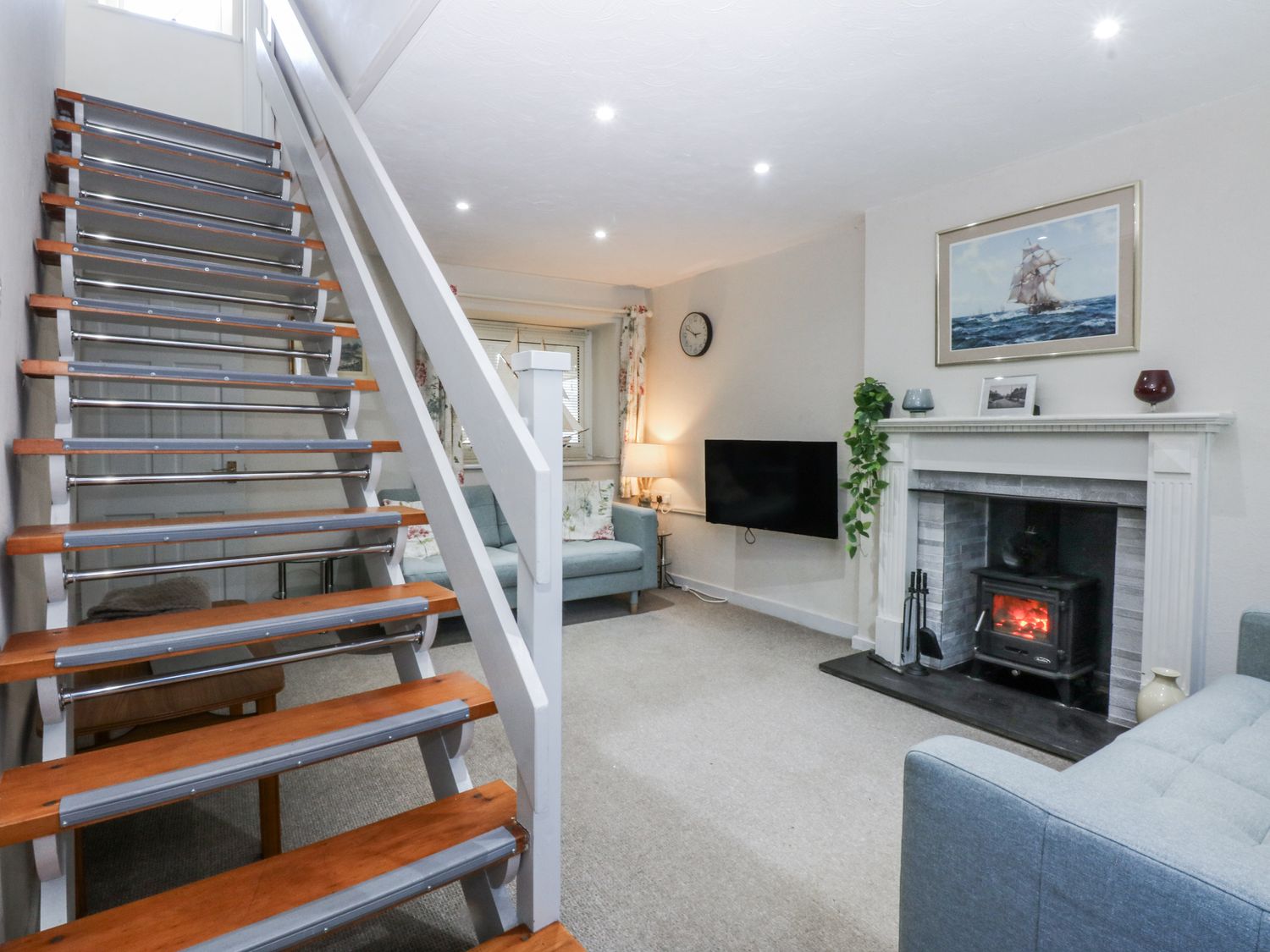 "Two bedrooms: 1 x double, 1 x twin. Ground-floor shower room with walk-in shower, basin and WC. Open-plan living area with kitchen, dining area and sitting area with woodburning stove"