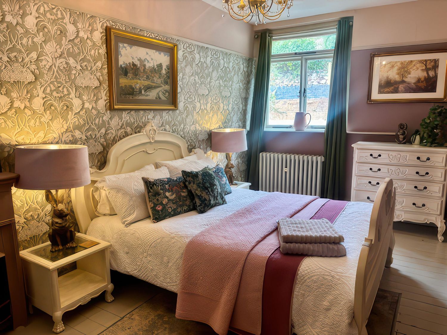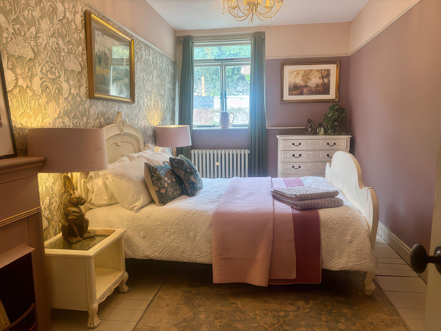 "Two bedrooms: 1 x king and 1 x four poster bed. Bathroom with freestanding bath, walk-in shower, basin and WC. Kitchen. Dining room. Sitting room. Utility with basin and WC."