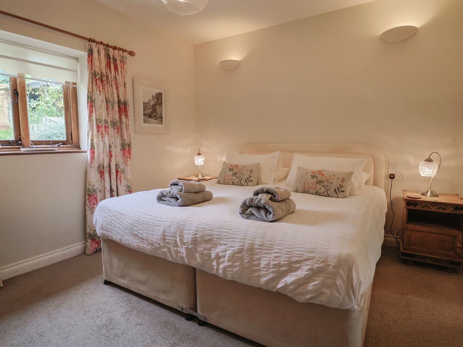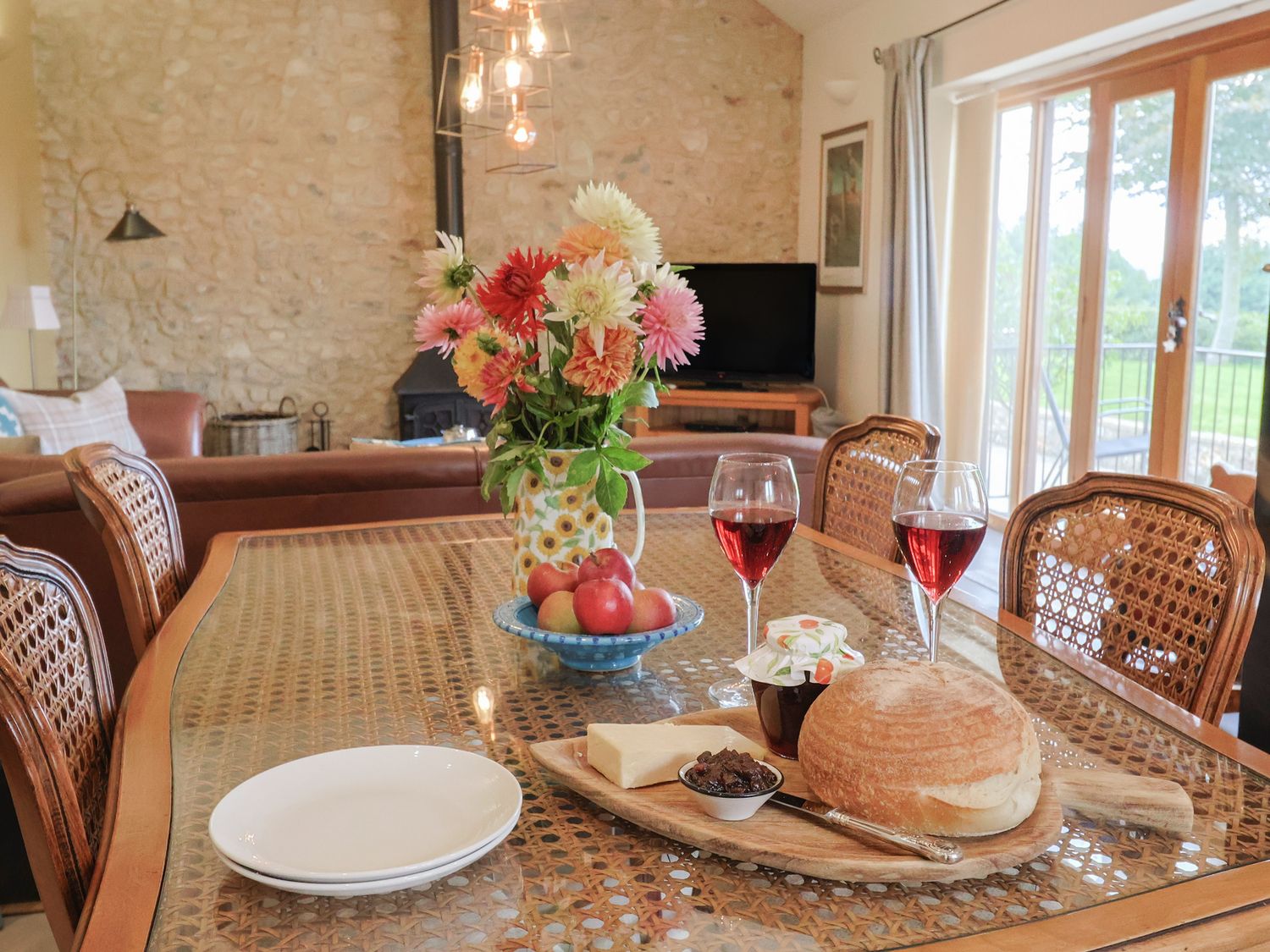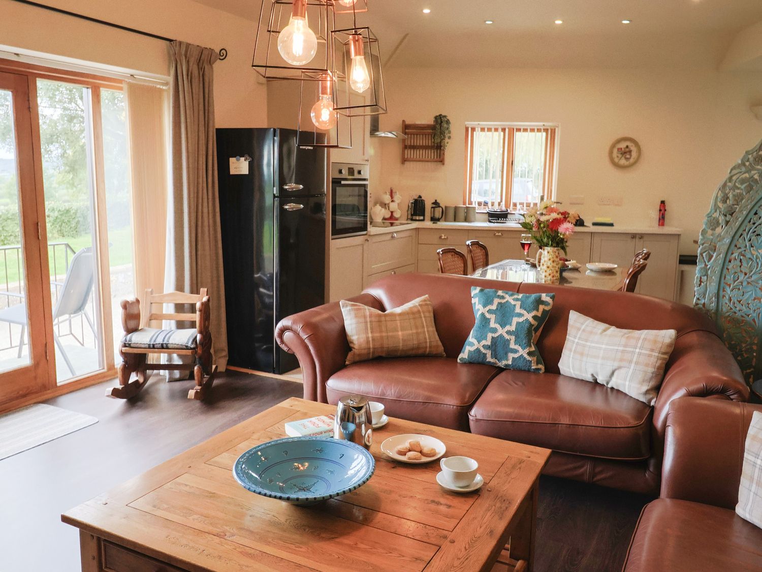 Outside, enjoy countryside views from the private patio or relax in the shared landscaped garden. The property has private parking and welcomes one well behaved dog. Arrival time is from 4pm and departure is by 10am.