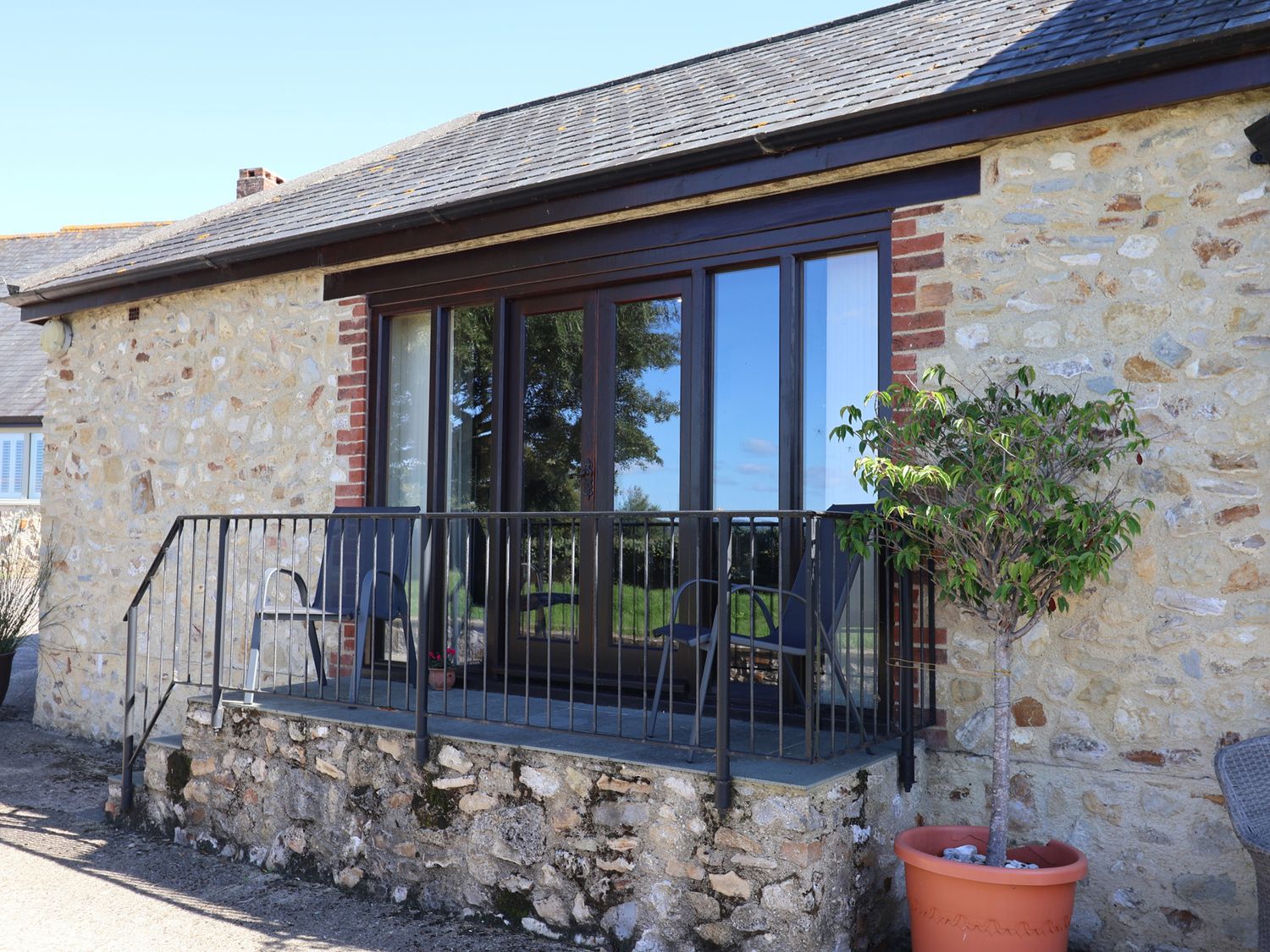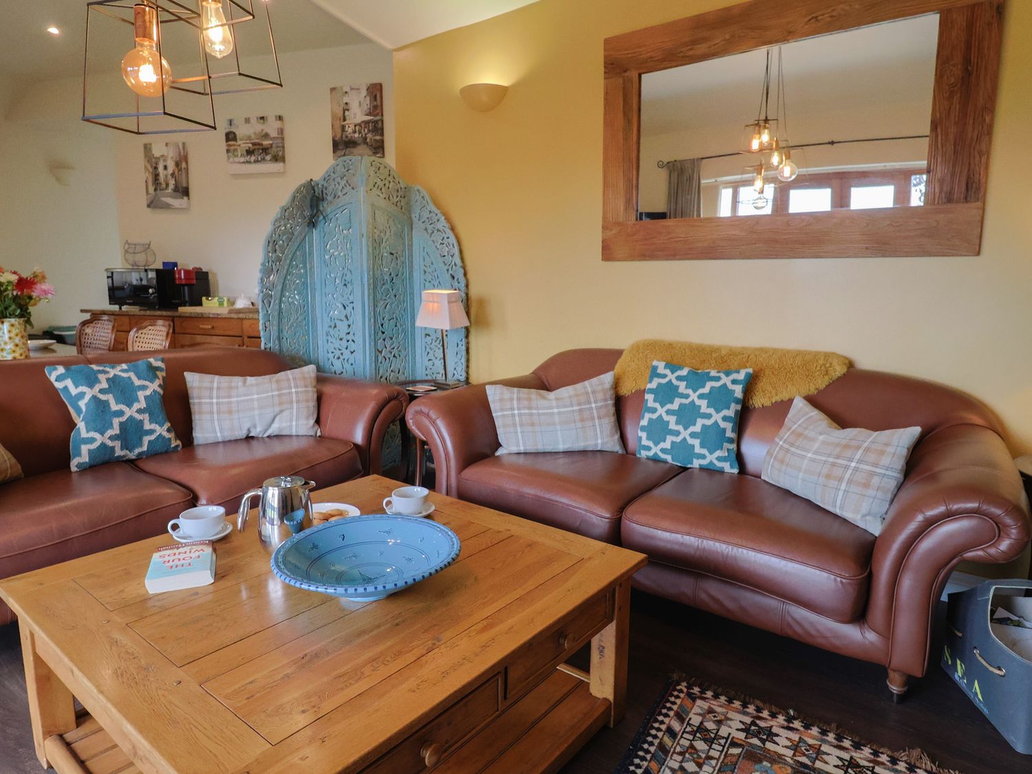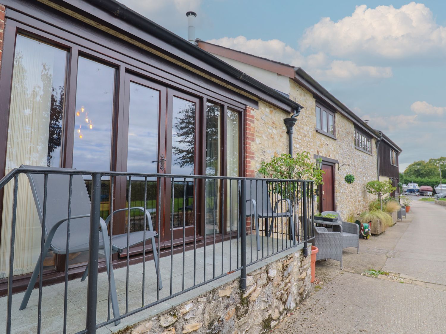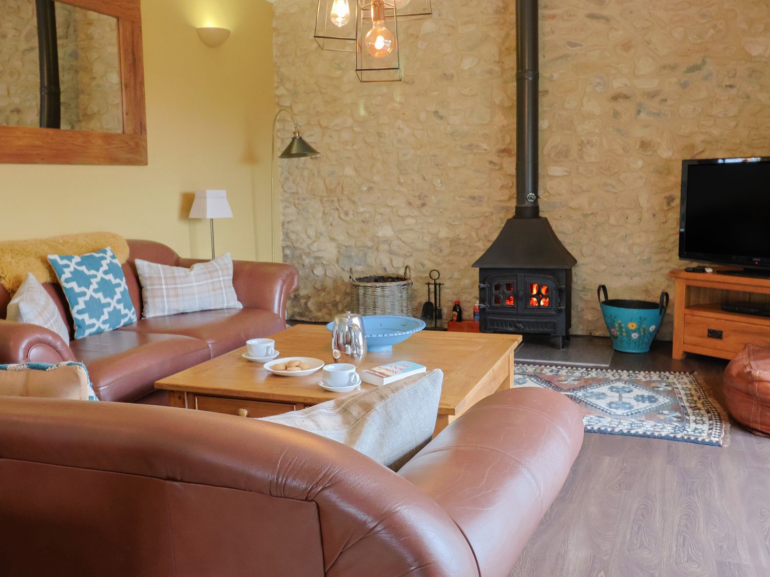 Outside, enjoy countryside views from the private patio or relax in the shared landscaped garden. The property has private parking and welcomes one well behaved dog. Arrival time is from 4pm and departure is by 10am.
