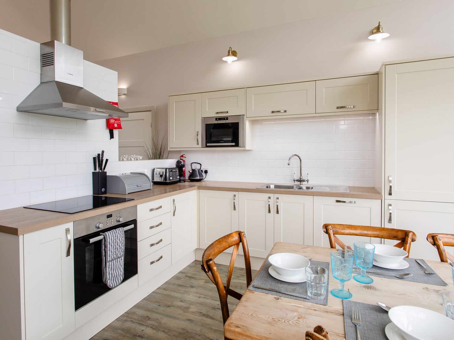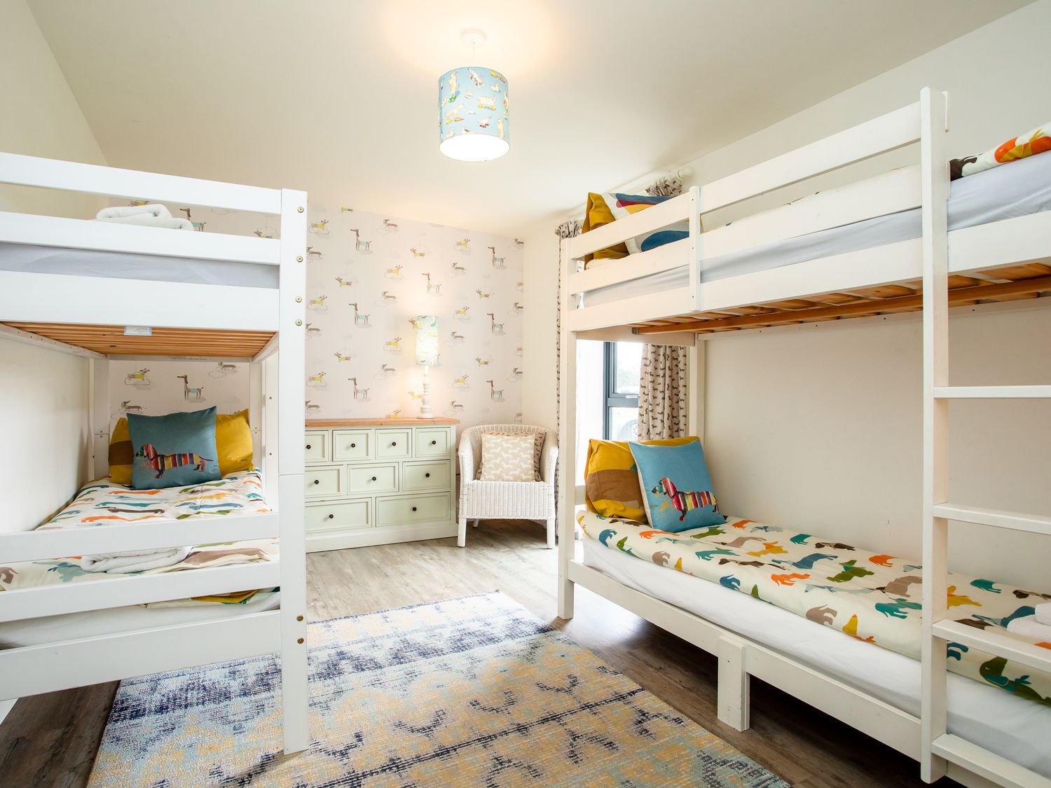 "All ground floor. Three bedrooms: 1 x king-size with en-suite shower, basin and WC, 1 x king-size, 1 x family room with two bunk beds. Bathroom with bath and shower over, basin and WC. Open-plan living room with a kitchen, dining area and sitting area with real flame effect, electric log burner. Utility."