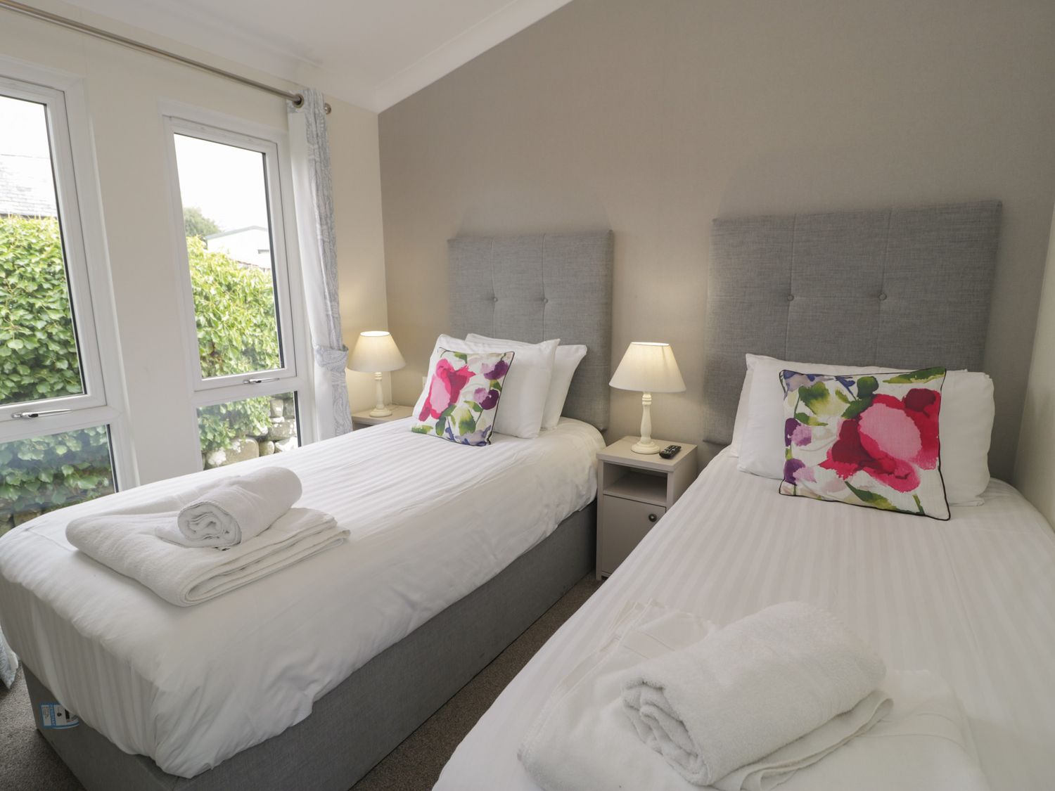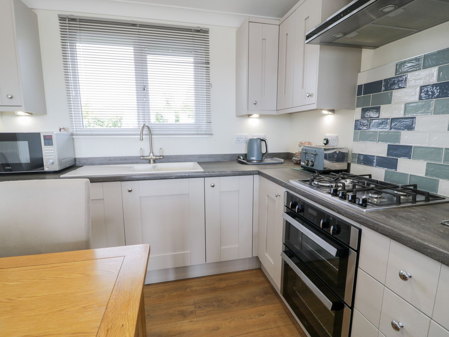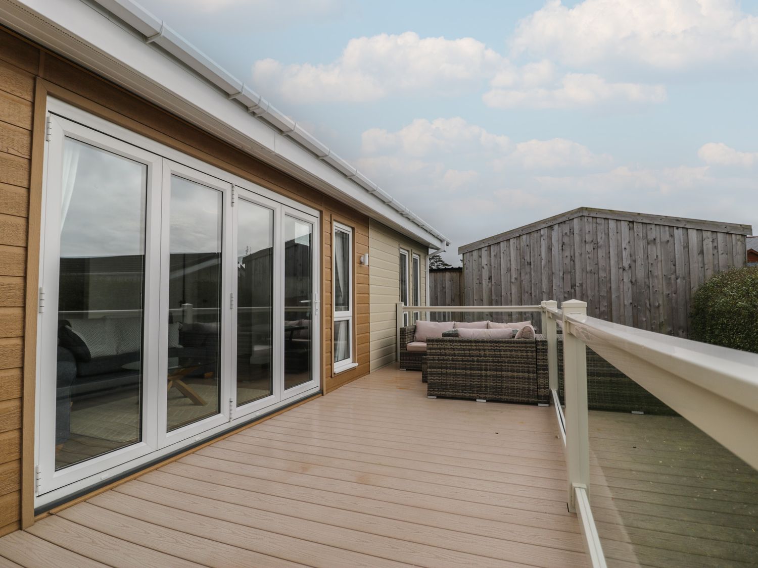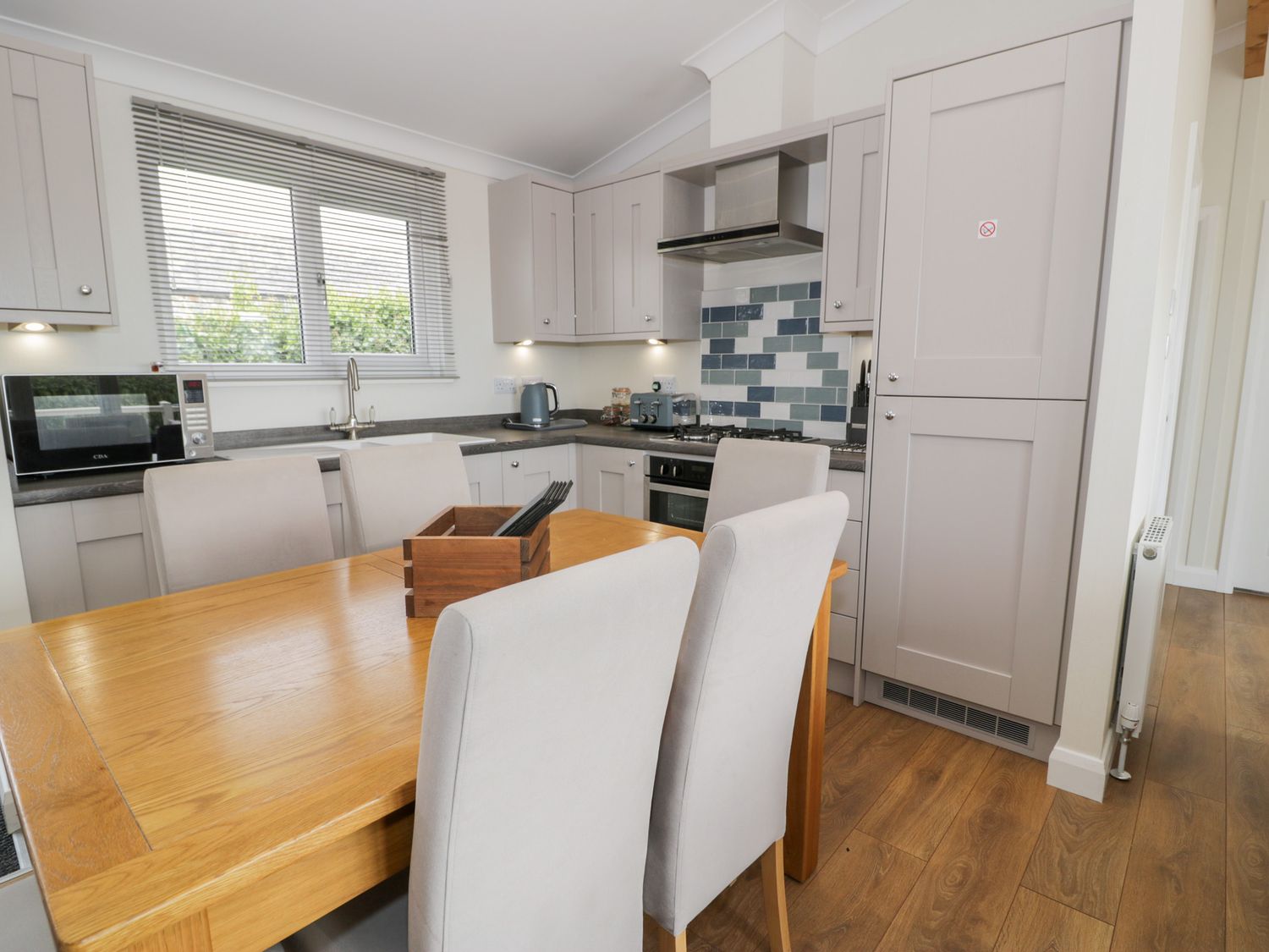 "Single-storey. Three bedrooms: 1 x double with Smart TV and en-suite with walk-in shower and basin and WC, 2 x twin. Shower room with walk-in shower, basin, WC. Open-plan living space with kitchen, dining area and sitting area with electric fire"