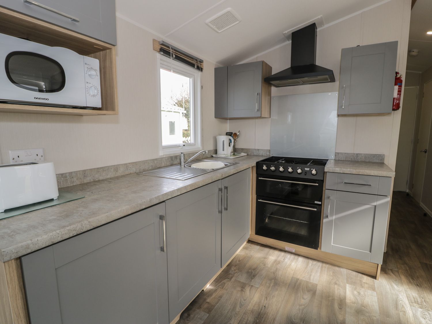 "Gold Caravan (203), a single-storey lovely static caravan, consists of a kitchen with fridge/freezer, gas oven and hob, microwave, kettle, and toaster, a dining room with dining seating, and a sitting room with Smart TV. The bedrooms consist of a double and two twins. There is a shower room with walk-in shower, basin, and WC. WIFI is available at an additional cost. Fuel, power, bed linen, and towels are included in the rent. Outside, there is an enclosed front decking with furniture and off-road parking for one car. Sorry, no pets and no smoking. Your stay at Gold Caravan (203) is sure to be a memorable one. Note: there is a Good Housekeeping Bond of 350GBP"