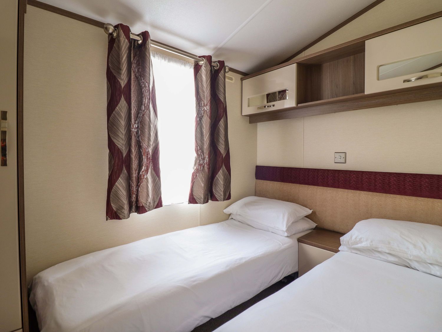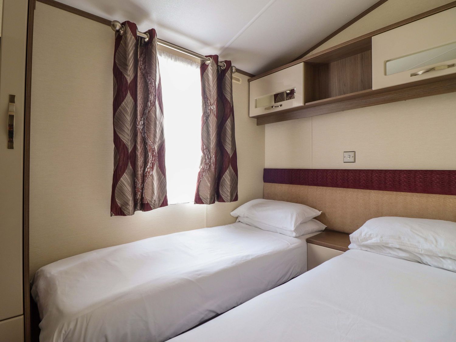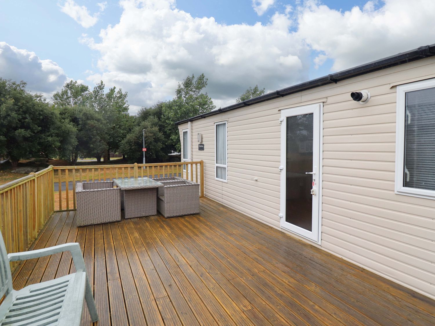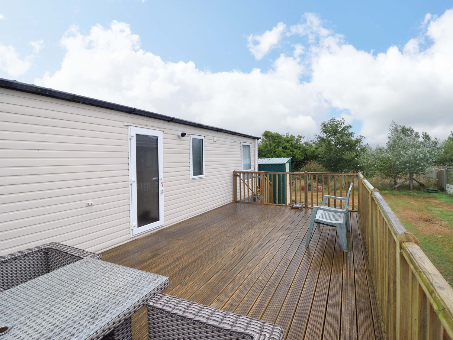 "Beach Retreat E19 Dyffryn Seaside Estate, a single-storey caravan, consists of a kitchen with oven, gas hob, microwave, fridge/freezer, kettle, and toaster, a dining room with seating for four guests, and a sitting room with TV and electric fire. The bedrooms consist of a double with en-suite bathroom and a twin serviced by a shower room with a walk-in shower, basin, heated towel rail, and WC. WiFi, fuel, power, bed linen, and towels are included in the rent. Outside, there is a garden with patio, lawn, and storage, enclosed decking with furniture, and off-road parking for two cars. Sorry, no smoking. Within 0.1 miles, you will find a shop, and a pub and within 0.4, a beach. Wherever your exploration takes you, enjoy all this with a stay at Beach Retreat E19 Dyffryn Seaside Estate. Note: There are steps up to the property. Note: this property has a Good Housekeeping Bond of 250GBP"