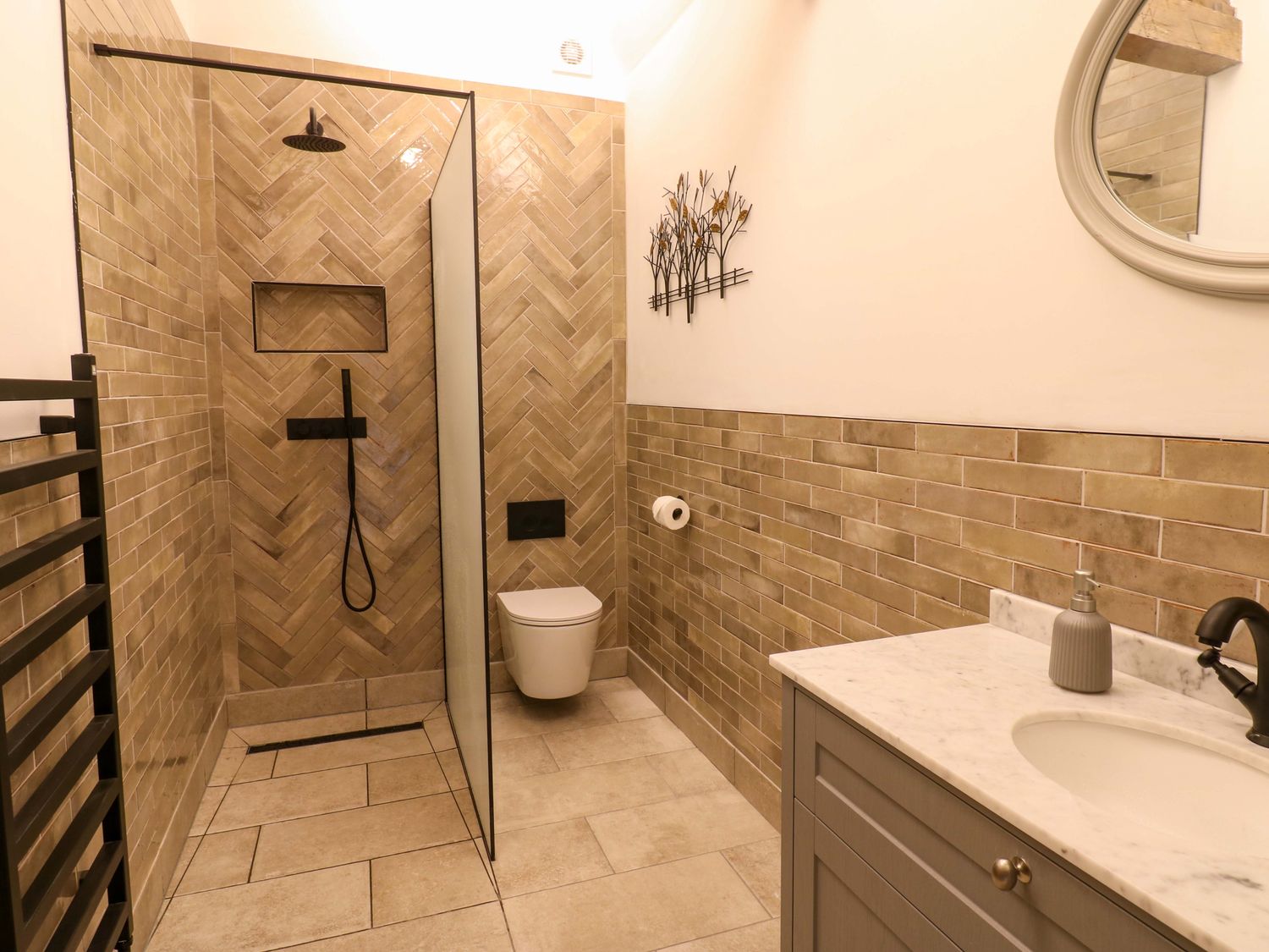 "Two bedrooms: 1 x double, 1 x twin. Shower room with walk-in shower, basin, and WC. Cloakroom with basin and WC Kitchen. Dining room. Sitting room with woodburning stove"