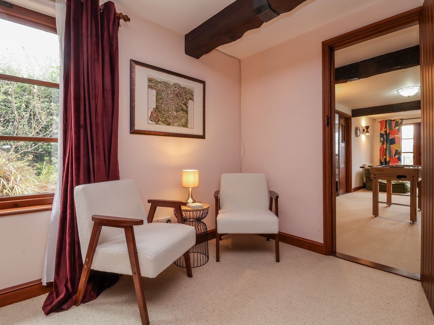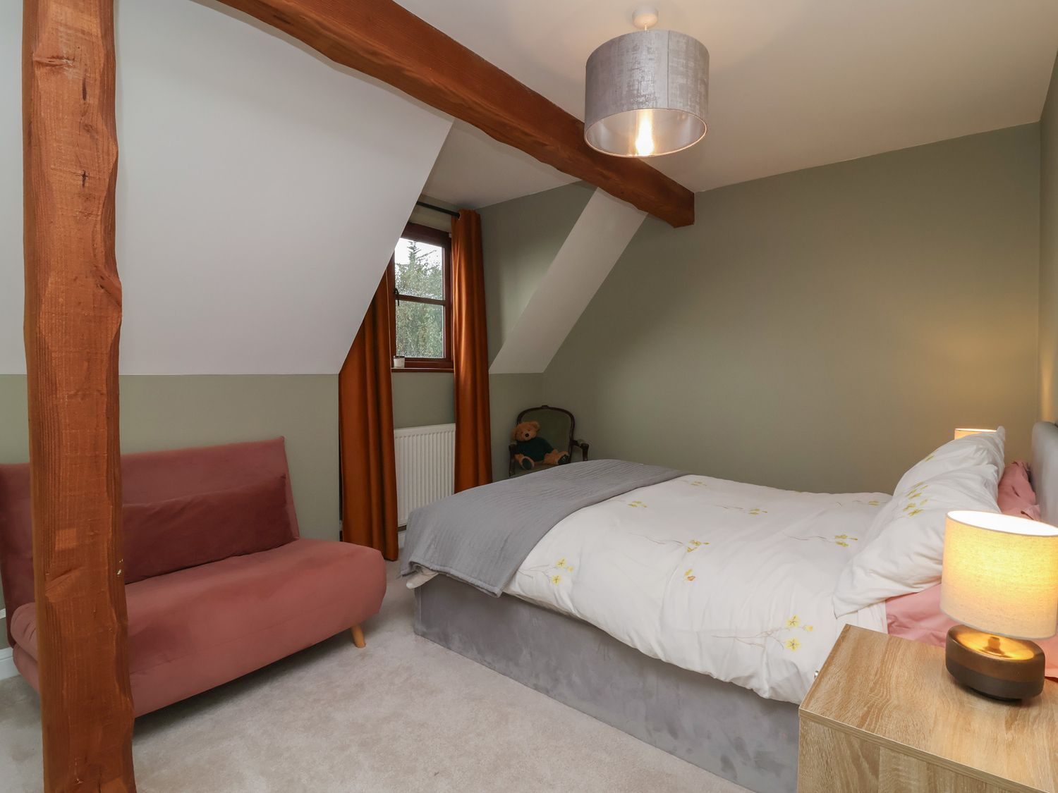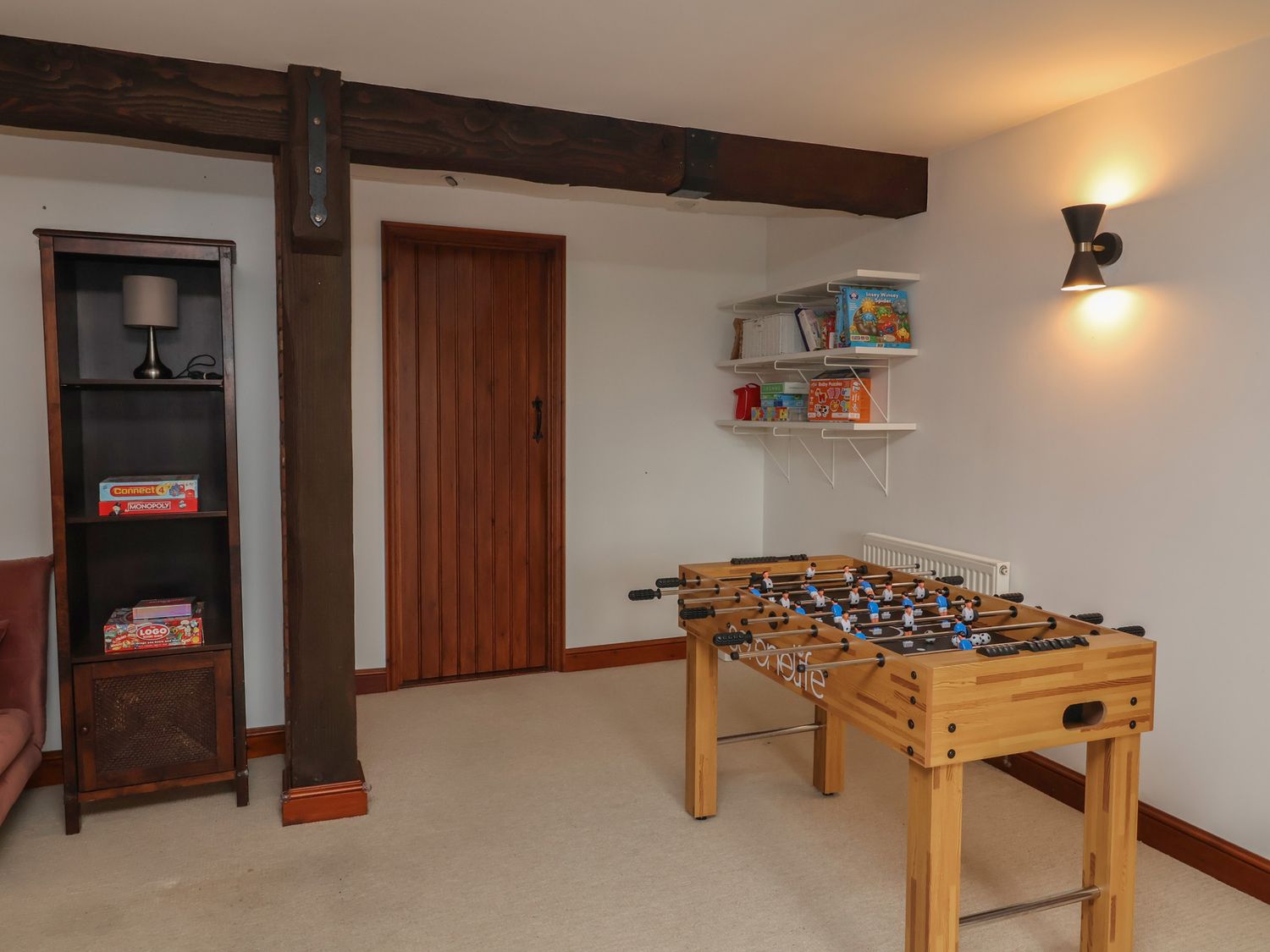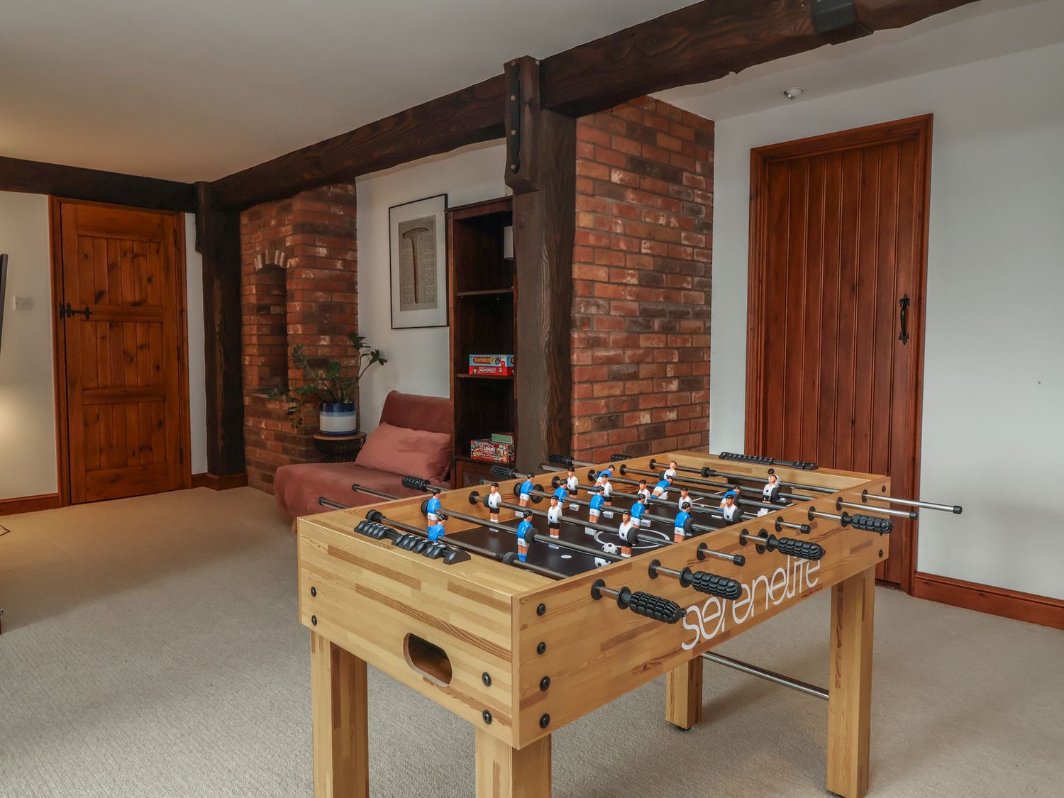 be twin on request), 1 x king-size with en-suite with freestanding bath, handheld shower, walk-in shower, heated towel rail, double basin, and WC, 1 x double, 1 x twin, 1 x single. Bathroom with bath, walk-in shower, basin, heated towel rail, and WC. Cloakroom with basin and WC. Kitchen/diner with Smart TV. Utility. Sitting room with woodburning stove and pull-down projector complete with Amazon Fire Stick and sound from Bluetooth speakers. Games room with a selection of games, books and table football. South facing garden and terrace with far-reaching countryside views"