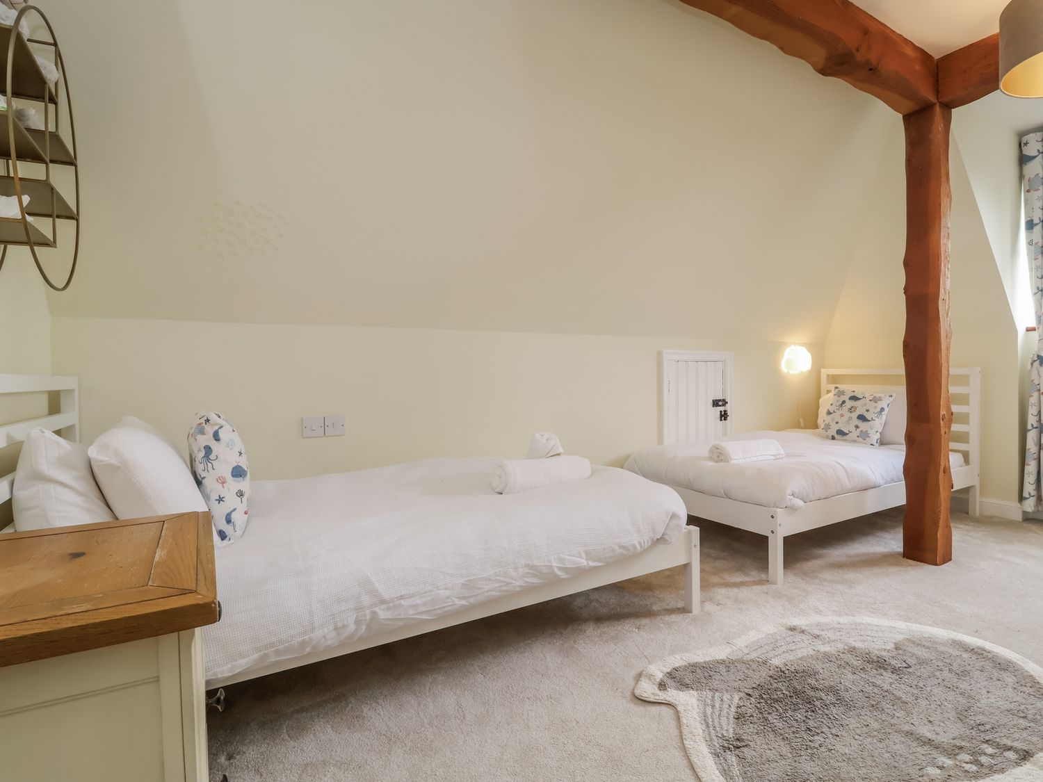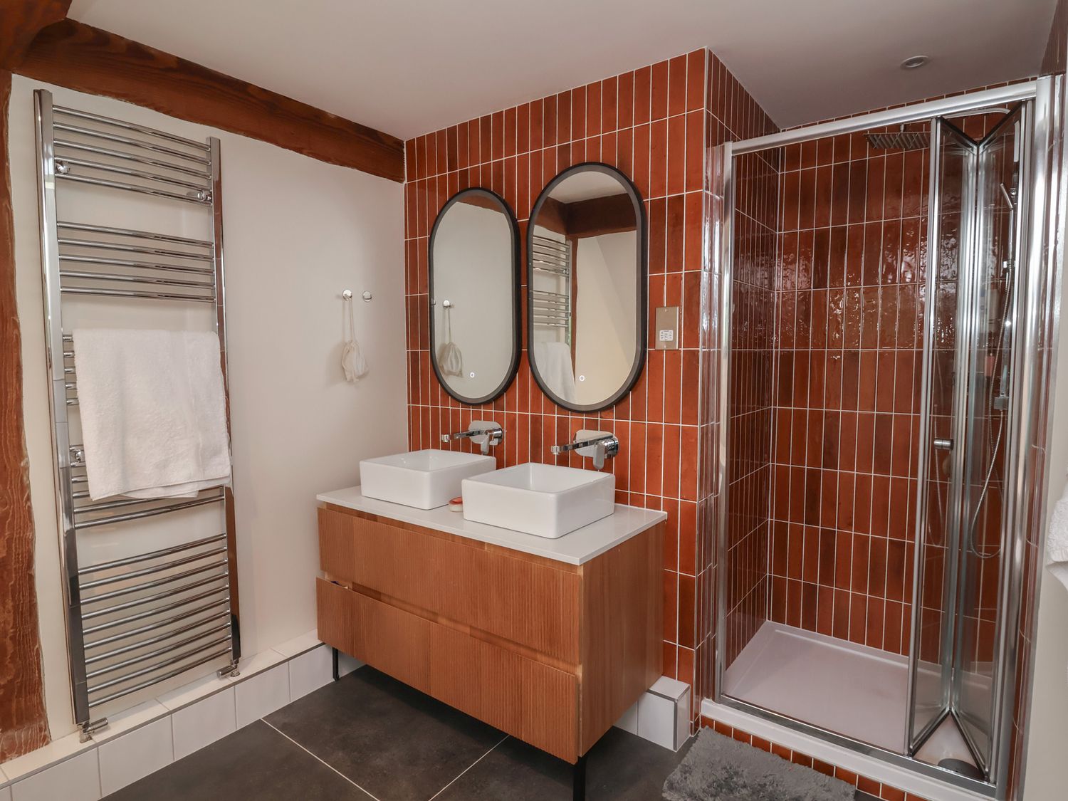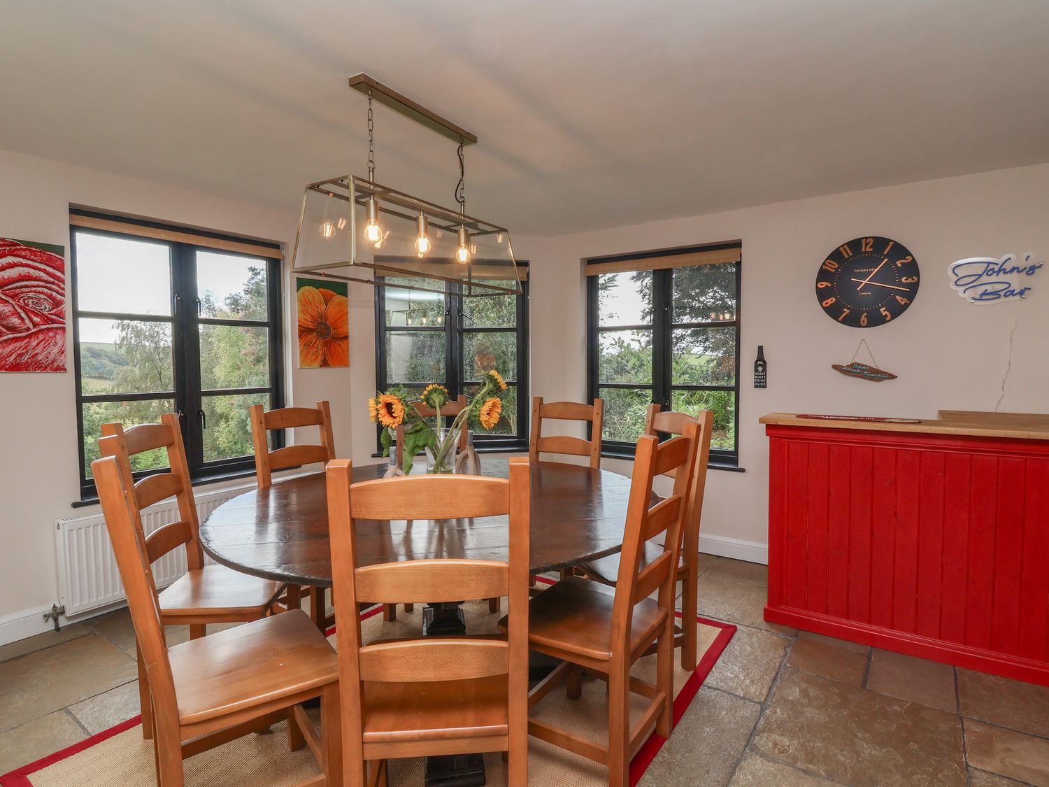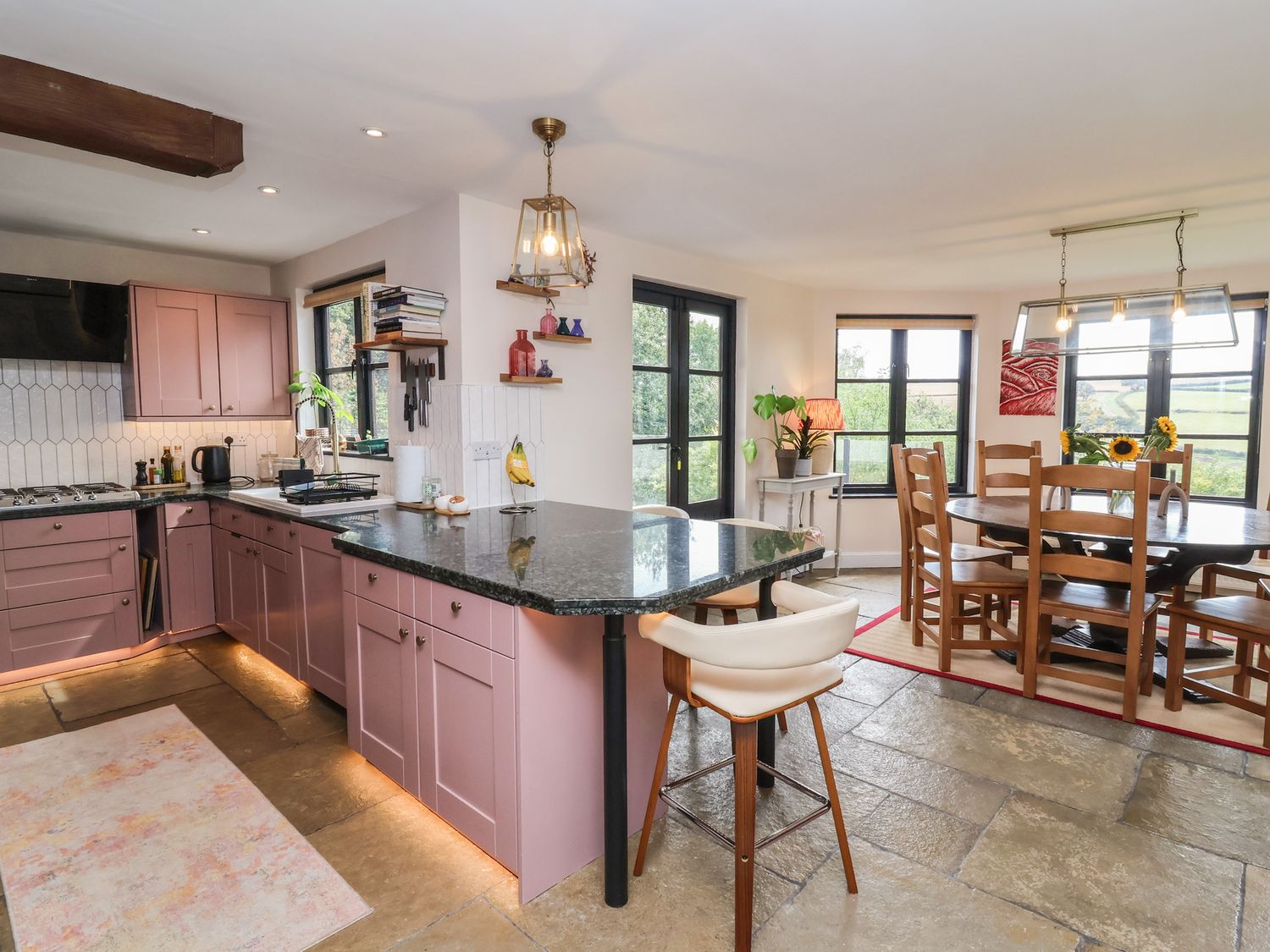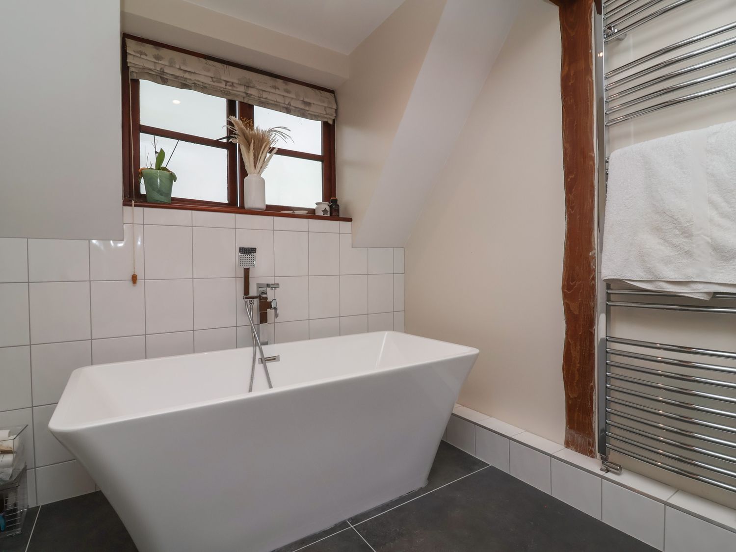 be twin on request), 1 x king-size with en-suite with freestanding bath, handheld shower, walk-in shower, heated towel rail, double basin, and WC, 1 x double, 1 x twin, 1 x single. Bathroom with bath, walk-in shower, basin, heated towel rail, and WC. Cloakroom with basin and WC. Kitchen/diner with Smart TV. Utility. Sitting room with woodburning stove and pull-down projector complete with Amazon Fire Stick and sound from Bluetooth speakers. Games room with a selection of games, books and table football. South facing garden and terrace with far-reaching countryside views"