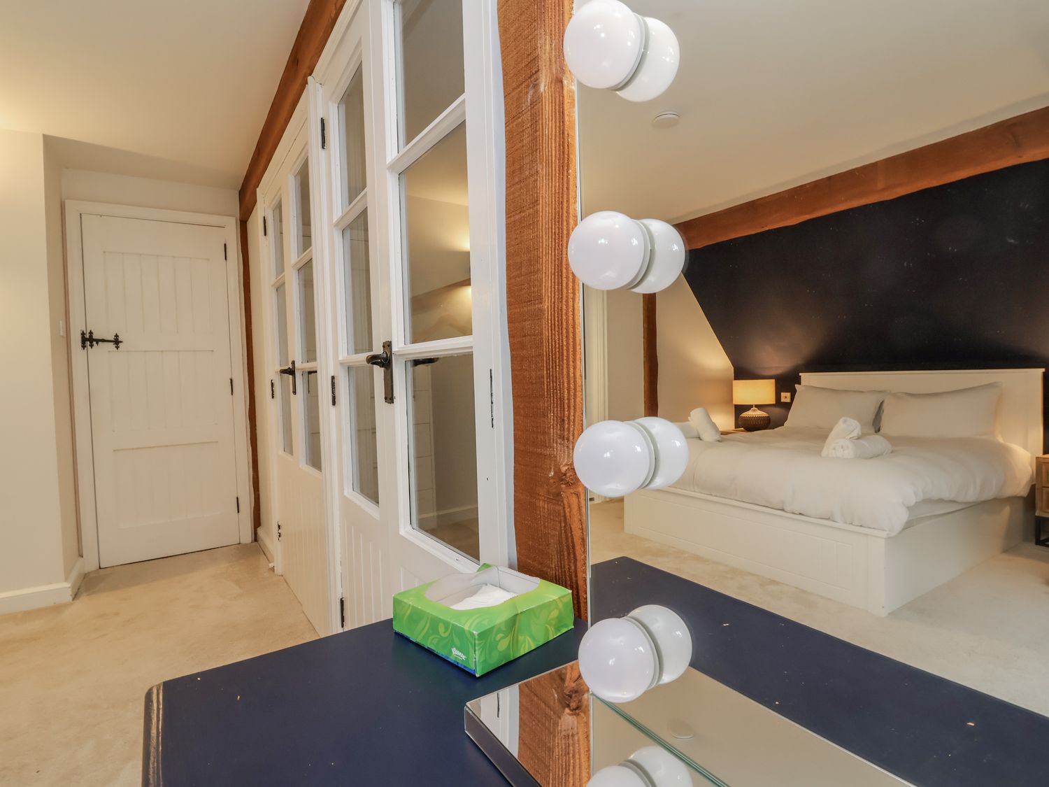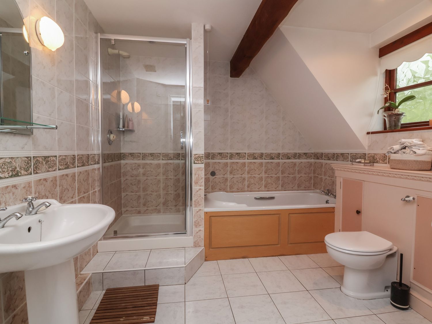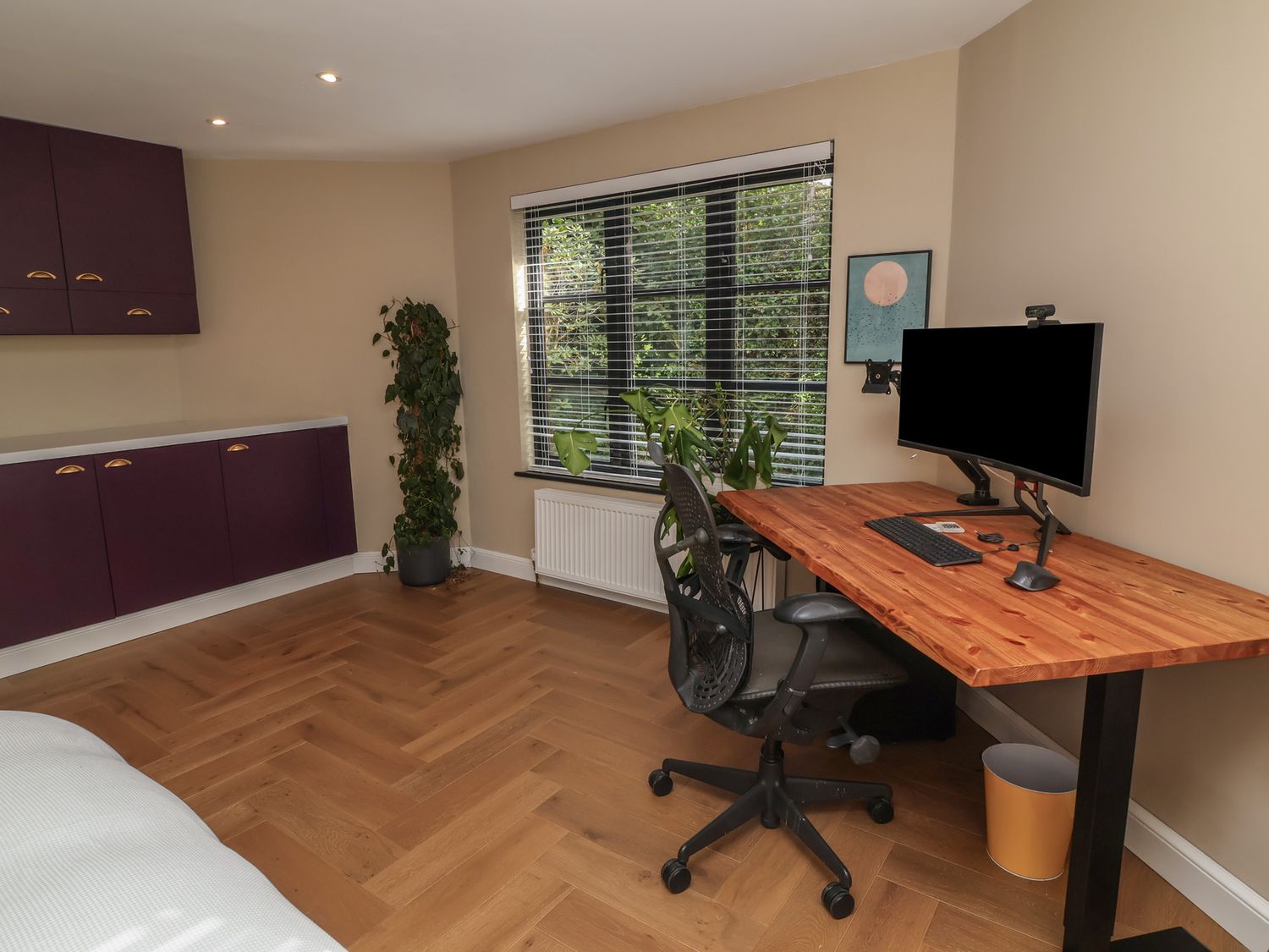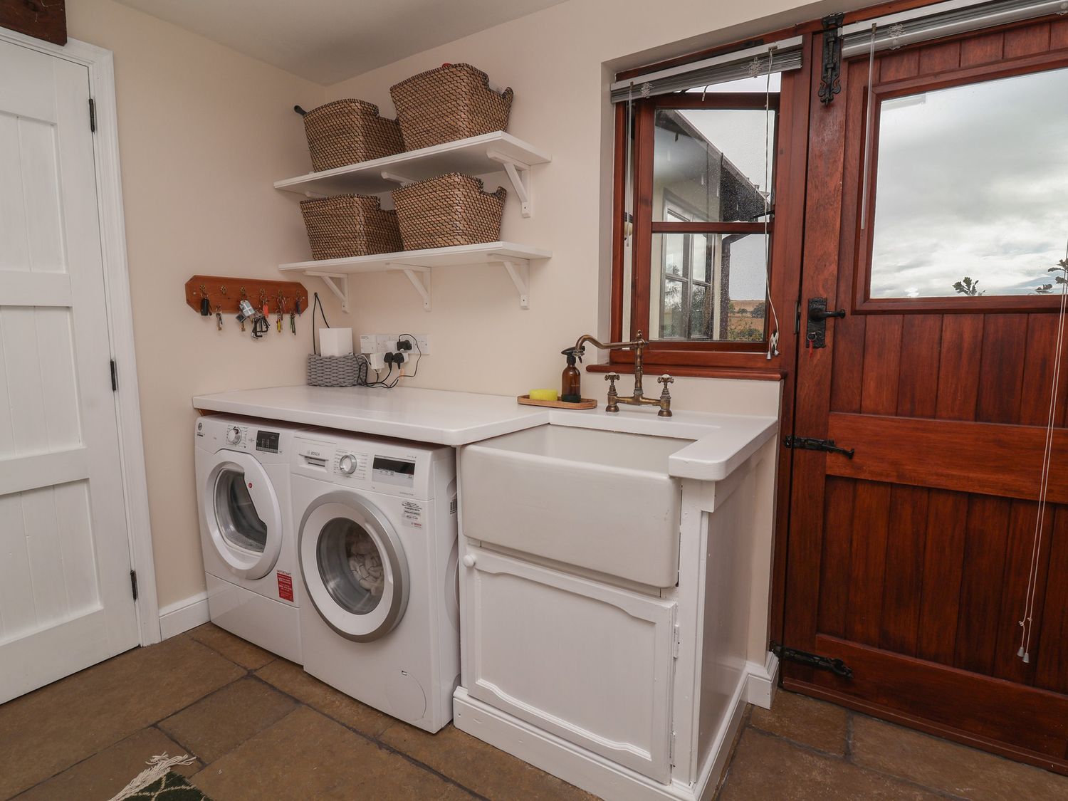 be twin on request), 1 x king-size with en-suite with freestanding bath, handheld shower, walk-in shower, heated towel rail, double basin, and WC, 1 x double, 1 x twin, 1 x single. Bathroom with bath, walk-in shower, basin, heated towel rail, and WC. Cloakroom with basin and WC. Kitchen/diner with Smart TV. Utility. Sitting room with woodburning stove and pull-down projector complete with Amazon Fire Stick and sound from Bluetooth speakers. Games room with a selection of games, books and table football. South facing garden and terrace with far-reaching countryside views"