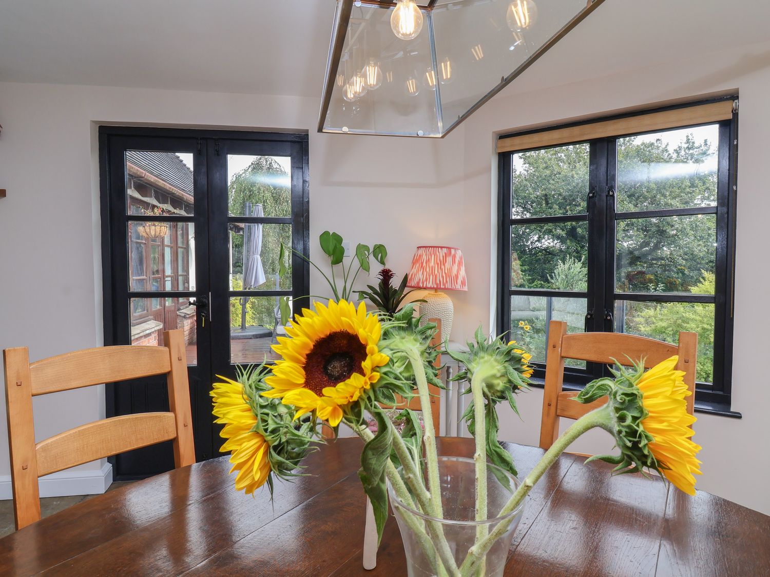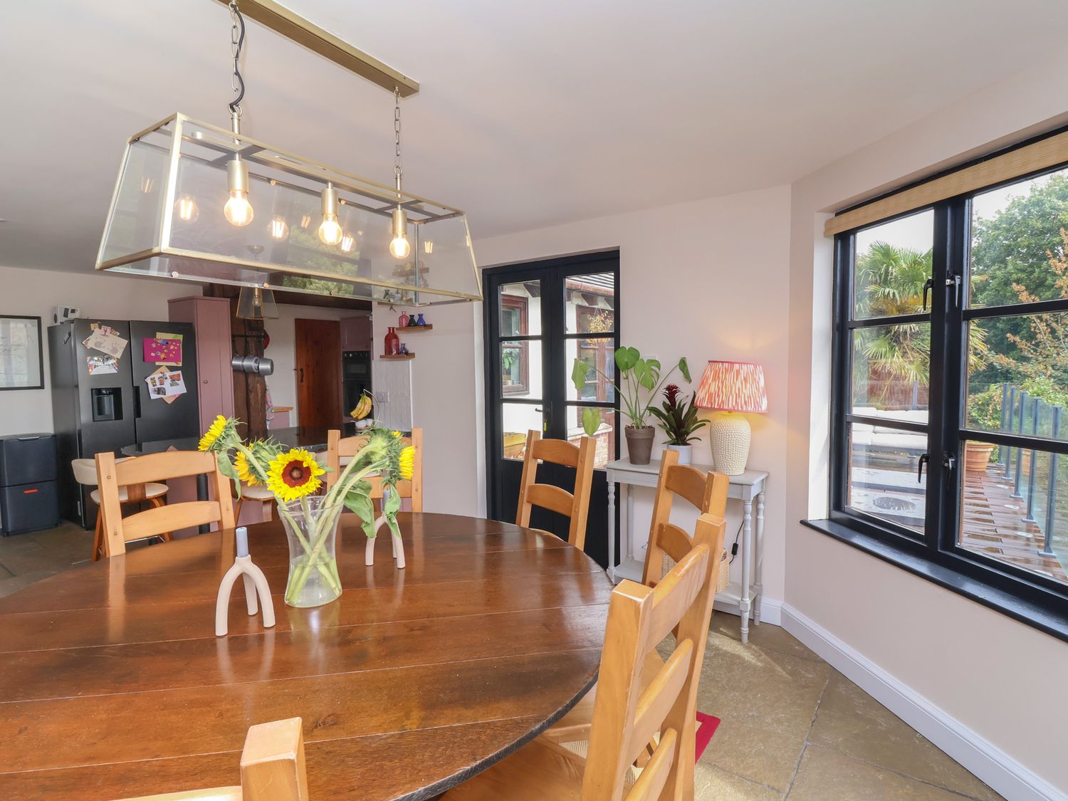 "Hedgerose, a house consists of a kitchen/diner with electric oven, gas hob, microwave, fridge/freezer, dishwasher, air fryer, dining seating, and Smart TV, a utility with washing machine and fridge, a sitting room with woodburning stove and pull-down projector with speakers, and a game room with books, and games. The bedrooms consist of a ground-floor super-king-size (zip/link, can be twin on request), king-size with en-suite bathroom, double, twin, and single, serviced by a bathroom and cloakroom. You'll find a shop in 2.6 miles and a pub in 0.1 miles. WiFi, fuel, power, starter pack for woodburning stove, bed linen, and towels included in the rent. Outside, there is a multi-level enclosed garden with decking, lawn, patio, gravelled area, furniture, and fire-pit, and private driveway parking for six cars. Travel cot and highchair available. Two well-behaved dogs welcome. Sorry, no smoking. Whatever the weather, a wonderful stay awaits at Hedgerose. Note: Good housekeeping bond of 550 GBP."