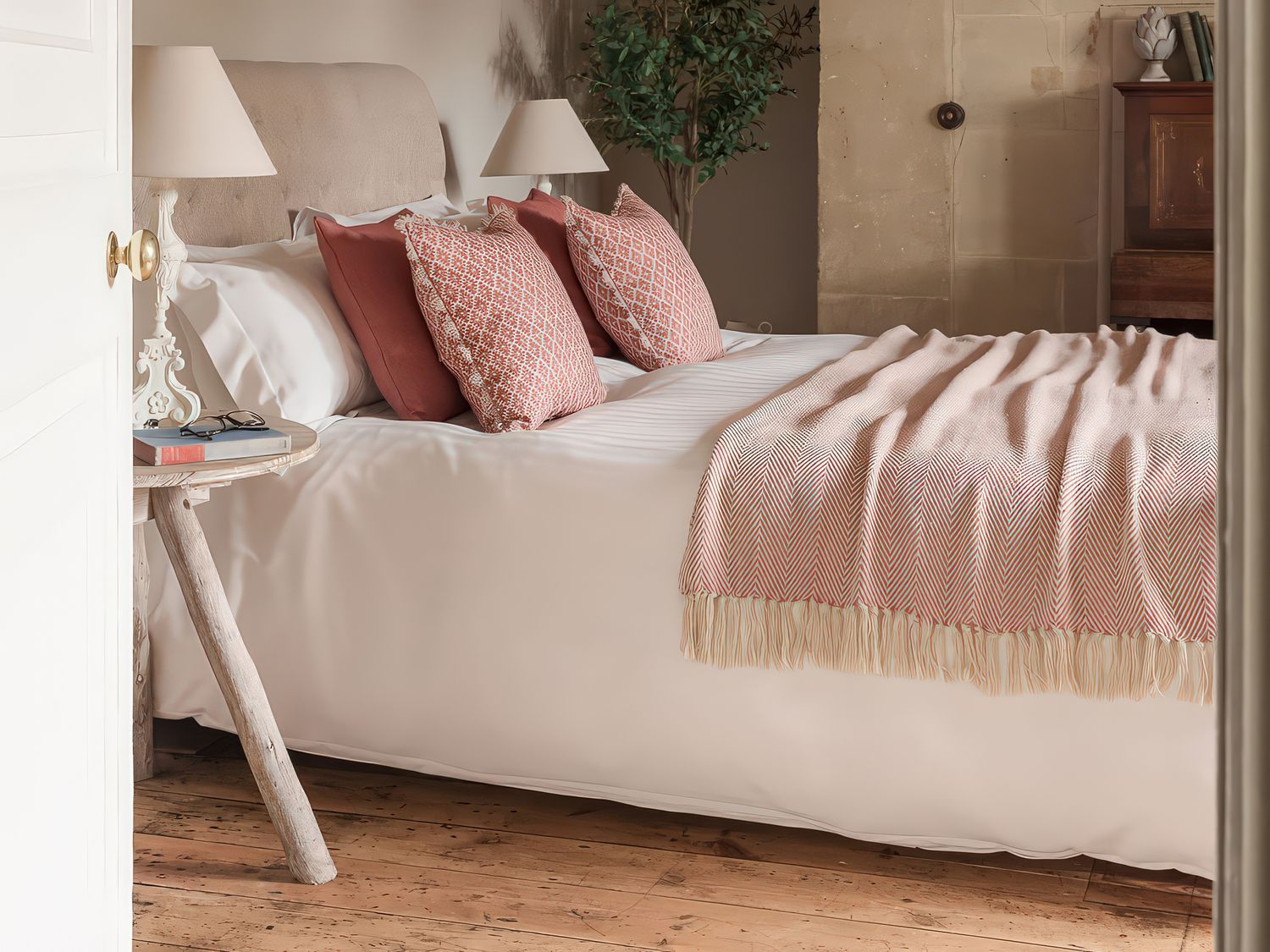 "Eight bedrooms:1 x super-king-size, 1 x ground-floor king-size, 1 x double, 1 x second-floor double, 1 x twin (zip/link, can be super-king-size on request), 1 x second-floor twin with cabin beds, 1 x second-floor triple, 1 x triple bunk (double below, single above). Shower room with walk-in shower, basin and WC. Shower room with walk-in shower. Ground-floor shower room with walk-in shower, basin and WC. Bathroom with bath, handheld shower, basin and WC. Second-floor bathroom with roll-top bath, handheld shower, basin and WC. Cloakroom. Kitchen. Utility. Dining room with electric stove-effect fire. Sitting room with woodburning stove"