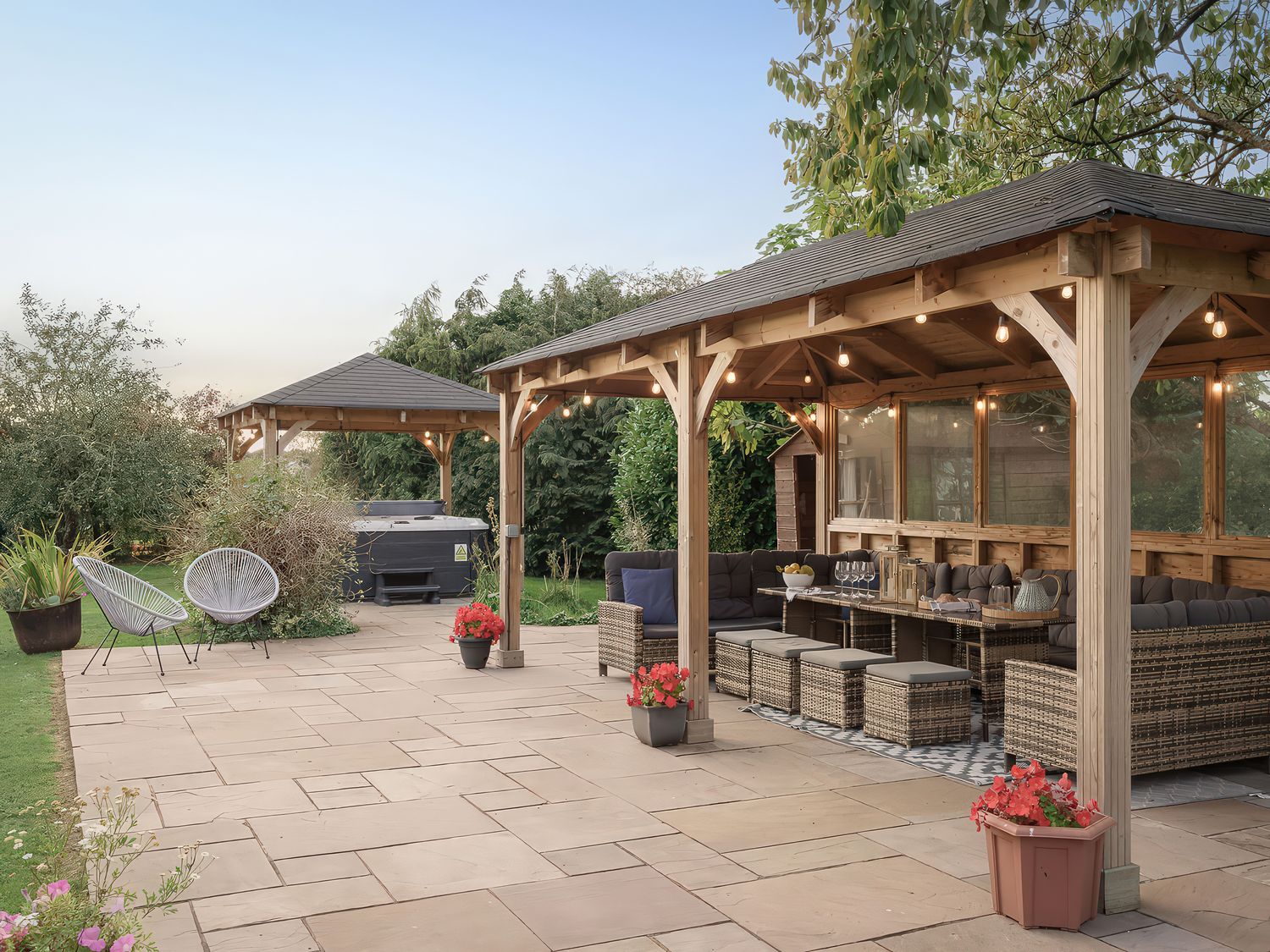 "The living areas consist of; a kitchen with electric range cooker, oven and hob, microwave, fridge/freezer, wine cooler and coffee machine. A utility with washing machine and tumble dryer. Dining room with seating for sixteen and an electric stove-effect fire and a sitting room with TV and woodburning stove. The bedrooms consist of super-king-size, ground-floor king-size, double, second-floor double, twin (zip/link, can be super-king on request), second-floor twin with cabin beds, second-floor triple and a triple bunk (double below, single above), served by three shower rooms, a bathroom and a cloakroom. Outside is an enclosed rear garden with lawn, patio, furniture and hot tub, as well as off-road parking for eight. Please note that two well-behaved dogs are welcome but sorry, no smoking. EV charging available. WiFi, fuel, power, bed linen and towels are all included in the price. Please note: This property can only accommodate a minimum of 3 nights."