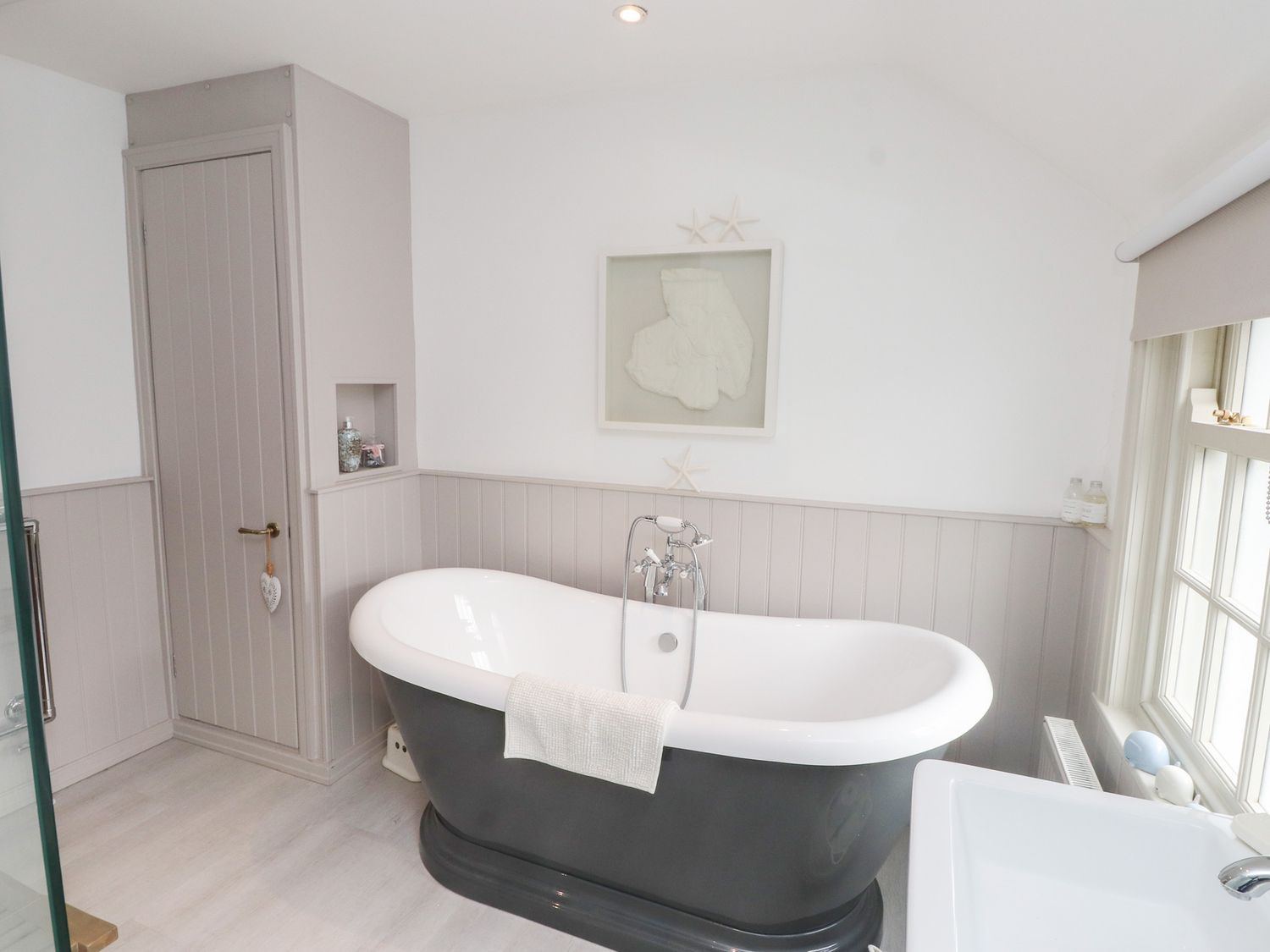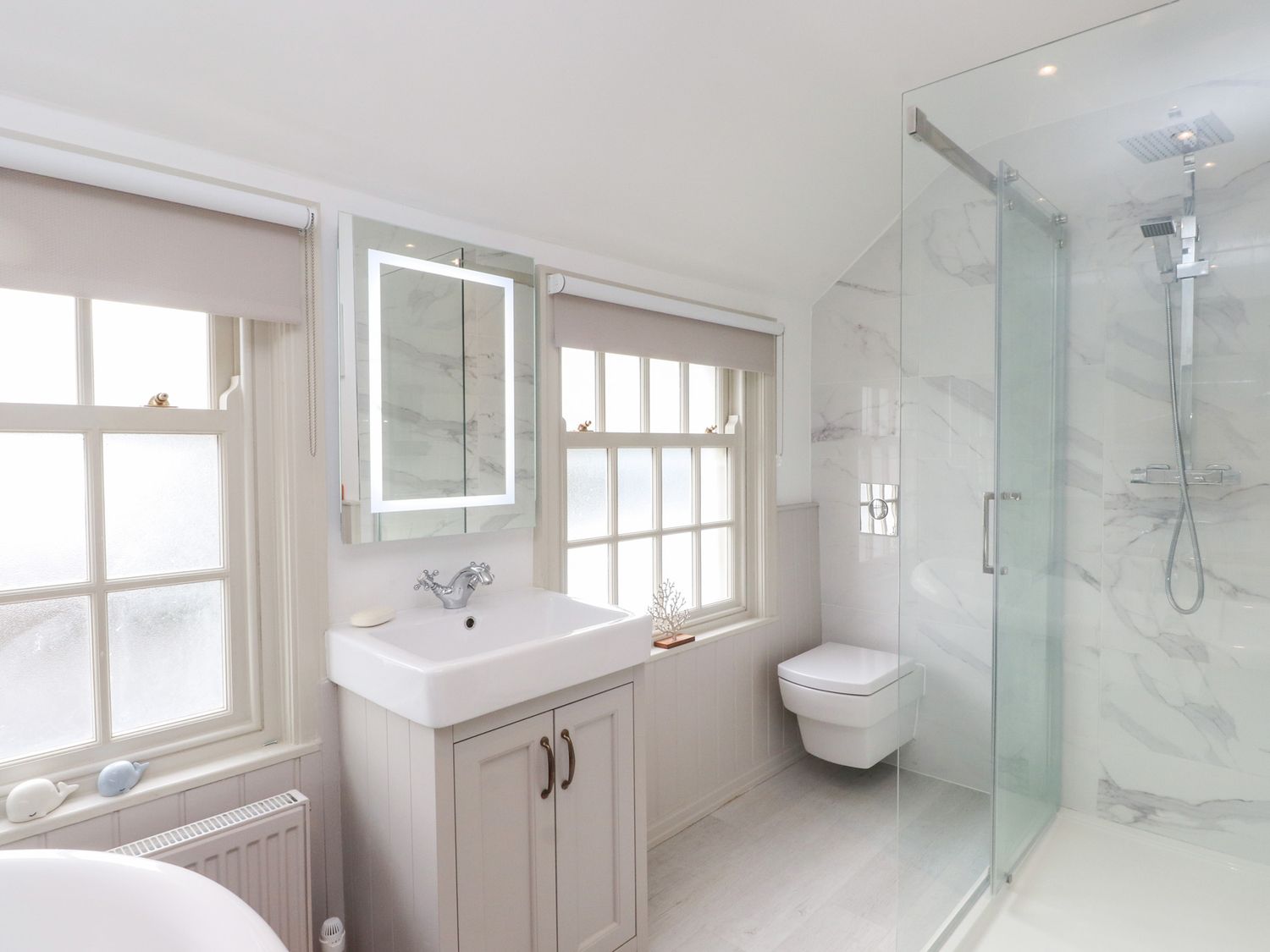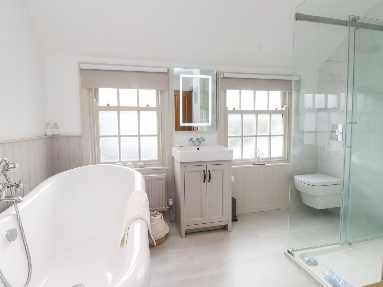 "Three bedrooms: 2 x double, 1 x twin. Ground-floor shower room with walk-in shower, basin and WC. Bathroom with roll-top bath, walk-in shower, basin and WC. Kitchen/diner. Sitting room with multi fuel stove"