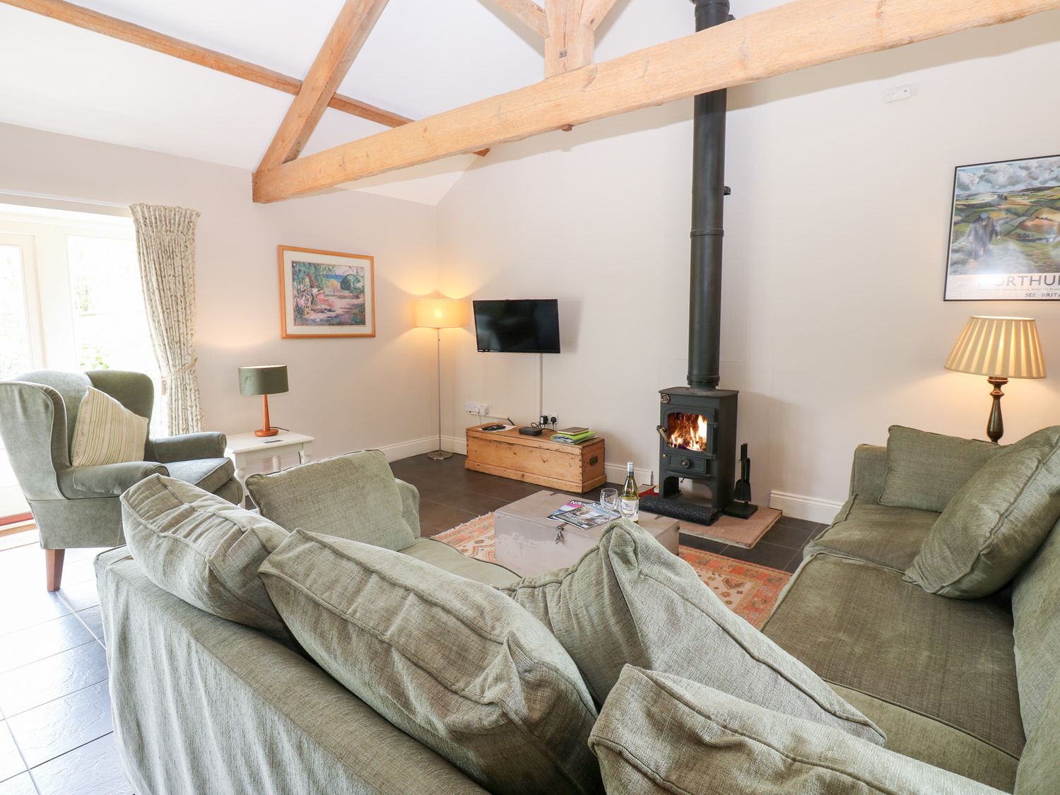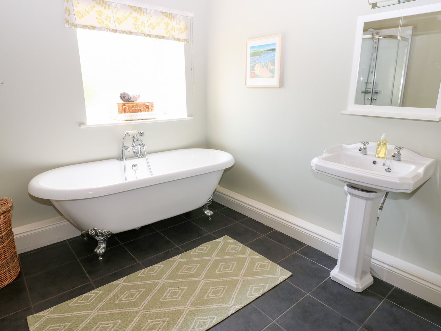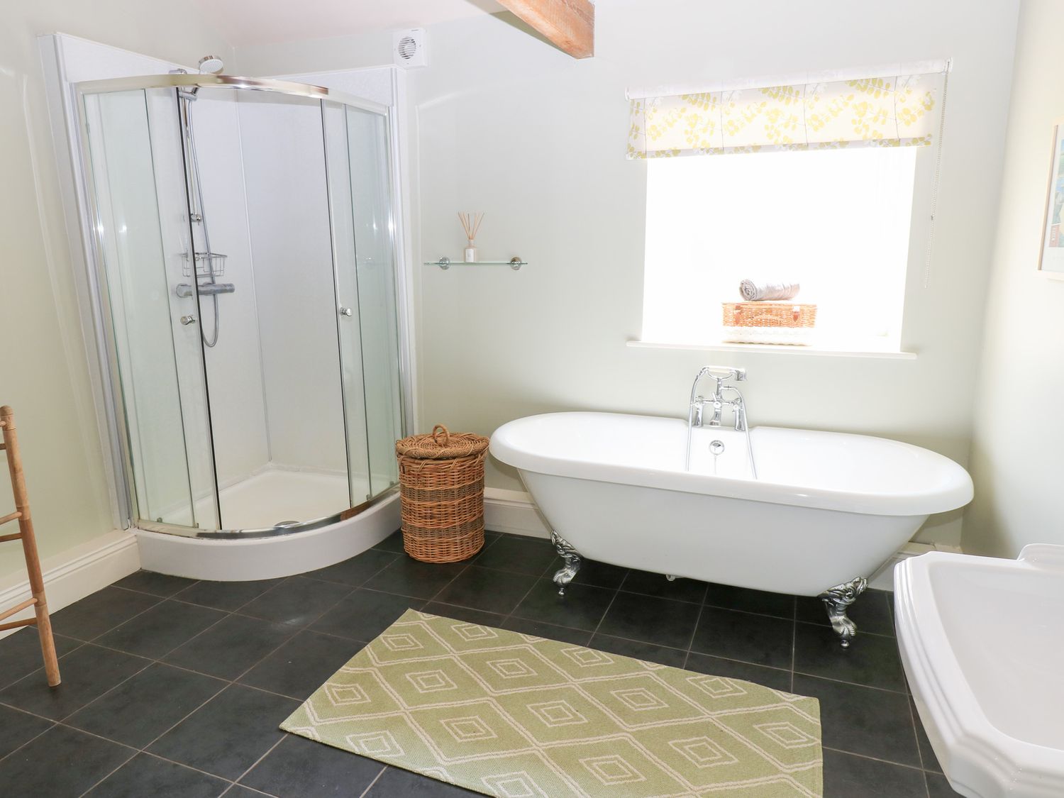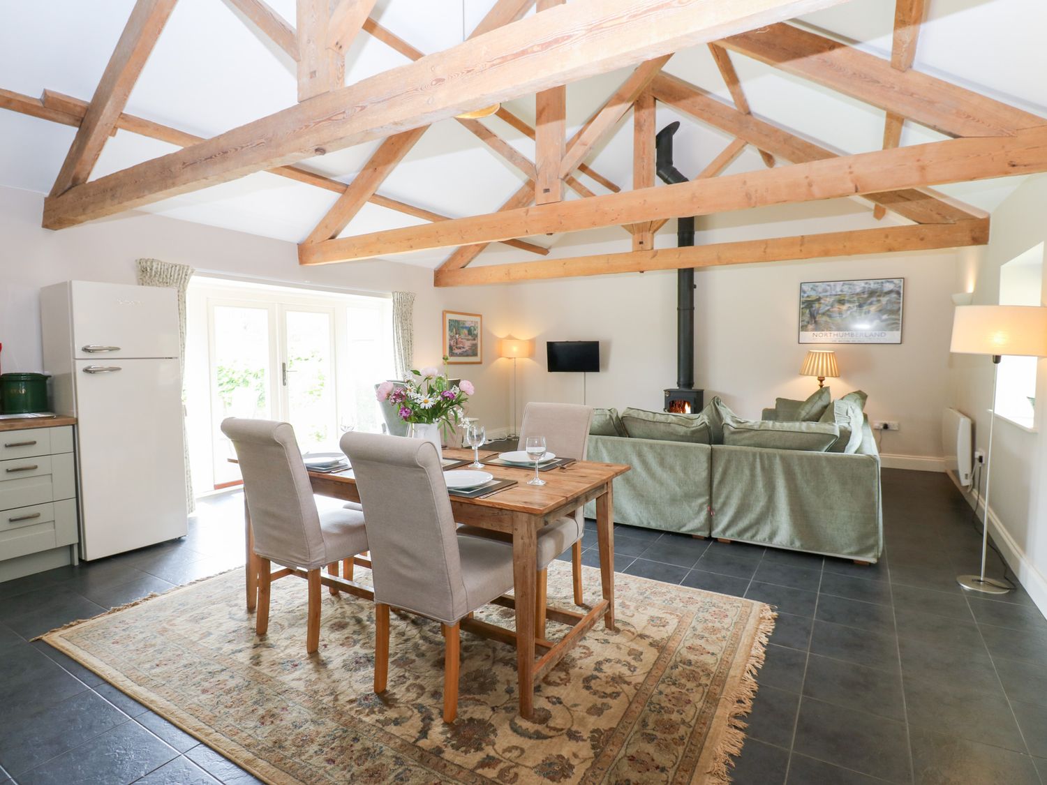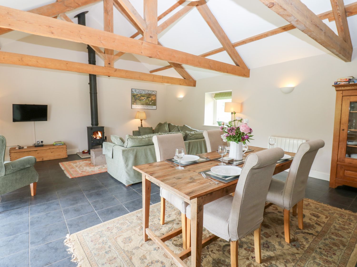 " All ground floor. Two bedrooms: 1 x king-size double, 1 x twin. Bathroom with free standing bath, separate shower, basin and WC. Open plan living area with kitchen, dining area and sitting area with woodburner."