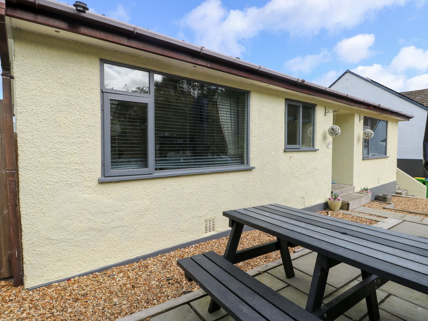 "The living areas in the property include an open-plan kitchen/diner and sitting room with an electric oven and hob, microwave, fridge/freezer, dishwasher, wine cooler, woodburning stove and Smart TV, and an external utility with a washer/dryer. The bedrooms are set on the ground-floor, consisting of a king-size with en-suite shower, a double and a twin room (zip-link to king-size bed on request), both with a Smart TV, along with a ground-floor bathroom. Outside there is a front patio, an enclosed rear garden with artificial lawn, a terrace with a sunken hot tub, and a terrace with furniture, and a private driveway for one car. Within 0.6 miles you will find a shop, and within 0.3 miles you will find a pub and the beach. Please note that one well-behaved dog is welcomed and that this is a non-smoking property. WiFi, fuel, power, bed linen and towels are included in the price. Daisy Cottage is a stunning Anglesey dwelling. Note: The front garden is not enclosed. Note: There are steps up to the property and terrace. Note: The bunk beds are now 2 singles. "