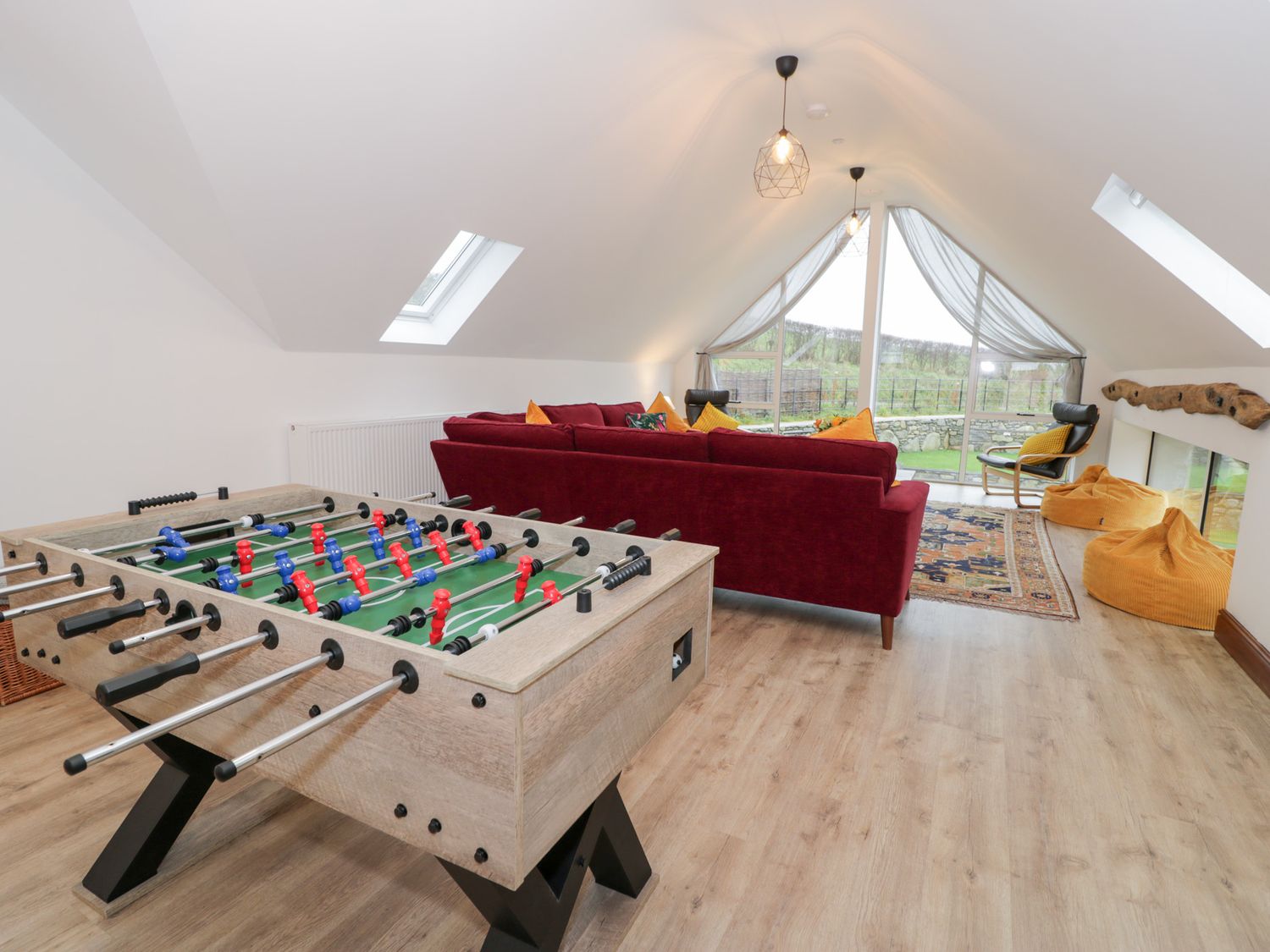 "Please note: This property accepts 7 night stays only during peak seasons,this will include 29-03-2025 to 01-11-2025, 28-03-2026 to 31-10-2026, and 27-03-2027 to 30-10-2027 .Six bedrooms:1 x ground-floor accessible bedroom with 1 x spacious super king-size bedÔÇöcreated by joining two singles. Smart TV and en-suite wet room with walk-in shower, basin, heated towel rail, and WC and working space. 1 x ground-floor double with en-suite walk-in shower, basin, heated towel rail, and WC. 1 x family room with 1 x spacious super king-size bedÔÇöcreated by joining two singles and single with Smart TV and en-suite with walk-in shower, basin, heated towel rail, and WC. 1 x spacious super king-size bedÔÇöcreated by joining two singles, en-suite with walk-in shower, basin, heated towel rail, and WC. 1 x double brass bed with en-suite with walk-in shower, basin, heated towel rail, and WC; 1 x family room with 1 x spacious super king-size bedÔÇöcreated by joining two singles and single with Smart TV. Bathroom with large bath and mountain views, walk-in shower, hand-held shower, basin, heated towel rail, WC. 2 x cloakroom with basin, heated towel rail and WC. 2 x utility with washing machine. Open-plan living space with kitchen, dining area and sitting area with woodburning stove. Additional kitchen/diner. Additional sitting room with woodburning stove. Snug/games room."
