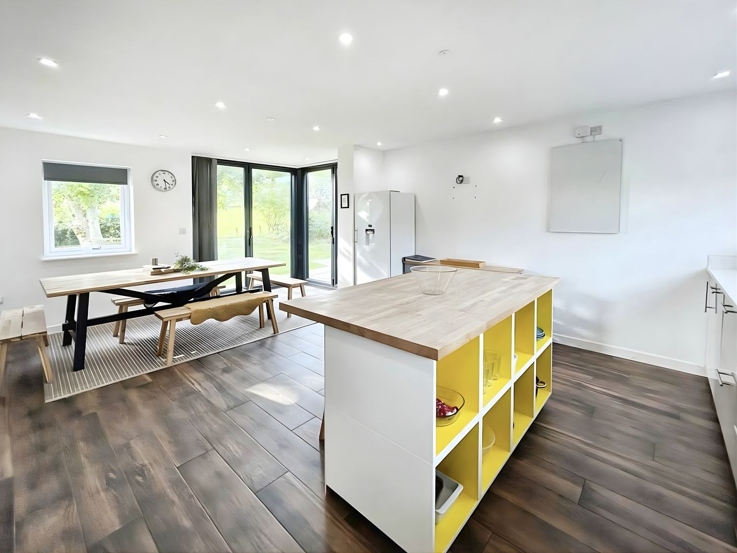 "Four bedrooms: 1 x double with freestanding bath, 1 x ground-floor double, 1 x double, 1 x bunk. Shower room with walk-in shower, basin and WC. Kitchen/diner. Utility. Sitting room woodburning stove"