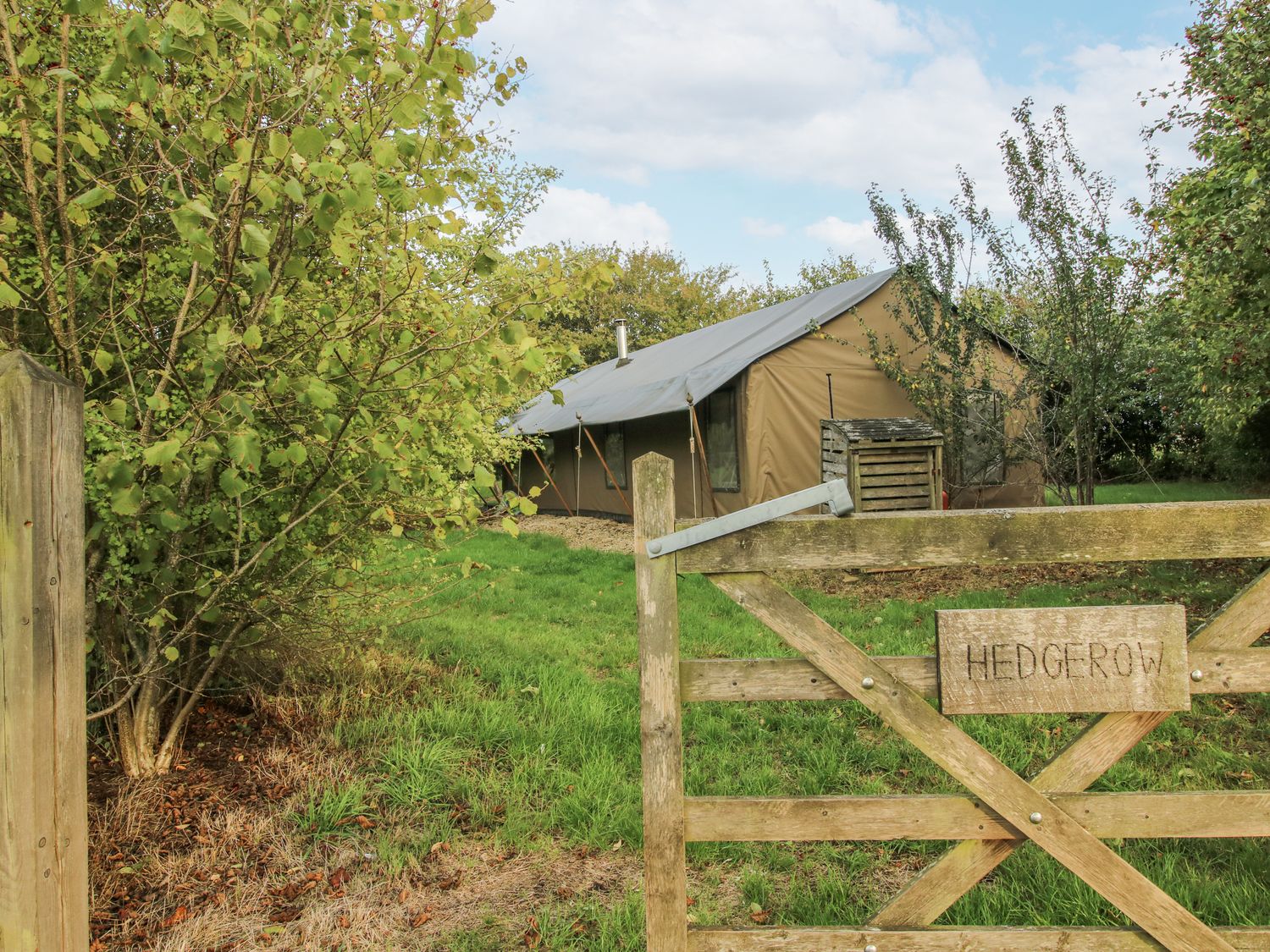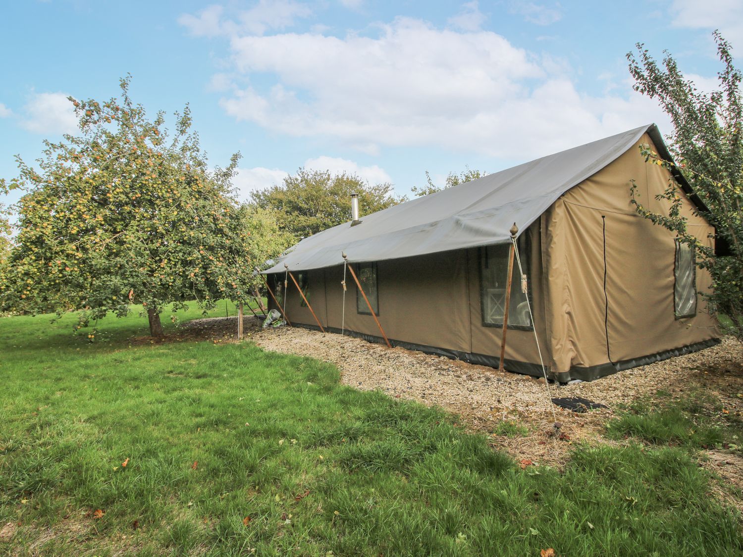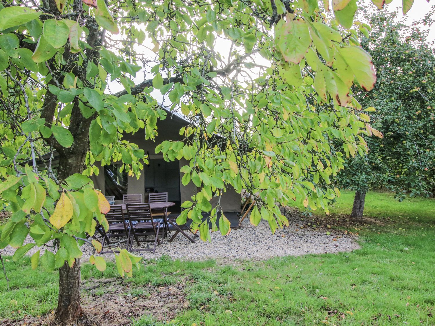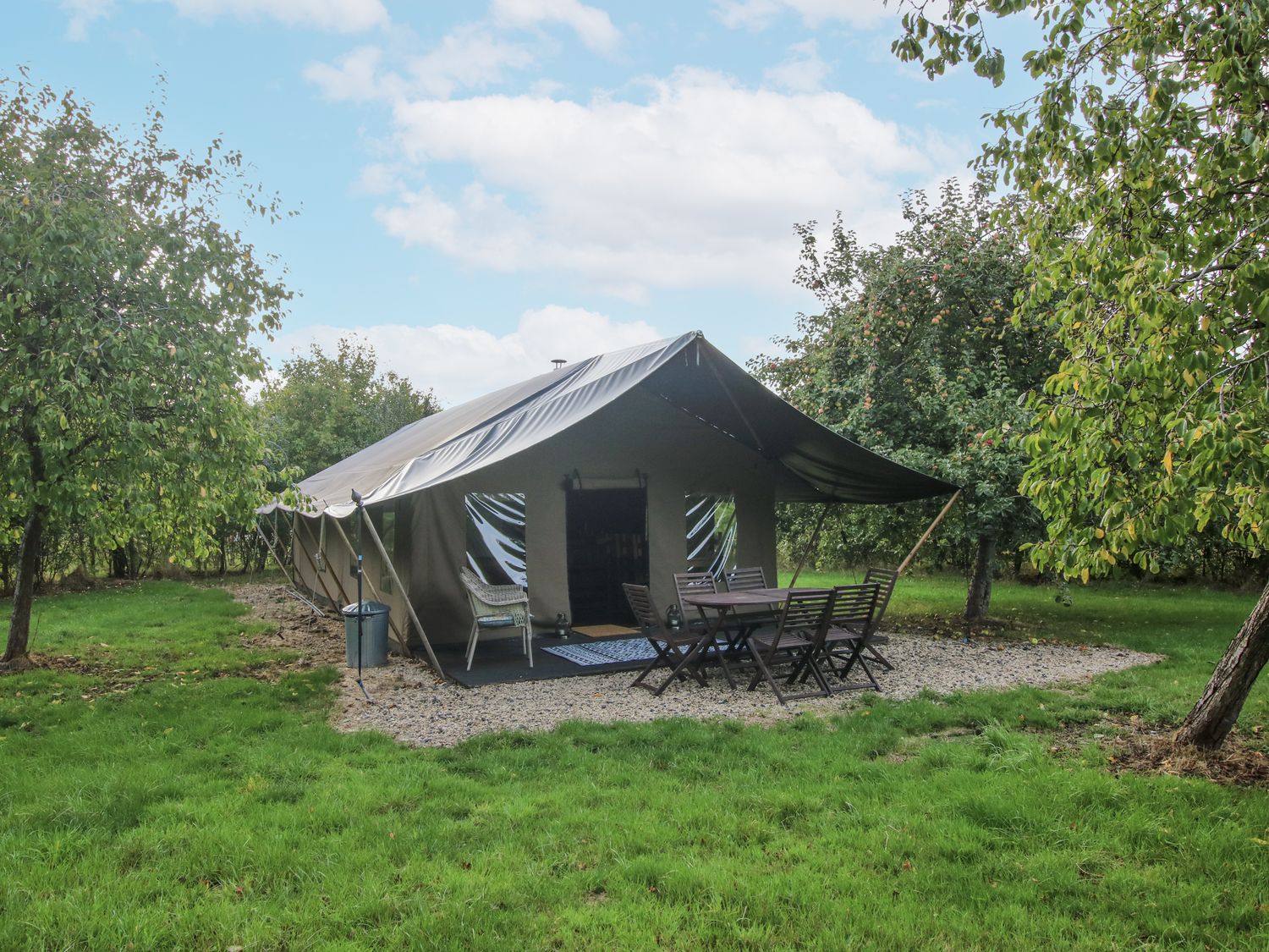 "Hedgerow, a single-storey off-grid safari tent, consists of a kitchen with wood-burning range cooker, kettle and a living/dining room with two sofas and dining seating for 8. There is a woodburner (logs, kindling and flamer starter pack) and the bedrooms consist of 1 x double, 1 x bunk bed, 1 x cupboard bed. There is a bathroom with bath, basin, and WC. WiFi, fuel, bed linen, and towels are included in the rent. Outside, there is an enclosed rear garden decking with lawn, furniture, barbecue, and hot tub (in 2026), and off-road parking for three cars. Two well-behaved dogs are welcome. Sorry, no smoking. Whatever the weather, a wonderful stay awaits at Pear Trees. Note: Additional Extras: Hot Tub (in 2026) -ú150 per stay, pizza oven with wood & utensils: -ú40/per stay, extra towel bundles: -ú20. Note: Early or Late checkout: -ú50. Note: No WiFi in this property. Note: Motorbikes are not allowed on the farm.. Note: Personal barbecues are permitted but must be raised off the ground and attended by an adult at all times. Note: No electric or gas barbecues allowed. Note: If making a fire, the fuel, logs and coal have to be purchased on site. Note: This property requires a Good Housekeeping Bond of -ú200."
