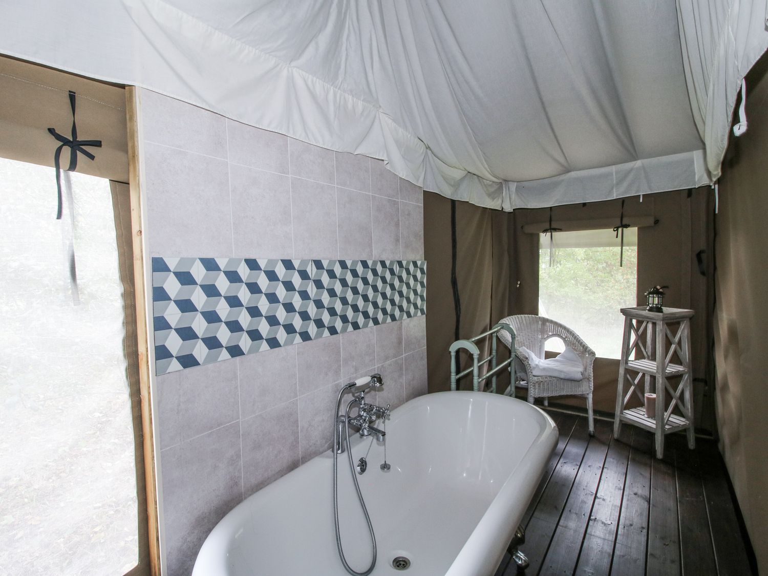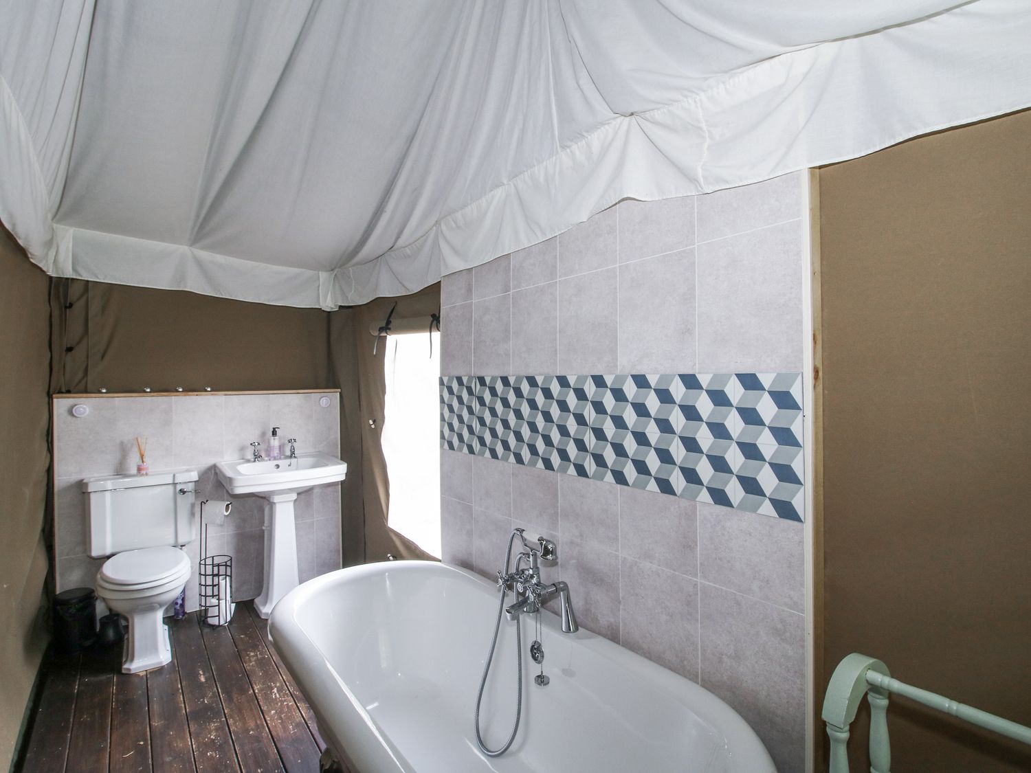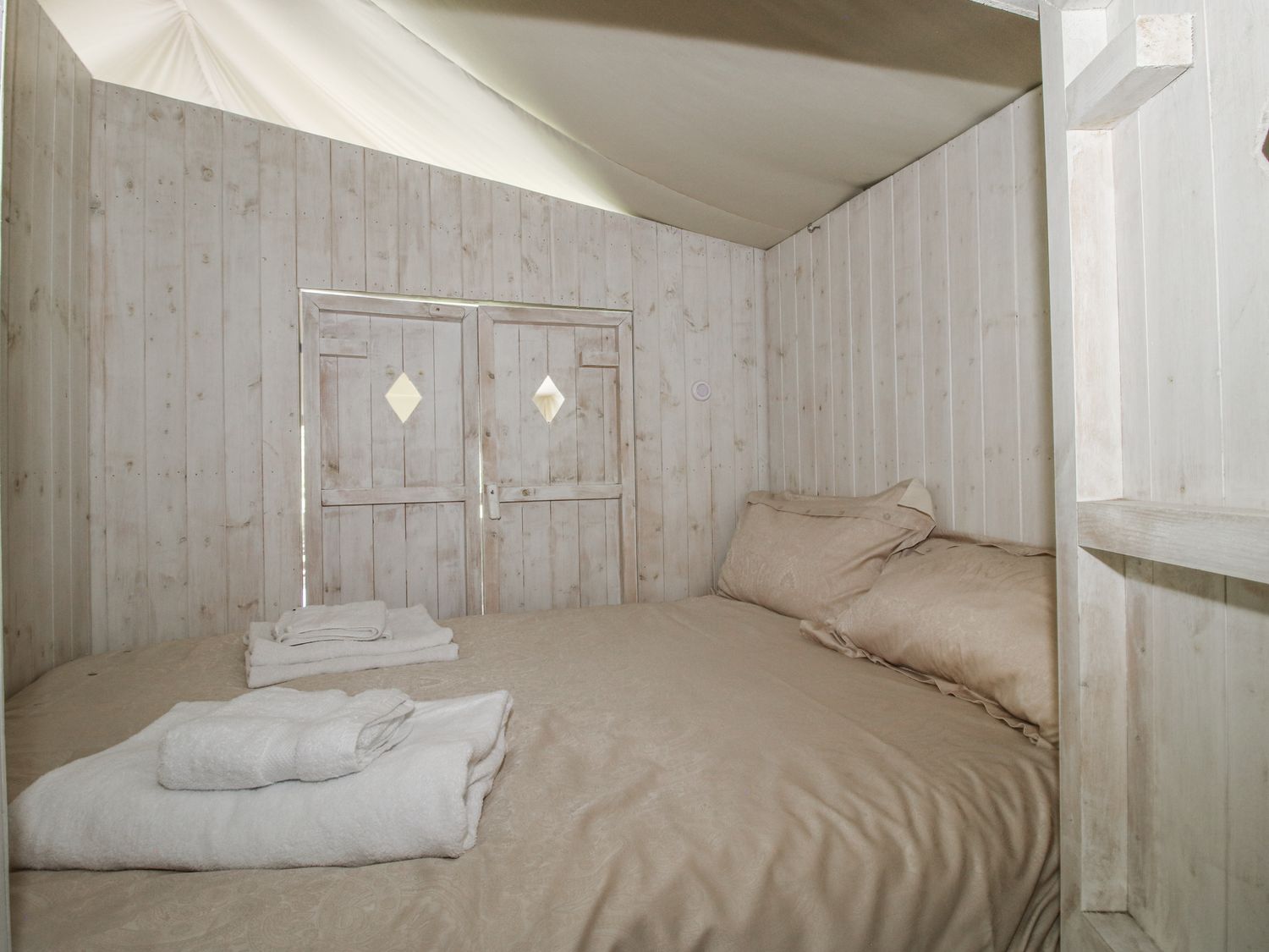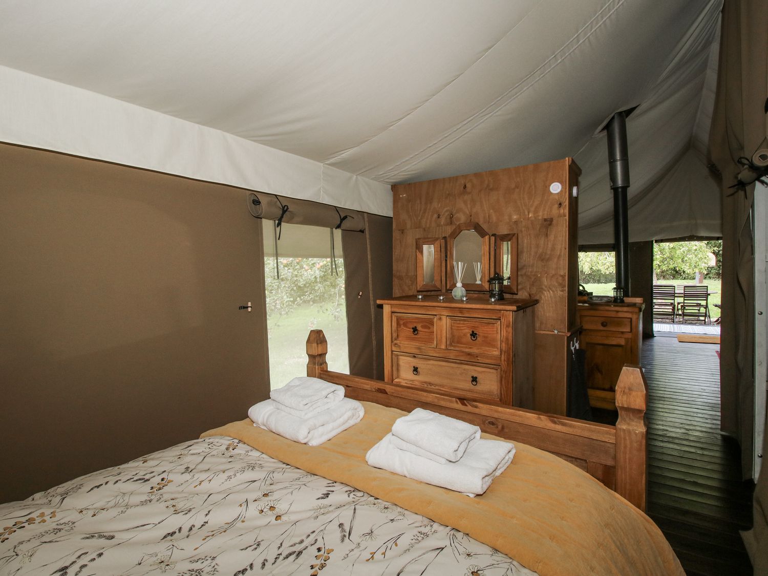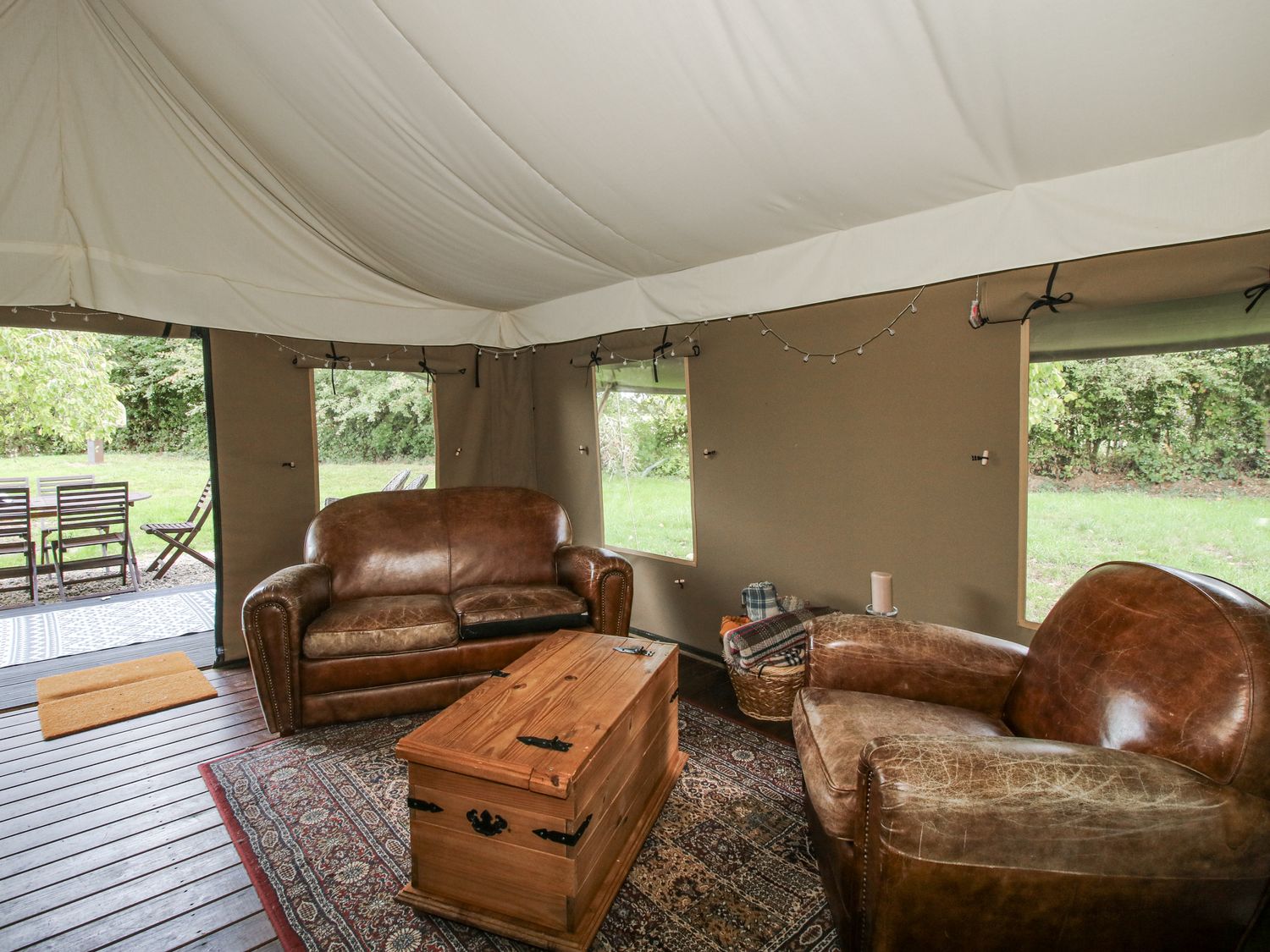 "Hedgerow, a single-storey off-grid safari tent, consists of a kitchen with wood-burning range cooker, kettle and a living/dining room with two sofas and dining seating for 8. There is a woodburner (logs, kindling and flamer starter pack) and the bedrooms consist of 1 x double, 1 x bunk bed, 1 x cupboard bed. There is a bathroom with bath, basin, and WC. WiFi, fuel, bed linen, and towels are included in the rent. Outside, there is an enclosed rear garden decking with lawn, furniture, barbecue, and hot tub (in 2026), and off-road parking for three cars. Two well-behaved dogs are welcome. Sorry, no smoking. Whatever the weather, a wonderful stay awaits at Pear Trees. Note: Additional Extras: Hot Tub (in 2026) -ú150 per stay, pizza oven with wood & utensils: -ú40/per stay, extra towel bundles: -ú20. Note: Early or Late checkout: -ú50. Note: No WiFi in this property. Note: Motorbikes are not allowed on the farm.. Note: Personal barbecues are permitted but must be raised off the ground and attended by an adult at all times. Note: No electric or gas barbecues allowed. Note: If making a fire, the fuel, logs and coal have to be purchased on site. Note: This property requires a Good Housekeeping Bond of -ú200."