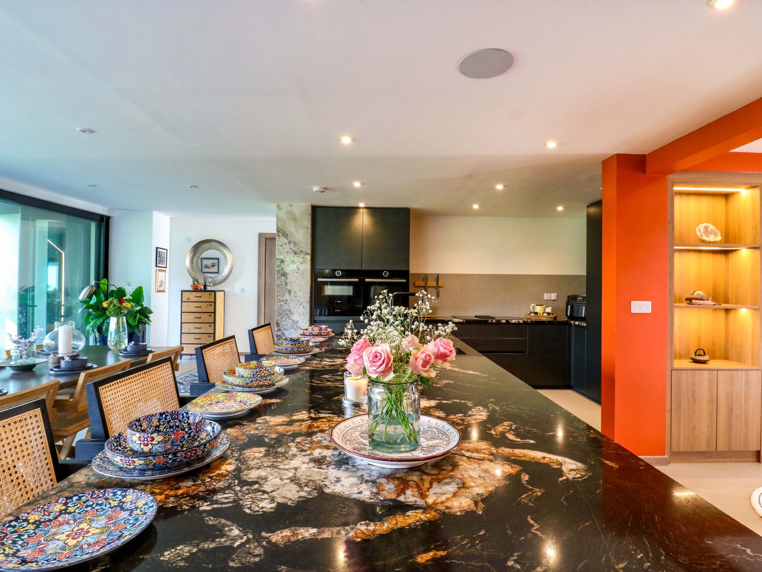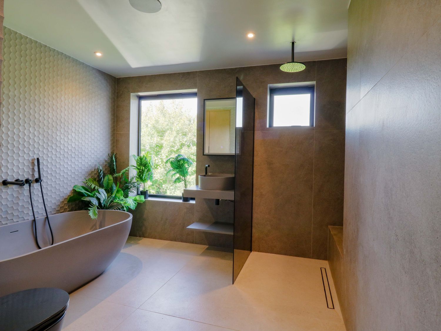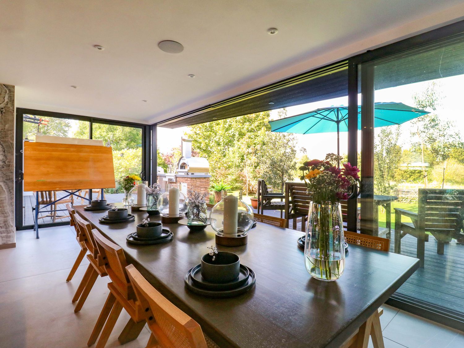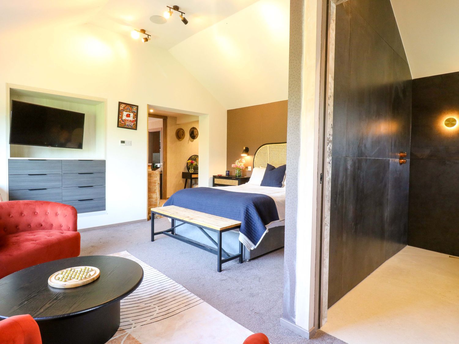 "Six bedrooms: 1 x king-size with Smart TV and en-suite with walk-in shower, basin, bidet, and WC, 1 x double with en-suite with walk-in shower and basin and WC, 2 x double, 2 x ground-floor double with en-suite with walk-in shower, basin and WC. Bathroom with freestanding bath, walk-in shower, basin, heated towel rail, WC. Bathroom with bath, basin and WC. Kitchen/diner. Kitchen. Utility. Sitting room. Gym room. 2 x cloakroom with basin and WC. Study. Cinema room with electric fire. Bar. Outdoor kitchen"