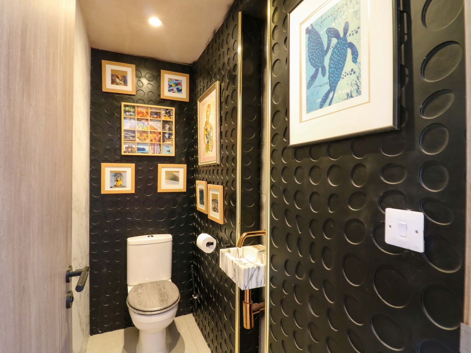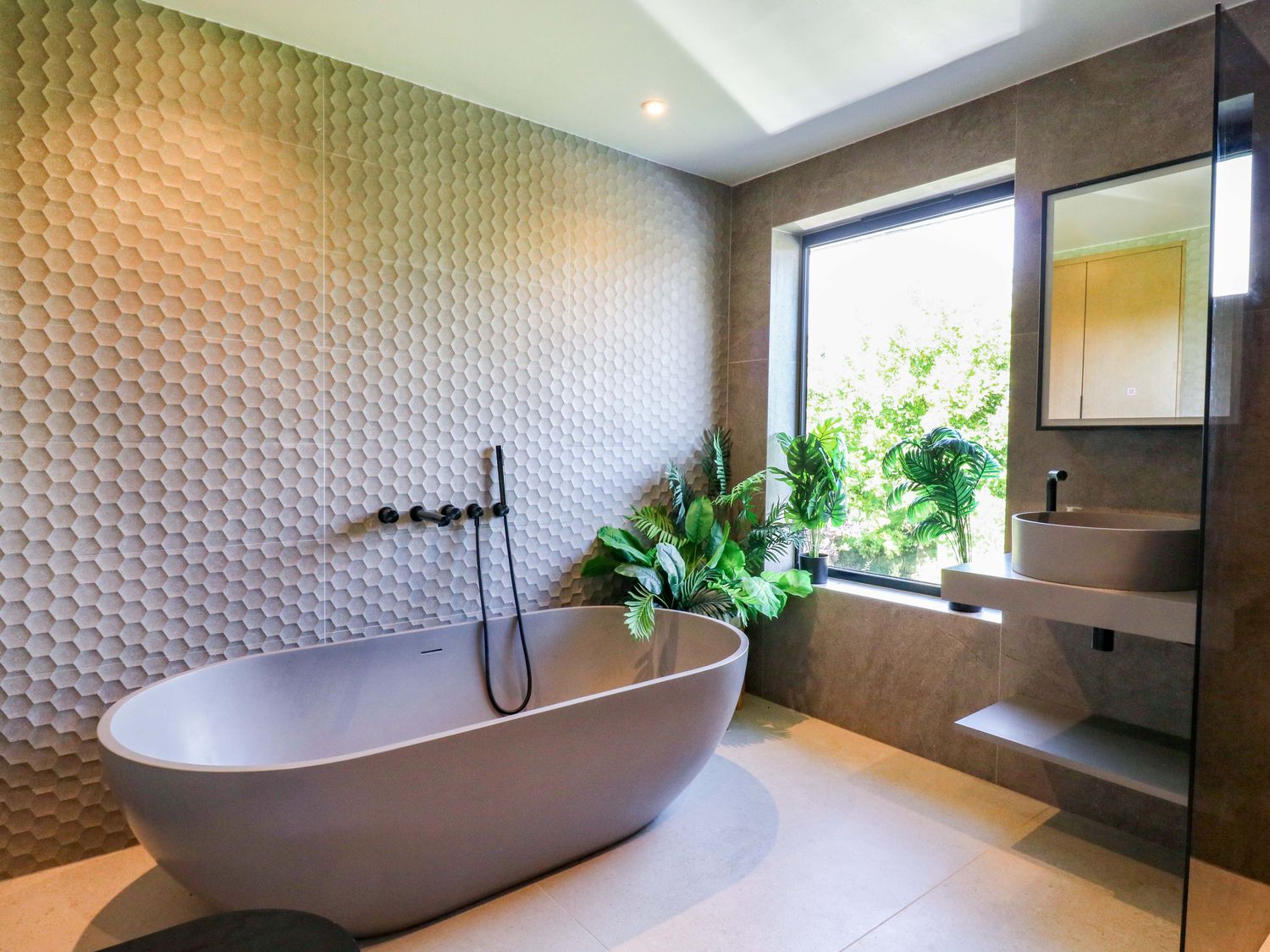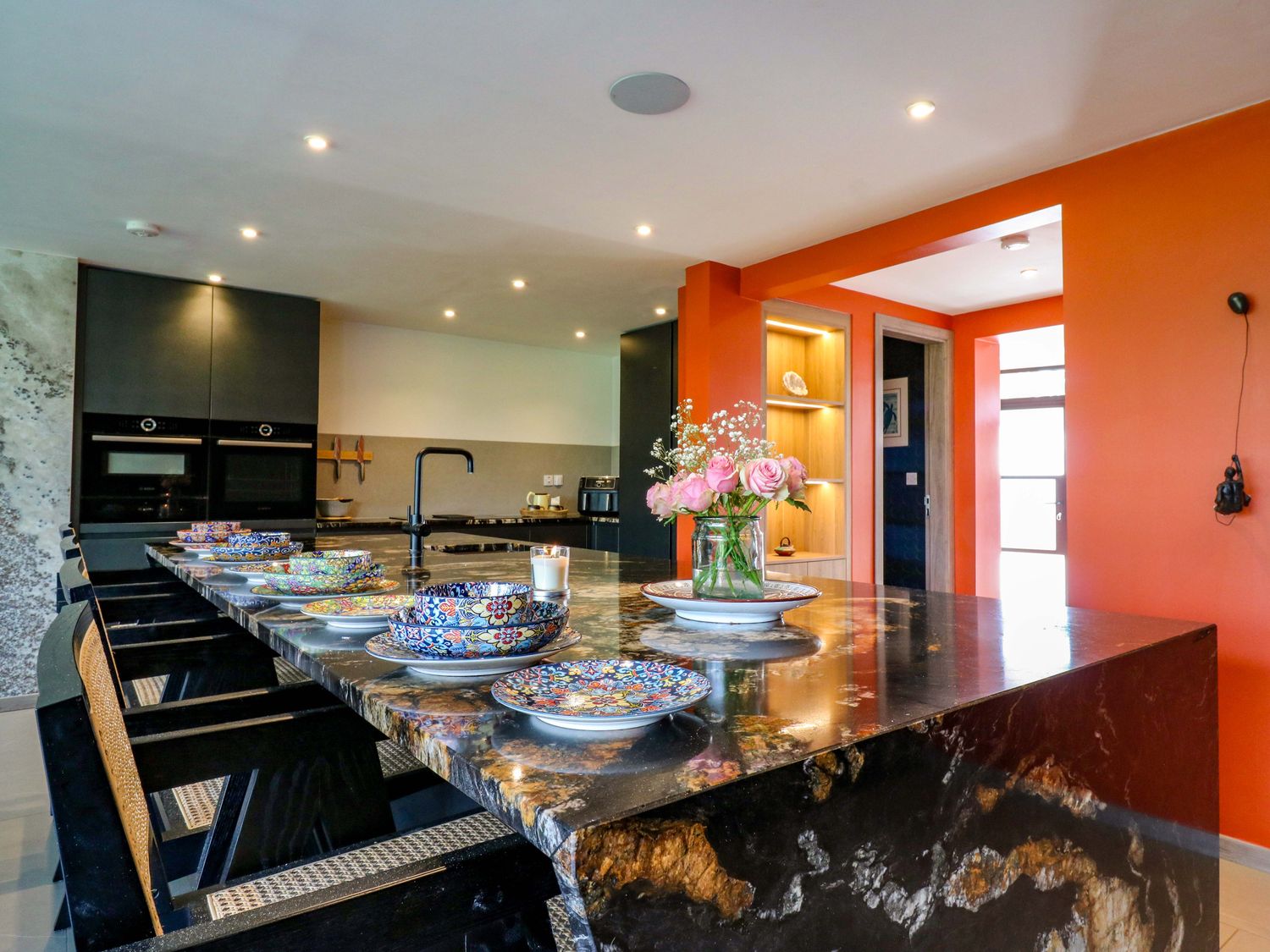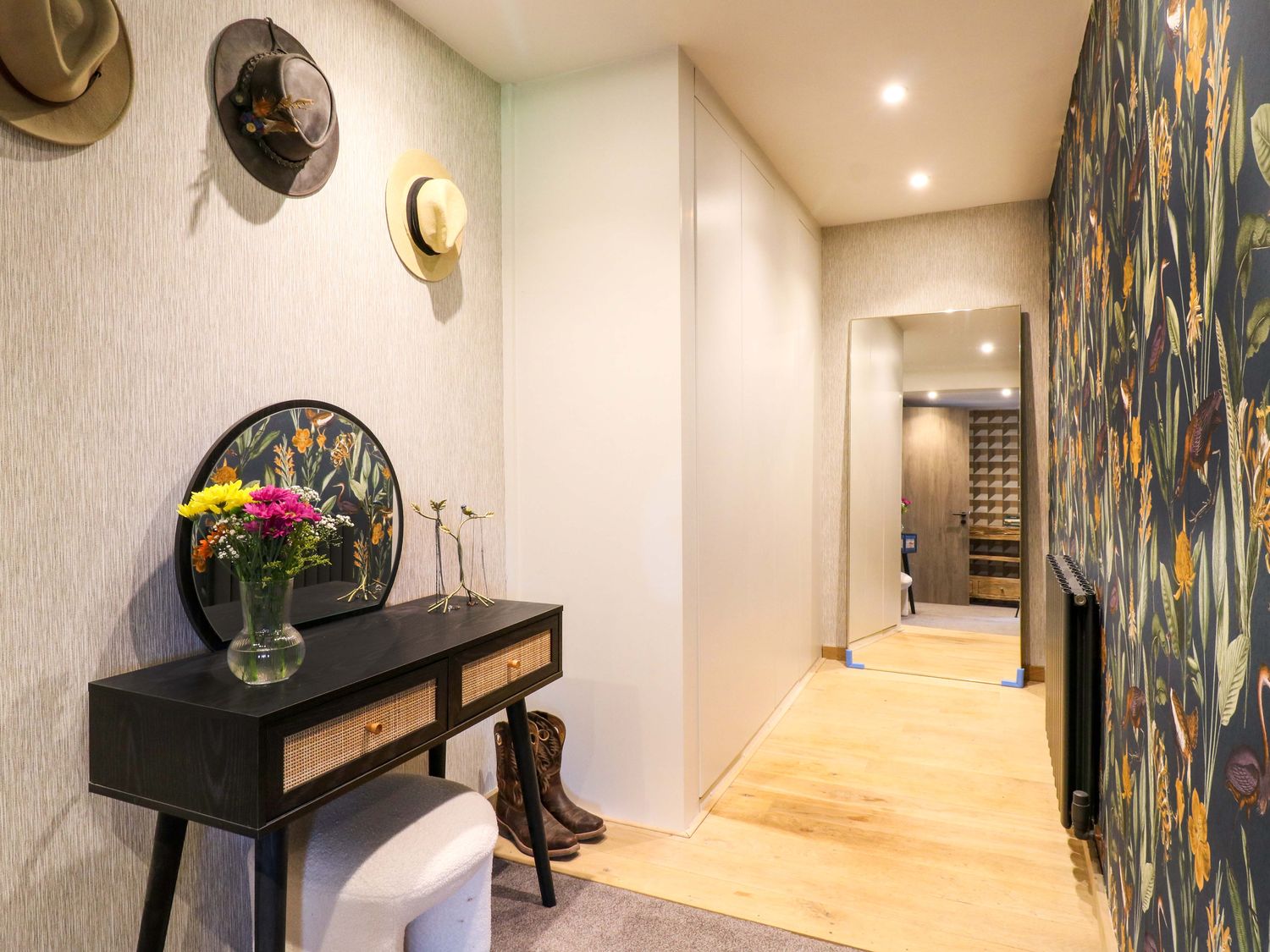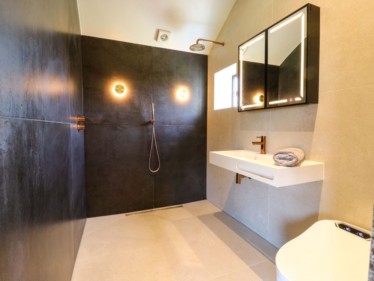 "Six bedrooms: 1 x king-size with Smart TV and en-suite with walk-in shower, basin, bidet, and WC, 1 x double with en-suite with walk-in shower and basin and WC, 2 x double, 2 x ground-floor double with en-suite with walk-in shower, basin and WC. Bathroom with freestanding bath, walk-in shower, basin, heated towel rail, WC. Bathroom with bath, basin and WC. Kitchen/diner. Kitchen. Utility. Sitting room. Gym room. 2 x cloakroom with basin and WC. Study. Cinema room with electric fire. Bar. Outdoor kitchen"