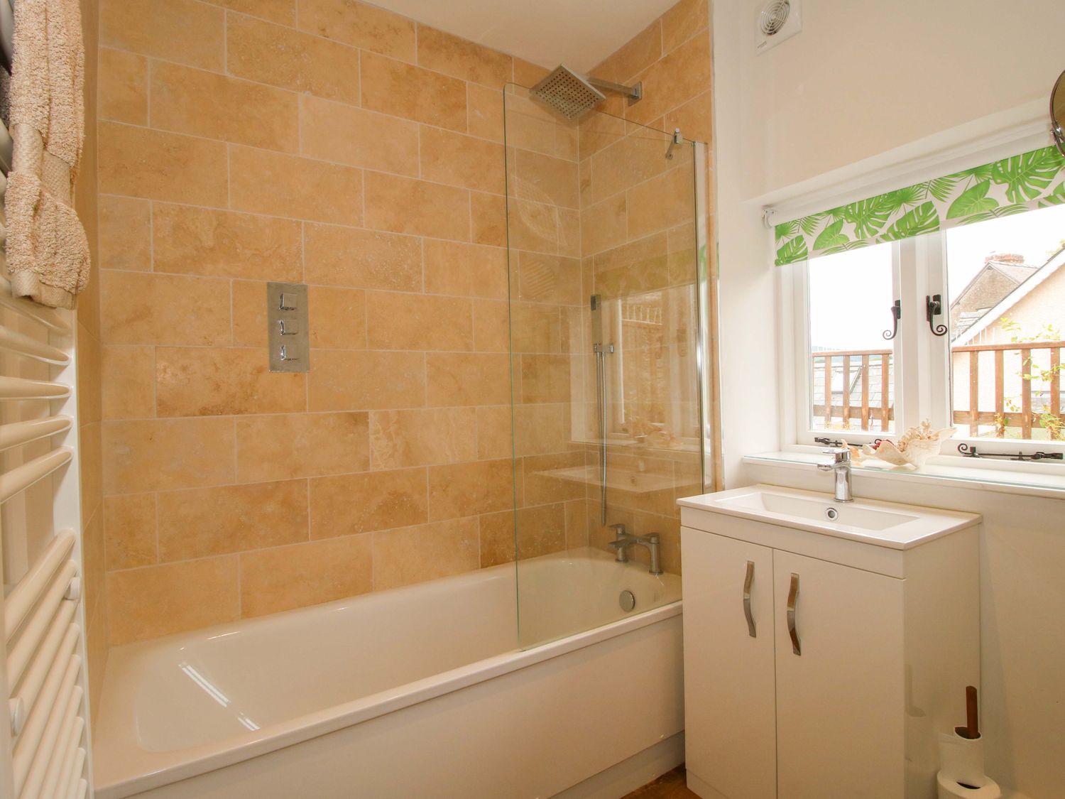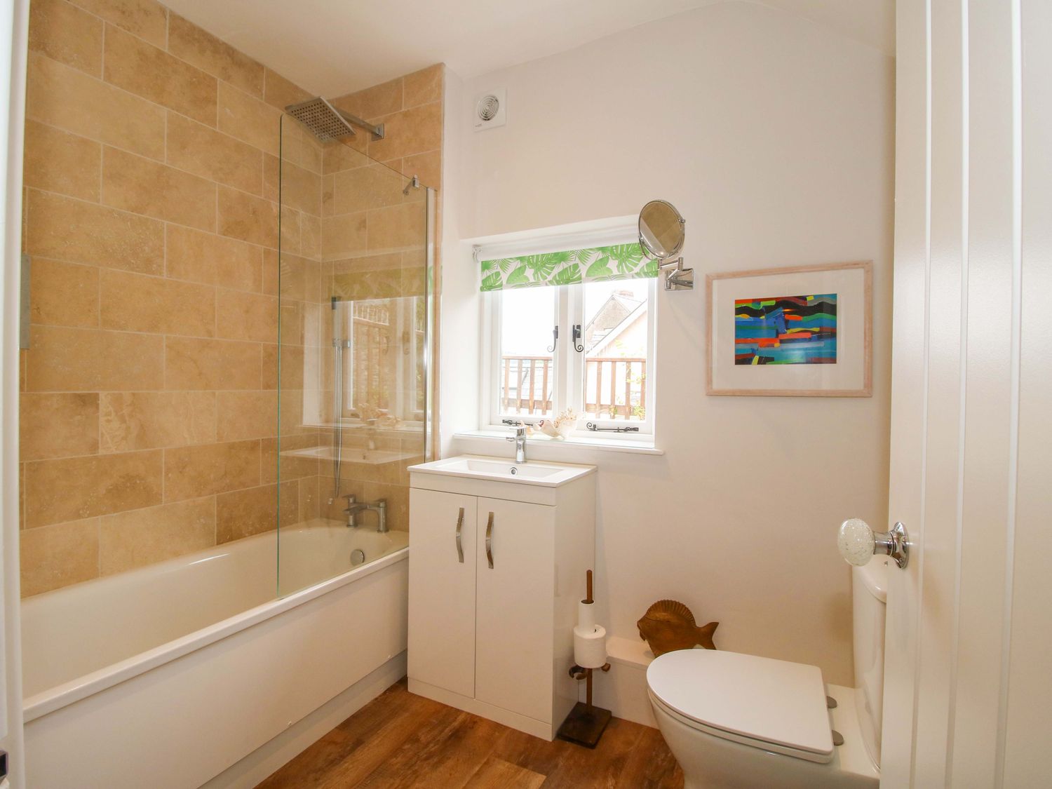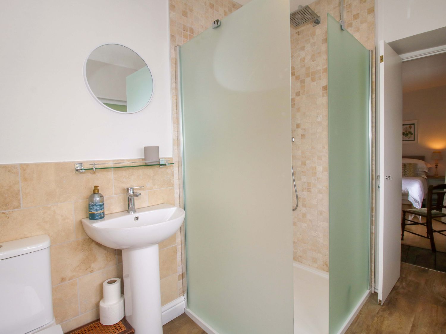 "Three bedrooms: 1 x super-king-size, 1 x double with en-suite walk-in shower, handheld shower, basin, heated towel rail, and WC, 1 x single. Bathroom with bath, shower over, basin, heated towel rail, and WC. Kitchen. Dining room. Sitting room with woodburning stove"