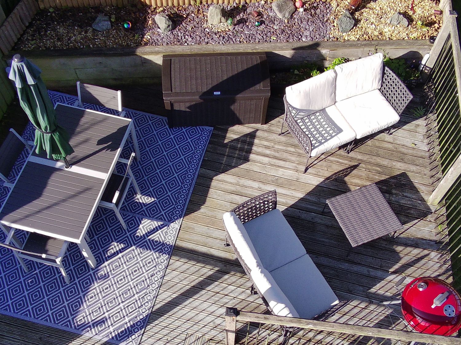 "Please note: Some reviews may mention a hot tub, but this feature is no longer available at the property. Two ground floor bedrooms with TV: 1 x king-size double (zip/link, can twin on request) with Jack-and-Jill access to bathroom, 1 x double with en-suite shower, basin and WC. Ground floor bathroom with bath, shower over, basin and WC. First floor kitchen with dining area and four steps up to mezzanine sitting room with sofa. Heated drying room."