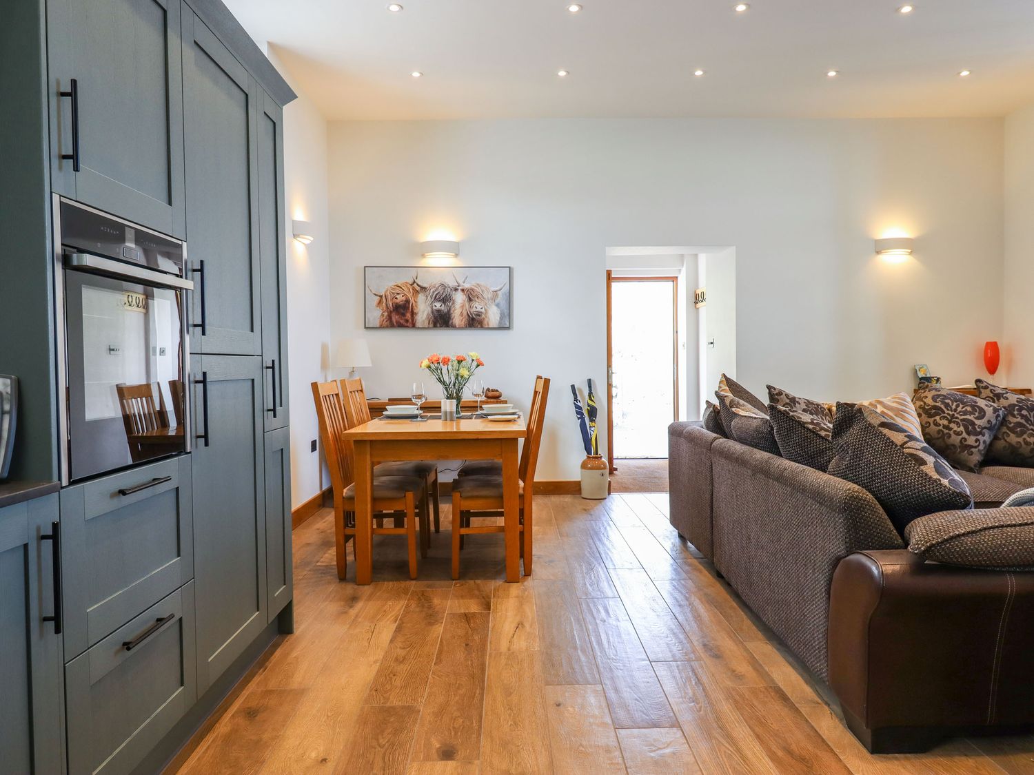 "Single-storey. One king-size bedroom with en-suite walk-in shower, double basin and WC. Open-plan living space with kitchen, dining and sitting area with woodburning stove "