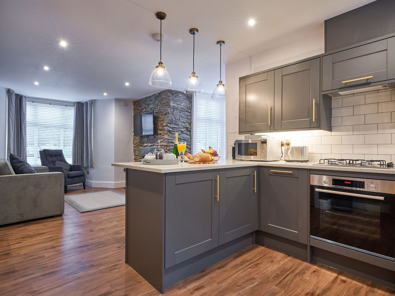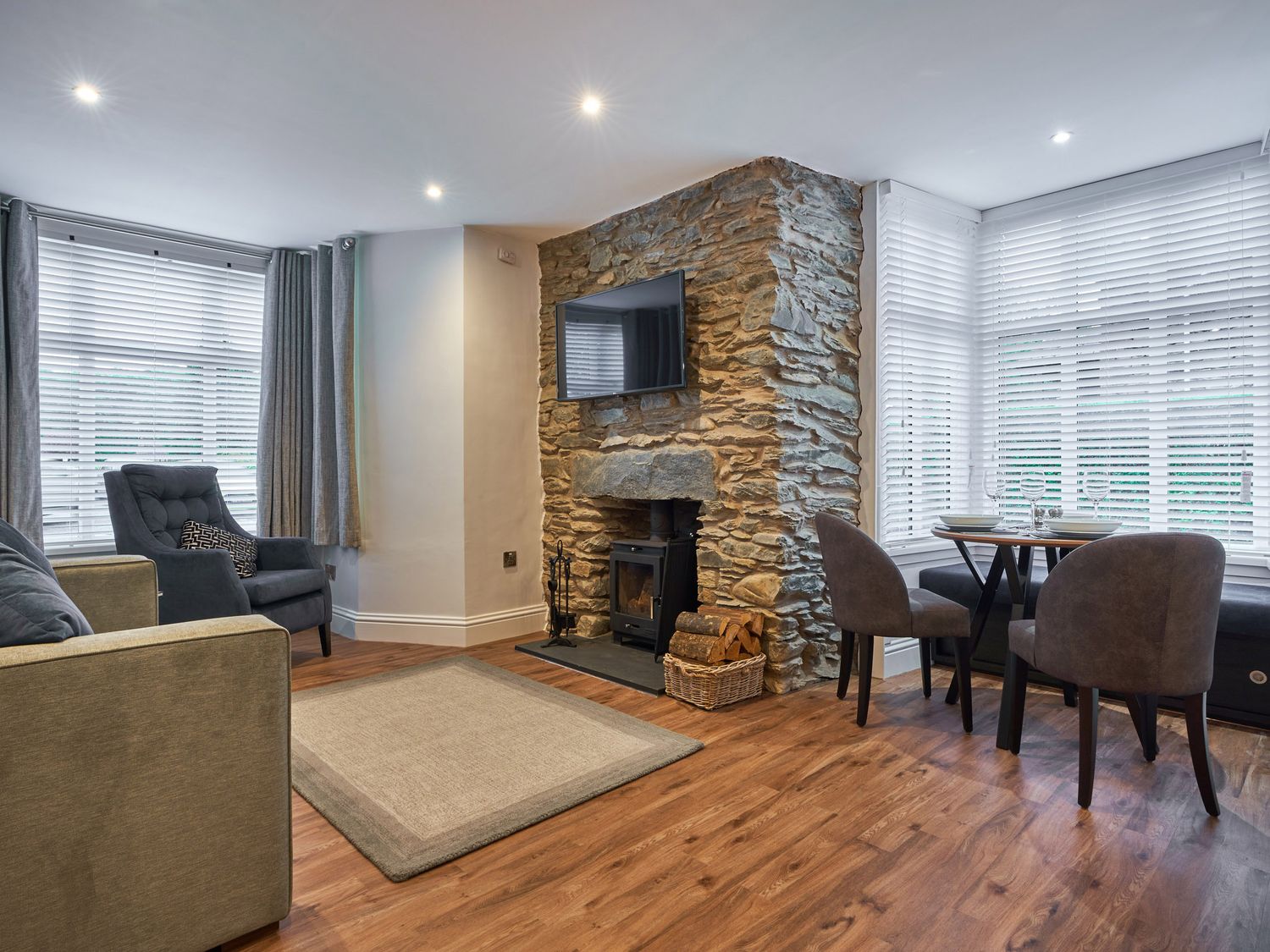 "Lower Sheriff's Place is a delightful ground-floor apartment resting in Windermere, Cumbria. Hosting one king-size bedroom with Smart TV and en-suite shower room, this property can sleep up to two guests. There is also an open-plan living space with kitchen, dining area and sitting area with woodburning stove. Outside there is off-road parking for one car and an enclosed courtyard with furniture. For a romantic break in the Lakes look no further than Lower Sherrifs Place. "