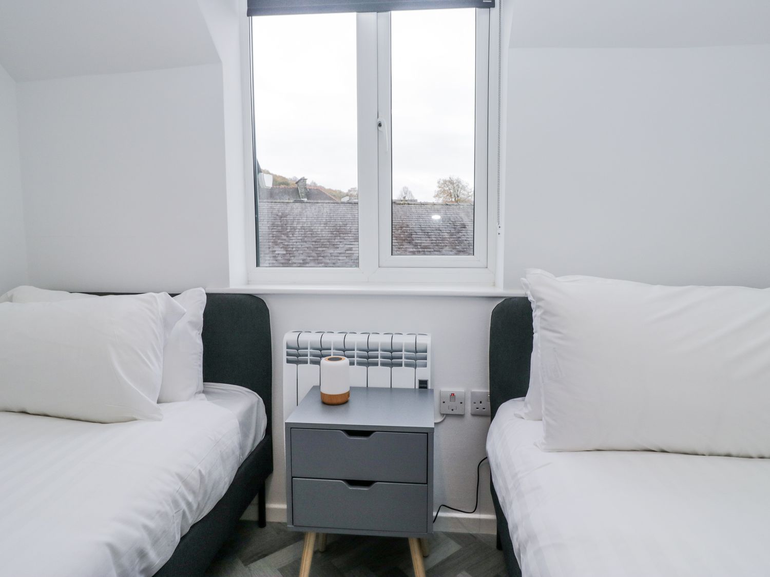 "Claife Flights is a third-floor apartment with a kitchen including electric oven and hob, microwave, fridge with ice box, slimline dishwasher, a dining area, and a sitting area with Smart TV and balcony. The bedrooms consist of a double and a twin, serviced by a shower room. Outside, there is a private balcony and allocated parking for two cars. Sorry, no pets and no smoking. Shop and pub 0.1 mile, lake 0.4 miles, river 0.7 miles. WiFi, fuel, power, bed linen and towels are all included in the price. Claife Flights is a lovely base for exploring the Lake District. Note: Three flights of stairs to entrance, please take care. Note: This property requires a Good Housekeeping Bond of 200 GBP."