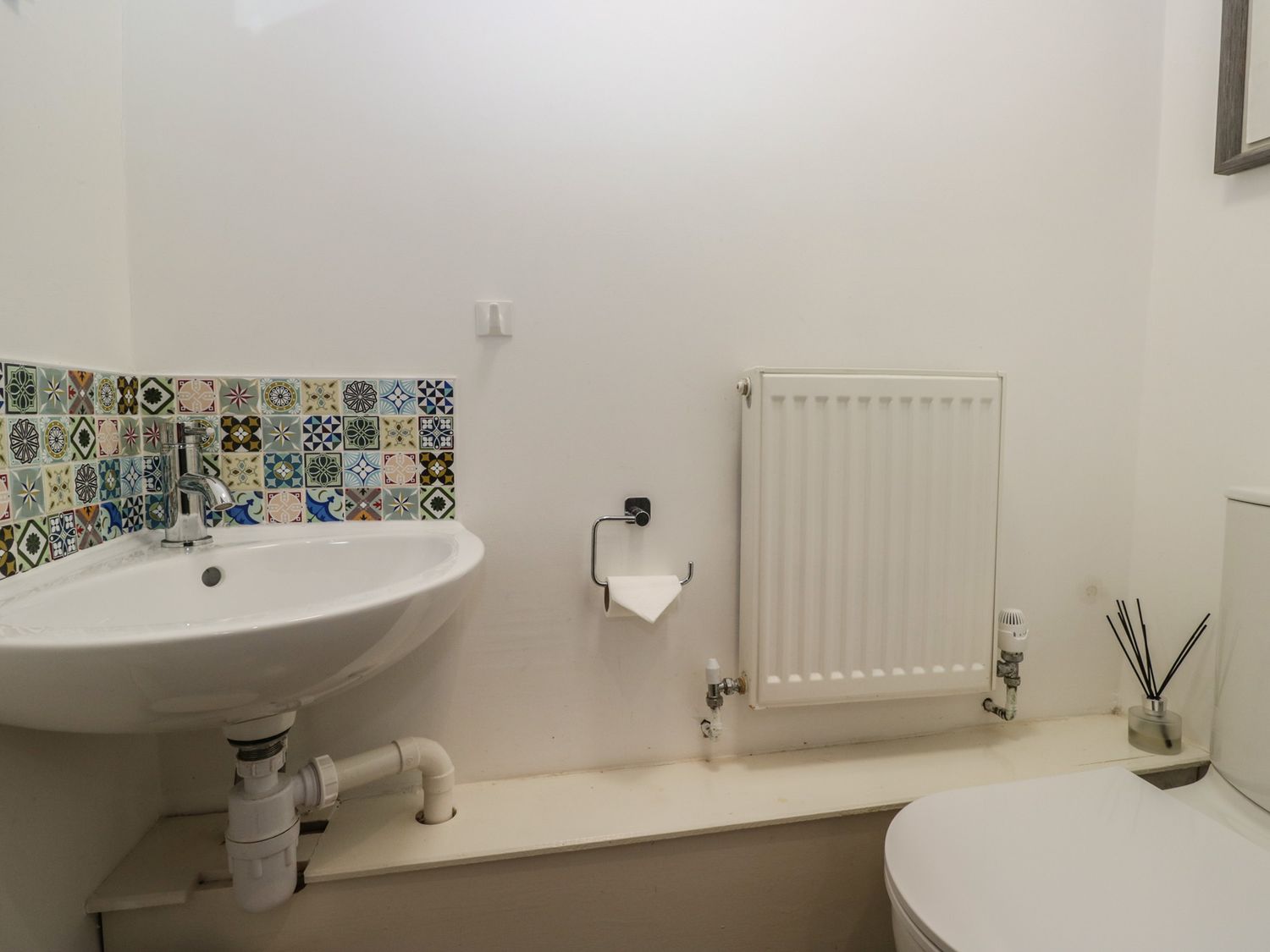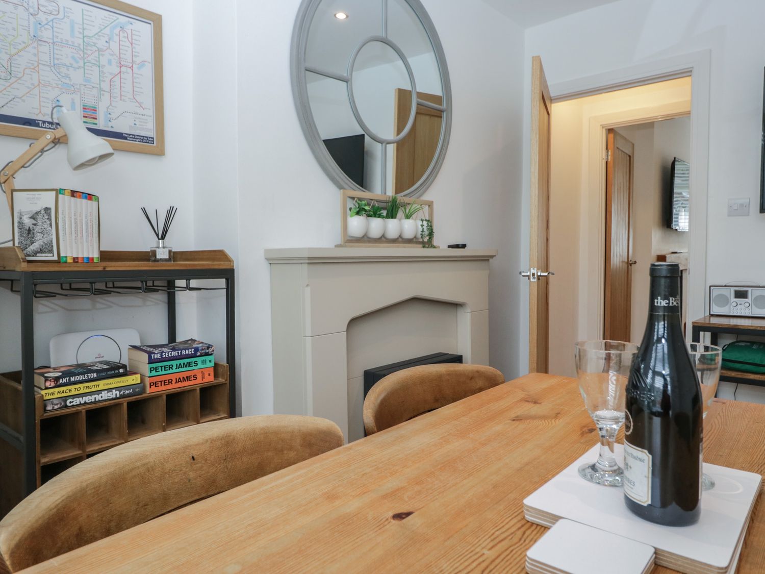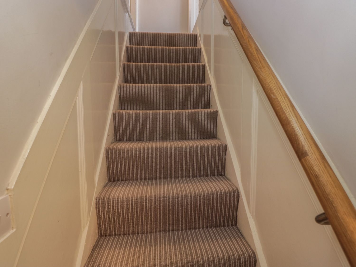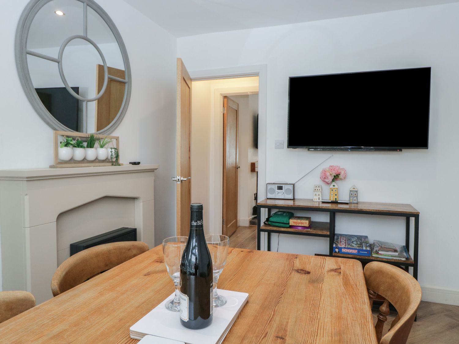 "Over three floors. Three bedrooms with Smart TVs: 2 x doubles, 1 x twin. Second-floor bathroom with bath, shower over, basin, and WC. Cloakroom with basin and WC. Kitchen. Dining room with electric fire and Smart TV with Freeview. Sitting room with woodburning stove