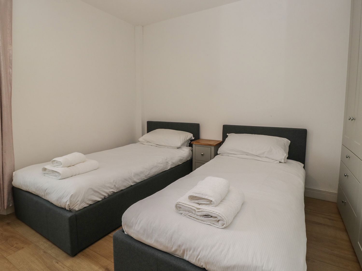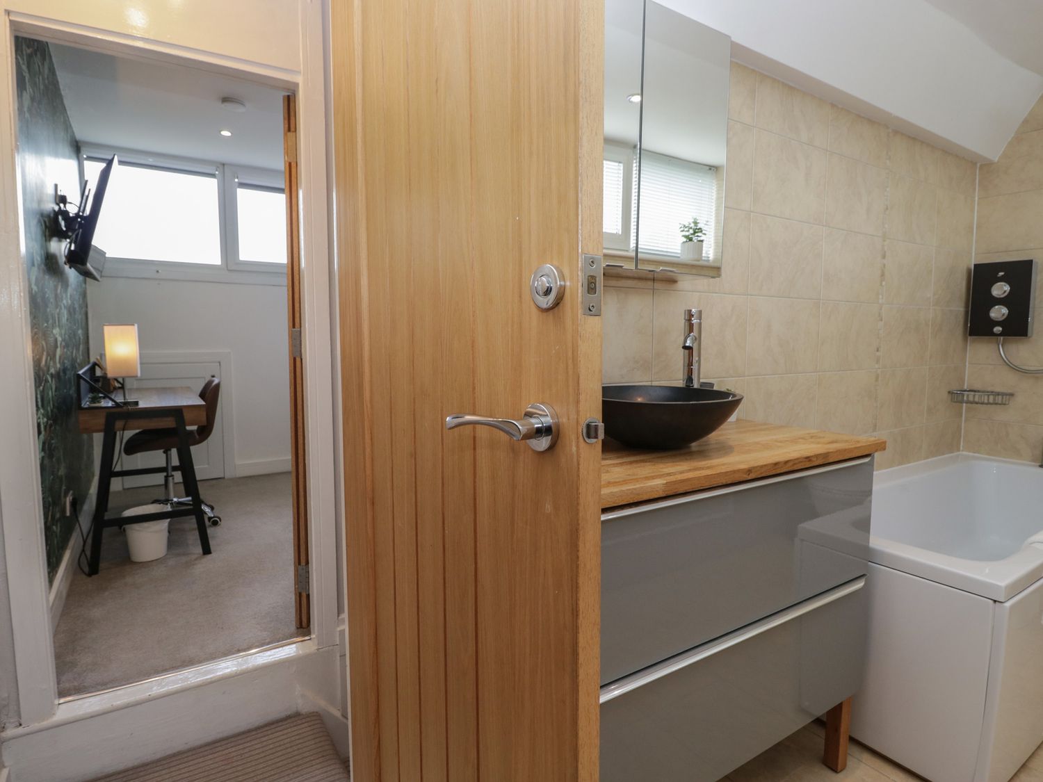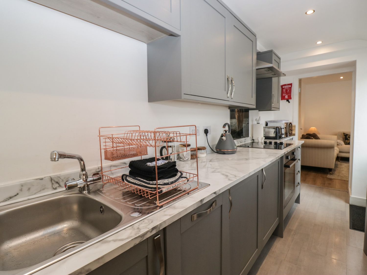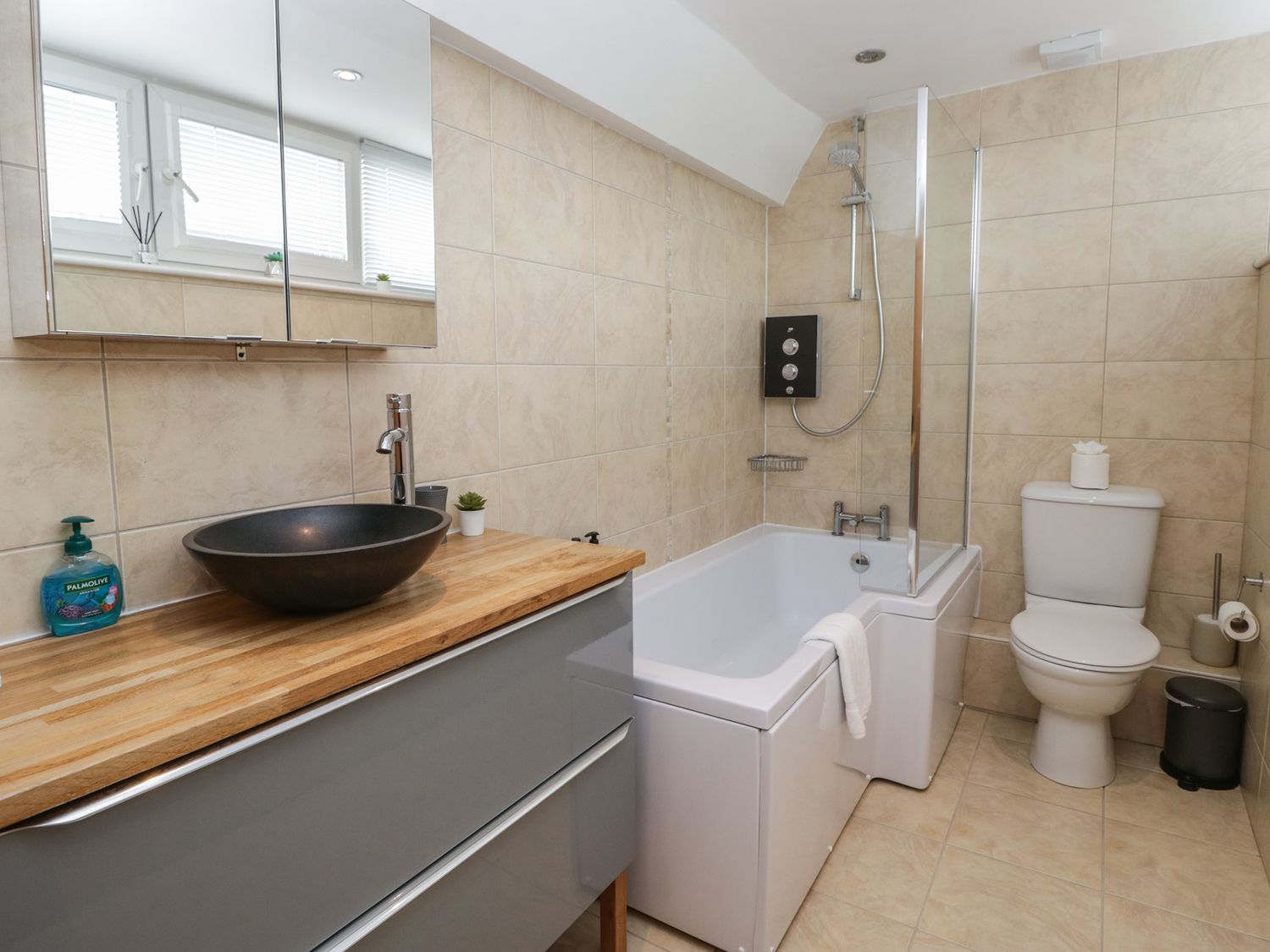 "Over three floors. Three bedrooms with Smart TVs: 2 x doubles, 1 x twin. Second-floor bathroom with bath, shower over, basin, and WC. Cloakroom with basin and WC. Kitchen. Dining room with electric fire and Smart TV with Freeview. Sitting room with woodburning stove