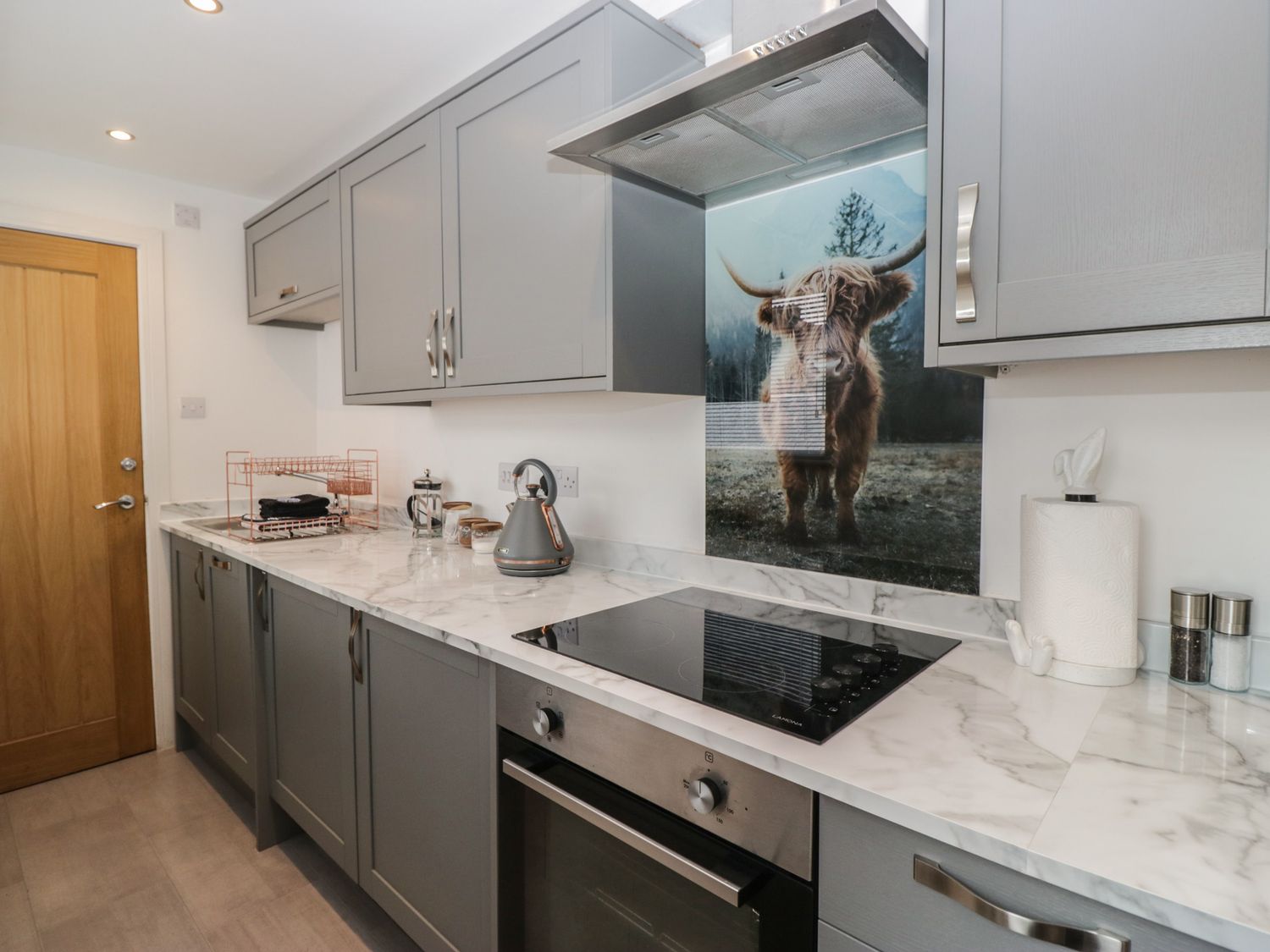 "Highfield Cottage, set over three floors, consists of a kitchen with an oven, hob, microwave, fridge, freezer and dishwasher, a dining room with Smart TV, electric fire and seating for six guests, and a sitting room with woodburning stove and Smart TV. The bedrooms consist of one second-floor king-size, one double and one twin, all with Smart TVs, along with a second-floor bathroom with bath, shower over, basin and WC, and a cloakroom with basin and WC. Outside, there is a rear garden with patio and furniture, and a front garden with gravel, lawn area and furniture, with roadside parking available. Two well-behaved pets welcome. Sorry, no smoking. WiFi, fuel, power, bed linen and towels are all included in the price. Highfield Cottage is a lovely base in the heart of the Lake District National Park."