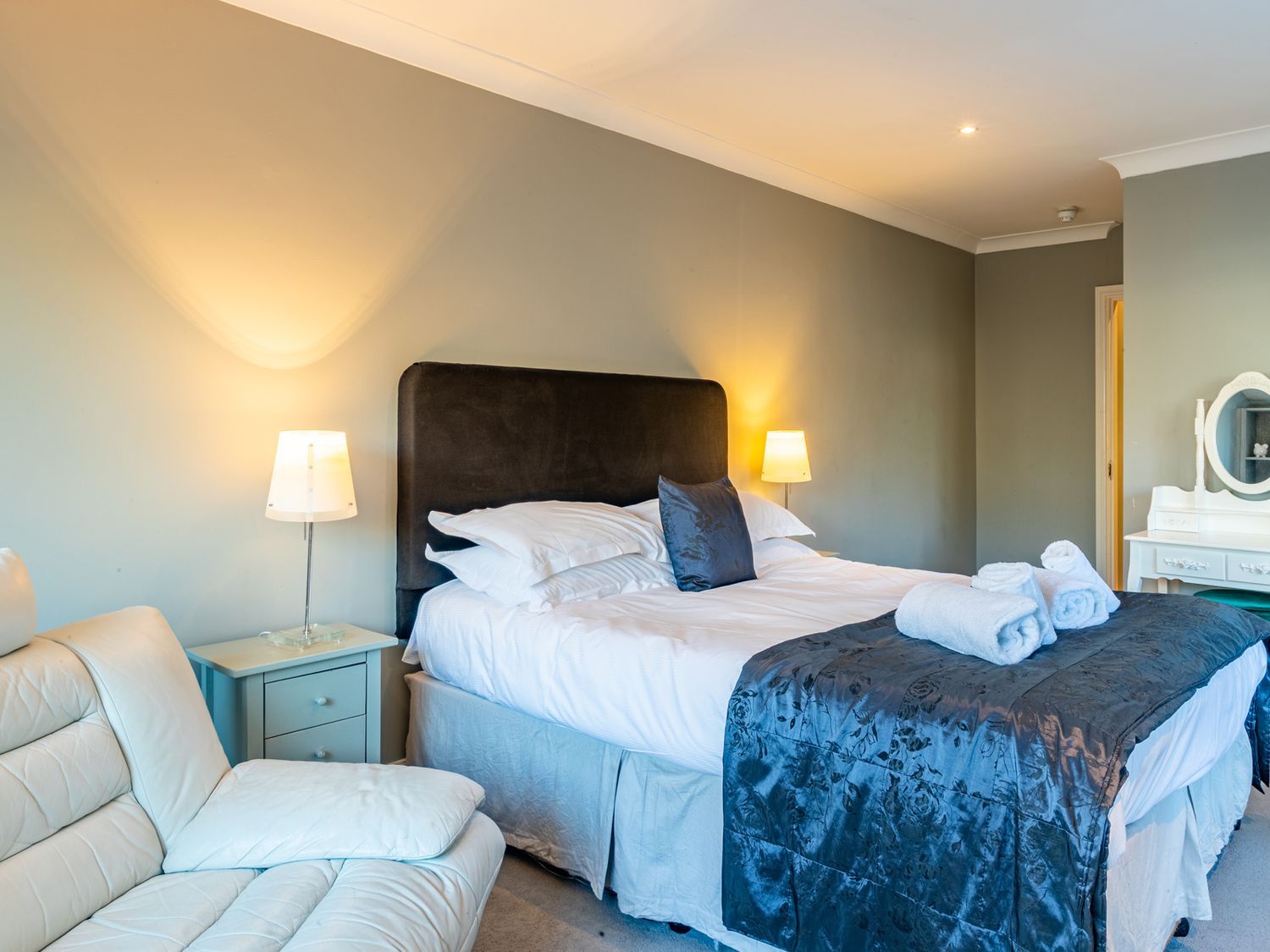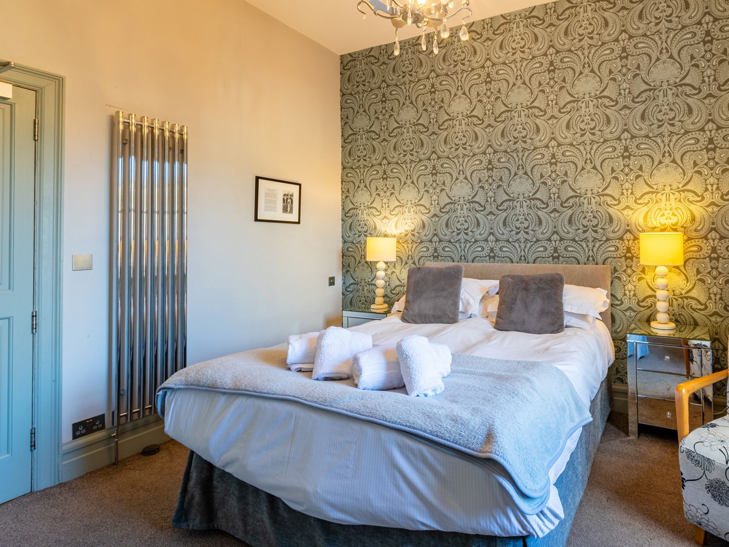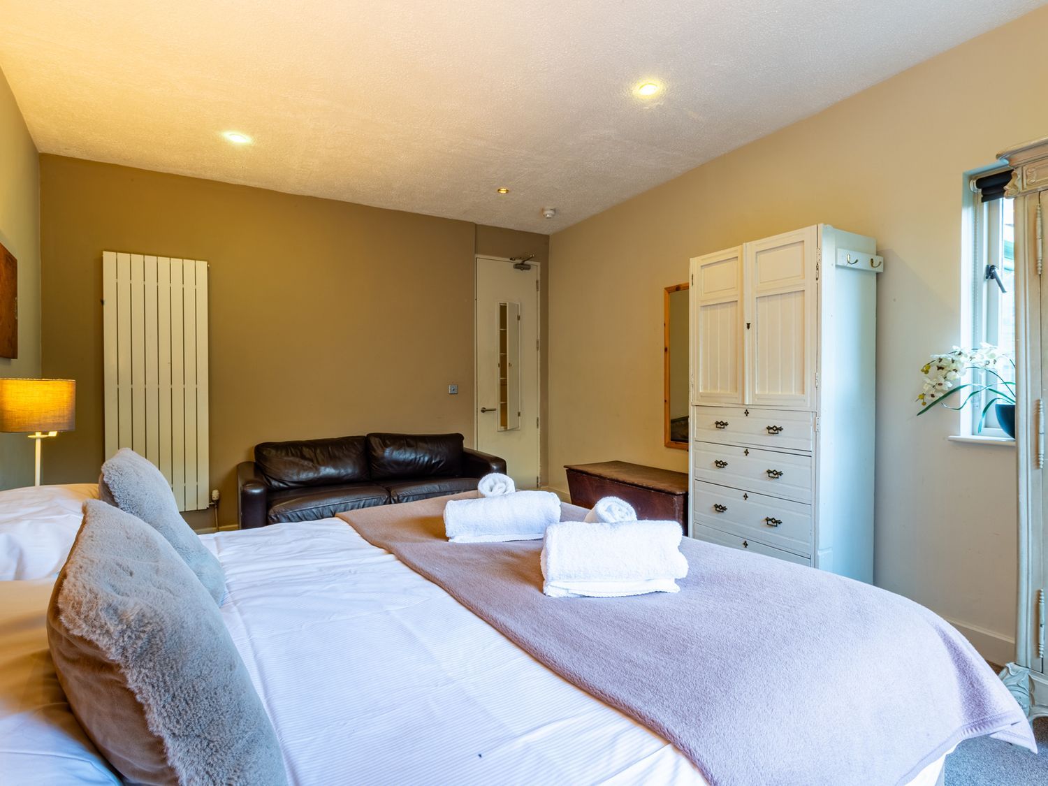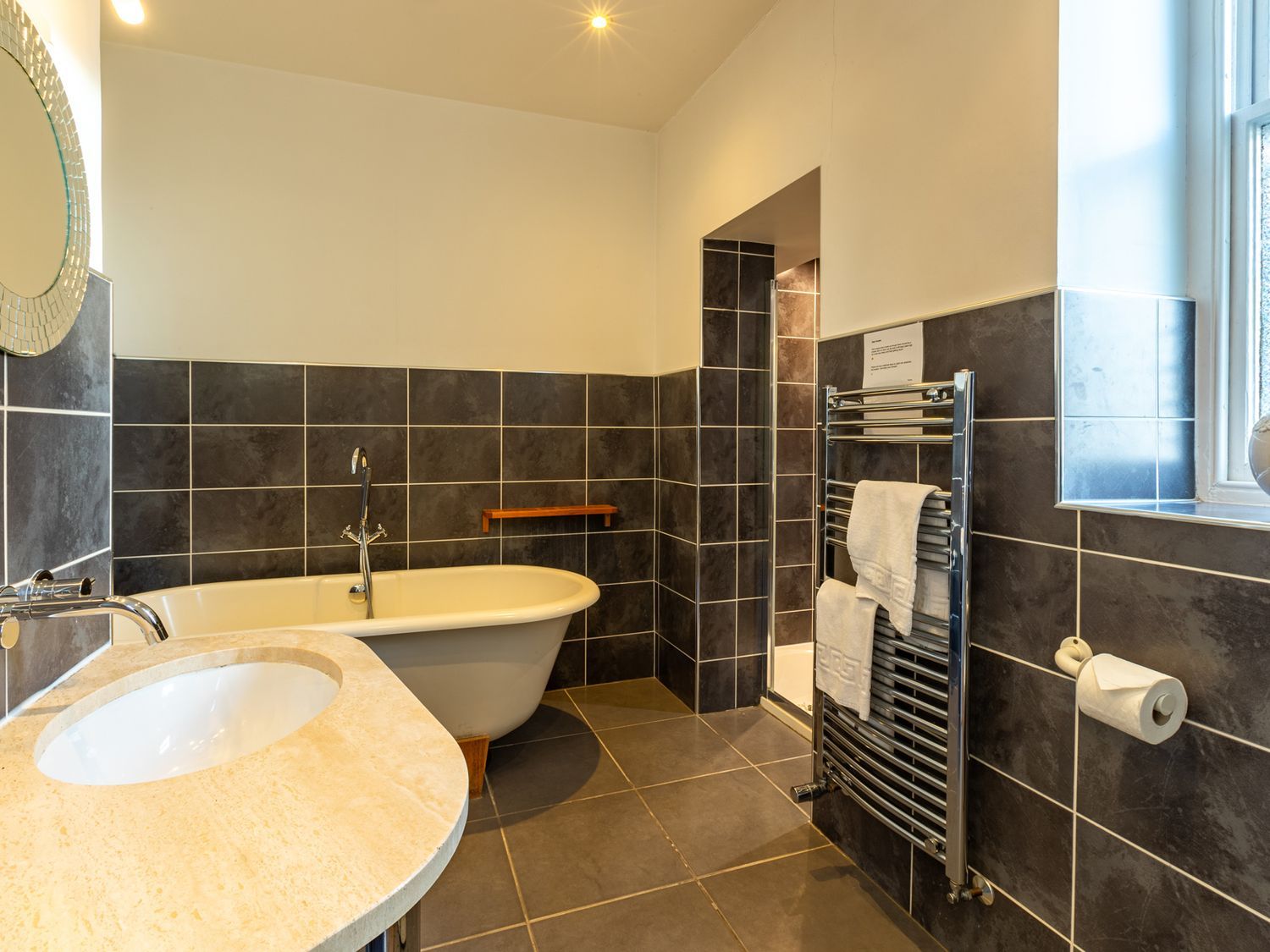 "The Boundary consists of seven bedrooms, including two super king-size rooms (zip/link, can be twin on request) and five king-size rooms, all with en-suite bath/shower rooms, basin and WC. The property features a kitchen/diner, sitting room with woodburning stove, a snug, and a games room. WiFi, fuel, power, bed linen and towels are included in the rent. Highchair available; please bring your own cot. Outside, there is a patio with furniture and a BBQ, along with private parking for five cars. One pet welcome. Sorry, no smoking. Pub 0.3 miles, shop 0.5 miles. Enjoy a wonderful stay at The Boundary."