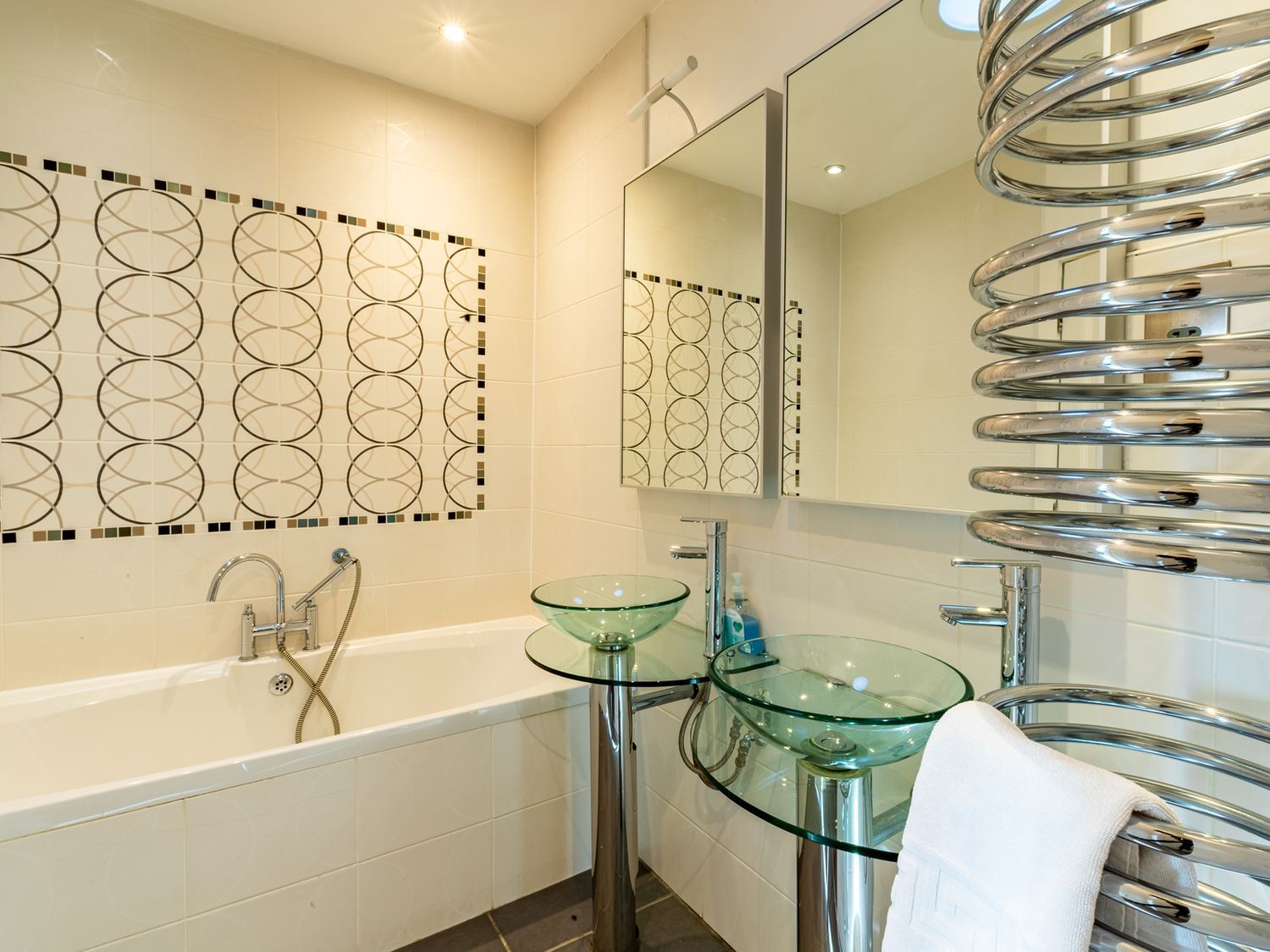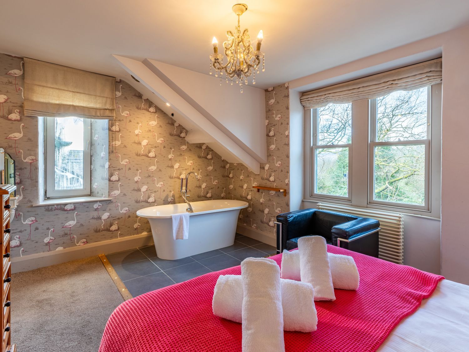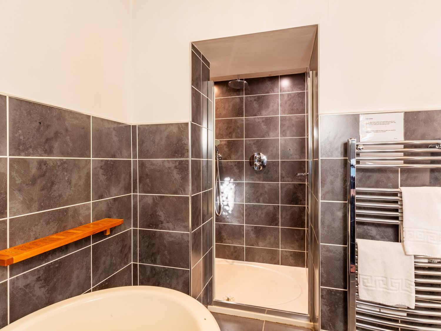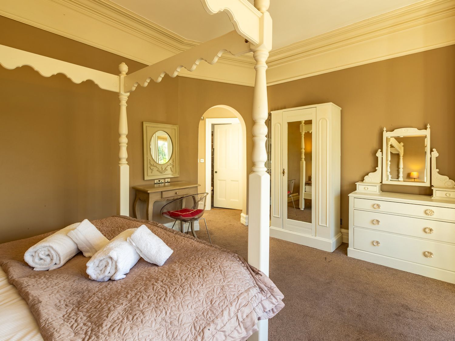 "The Boundary consists of seven bedrooms, including two super king-size rooms (zip/link, can be twin on request) and five king-size rooms, all with en-suite bath/shower rooms, basin and WC. The property features a kitchen/diner, sitting room with woodburning stove, a snug, and a games room. WiFi, fuel, power, bed linen and towels are included in the rent. Highchair available; please bring your own cot. Outside, there is a patio with furniture and a BBQ, along with private parking for five cars. One pet welcome. Sorry, no smoking. Pub 0.3 miles, shop 0.5 miles. Enjoy a wonderful stay at The Boundary."