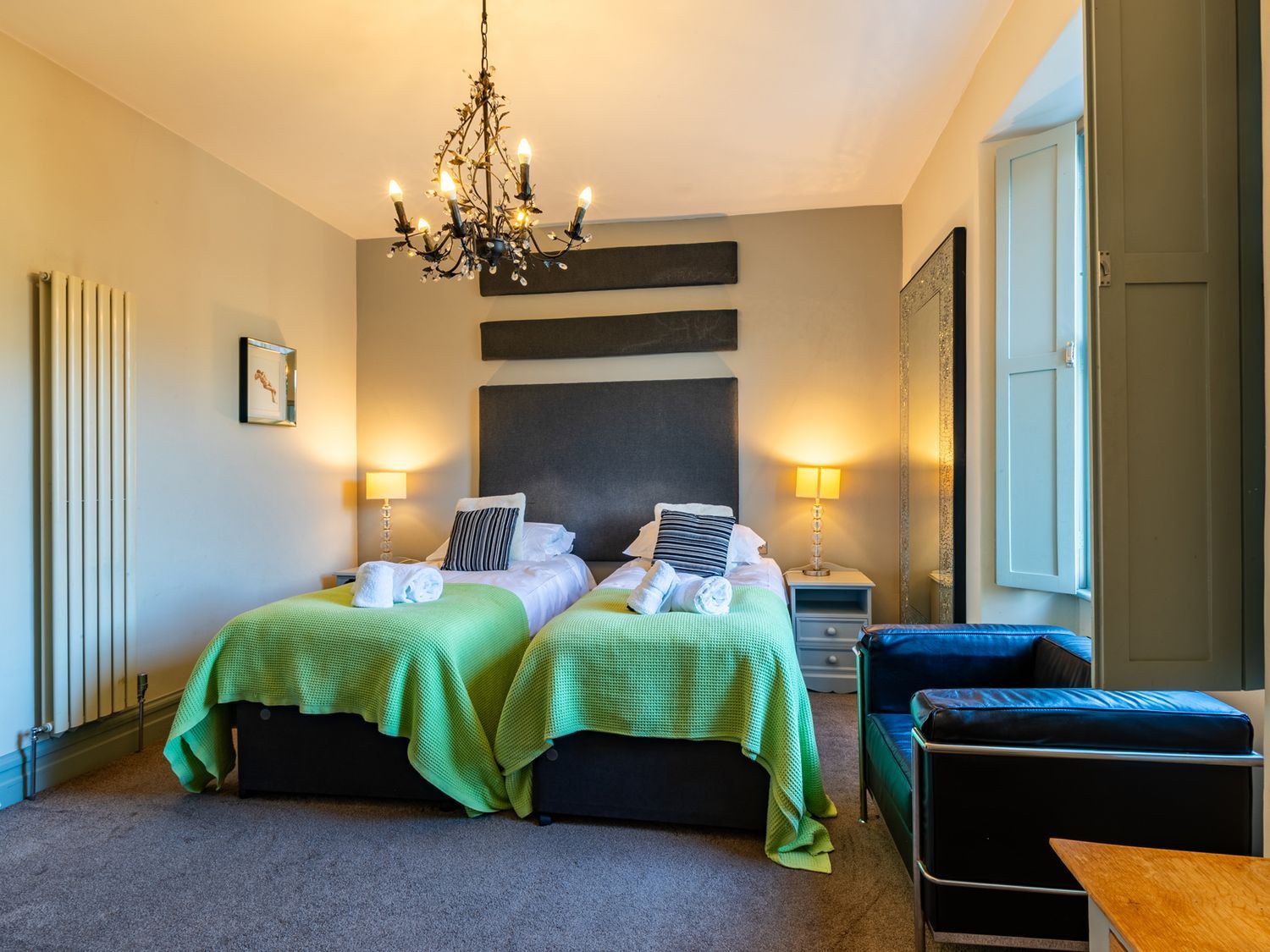 "Seven bedrooms: 2 x super king-size (zip/link can be 2 x twin upon request), 5 x king-size. 7 x en-suite bath/shower rooms with basin and WC. Kitchen with dining area. Sitting room with woodburning stove. Snug. Games room."