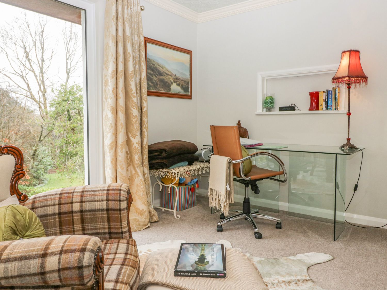 "Kempton is a lovely semi-detached upside down cottage situated in the town of Bowness-on-Windermere just five miles from Ambleside. The cottage can sleep six people and has two king-size double bedrooms and one double bedroom all en-suite and on the ground floor. Also in the cottage is a first floor kitchen, dining room and sitting area with a Juliet balcony. Outside is off road parking for three cars and a private patio with furniture. Kempton is a delightful cottage with stunning views over the lakes. Property requires a good housekeeping bond of -ú180. Note: One well-behaved dog welcome. Local bus service to offer wider access to Lake District and local taxi service available. Only 1 approx a 10 minute walk to Lake Windermere. Windermere town is approx 1 mile away and also has a railway station. Note: The property sleeps max. 6 plus 1 infant. Please note this property accepts bookings with a minimum of 3 nights."