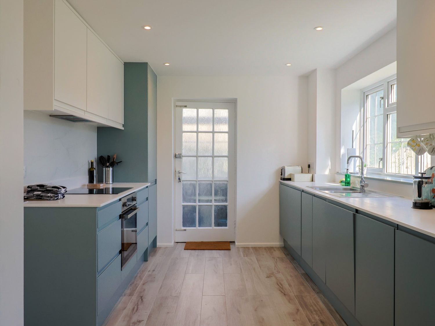"Oakwood is a detached, renovated holiday home located on a peaceful lane in the village of Chideock. The ground floor consists of a sitting room with a Smart TV and a kitchen/diner with dining table, breakfast bar, electric oven, induction hob, microwave, washer dryer, wine chiller, and dishwasher. The first floor includes four bedrooms: a double with an en-suite featuring walk-in shower, basin, towel rail and WC; two doubles and a single with an optional pull-out truckle bed (suitable for children only). The family shower room includes a walk-in shower, basin, towel rail, and WC. There is also a cloakroom with basin and WC. Outside, there is an enclosed rear garden with lawn, mature trees and shrubs, patio with furniture, and off-road parking for three cars. WiFi, fuel, power, bed linen and towels are all included. Sorry, no smoking. 2 dogs welcome. Guests will find a shop and two pubs within 0.2 miles, and Seatown beach within 1 mile. Enjoy your coastal escape to Oakwood. Note: Check-in from 4pm, check-out by 10am. Note: this property has a Good Housekeeping Bond of 450GBP"